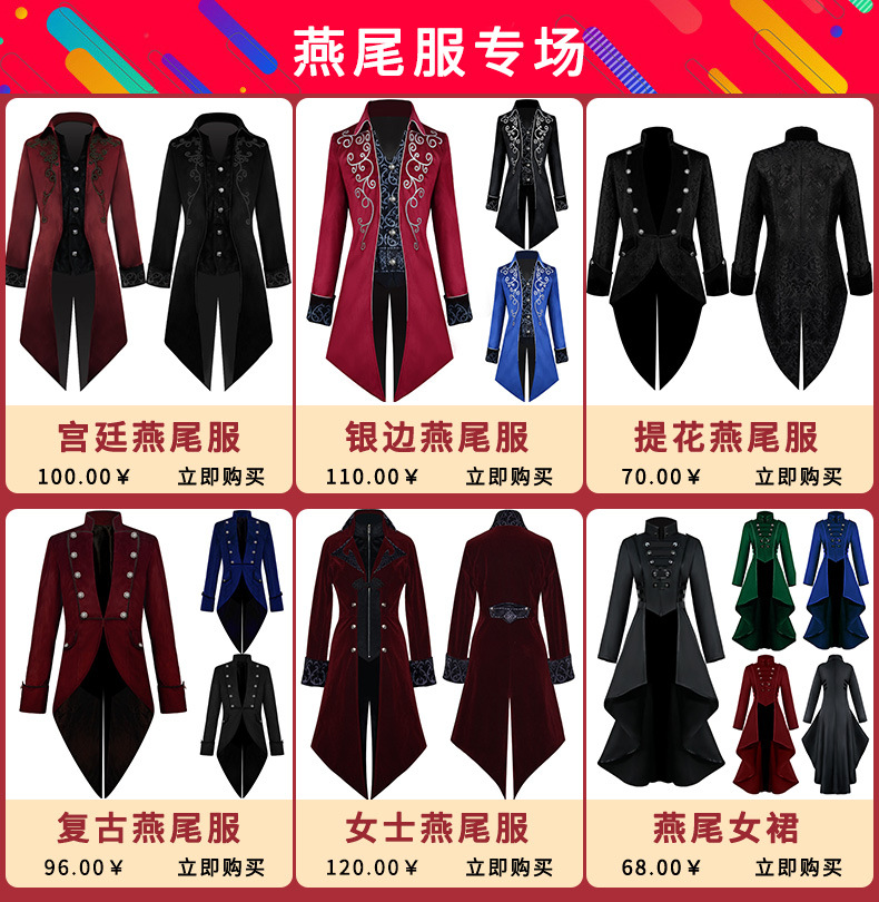 男士蒸汽朋克复古夹克哥特式维多利亚时代青蛙外套制服万圣节服装
