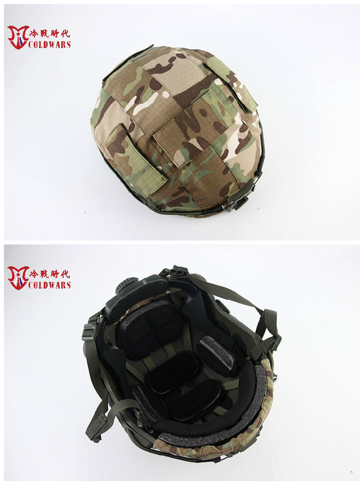 此型号盔罩主要搭配盔体表面有魔术贴位和内侧采用wendy悬挂等头盔内侧有魔术贴固定位的头盔,依靠边缘的魔术贴脚和盔布内侧的魔术贴勾面进行固定。其他类型头盔如需要固定要自行改装。关于此盔布的安装方法如下:1、拆除海绵内衬或者悬挂。2、夜视仪挂架穿入盔布,把盔布平整的粘在盔体表面。3、拉紧前后魔术贴固定脚,与盔内臂上的魔术贴位链接固定。4、整理表面,使盔布尽可能平整紧绷。5、重新装回海绵内衬或者悬挂。请注意:由于盔罩不是全包裹式,而且不同头盔盔型不同,盔罩表面不可能非常平整也不可能完全紧贴盔体。可以参考下面模特效果。由于不同头盔内壁上魔术贴位置不同,可能出现魔术贴脚偏长或者偏短情况,偏长则剪掉多余部分,偏短则需要购买背胶魔术贴勾面,在盔内壁上增加固定位来解决此类问题。