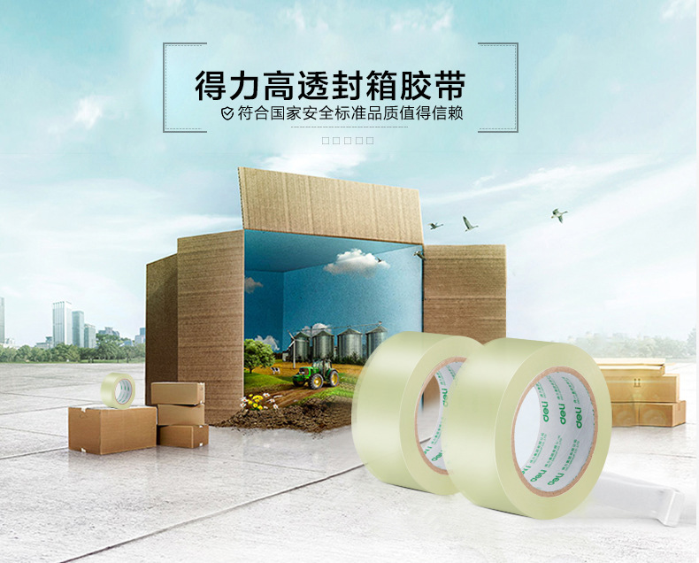 得力30248超市封箱胶带(透明48mm*100y*50um透明强粘力打包宽胶带