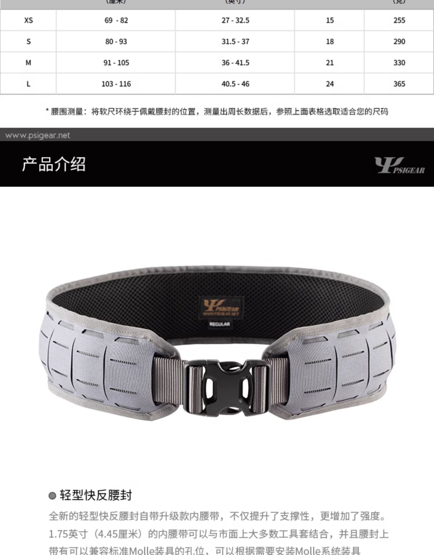 【PSIGEAR官方店】輕型快反腰封 PS12021 2022款 灰標