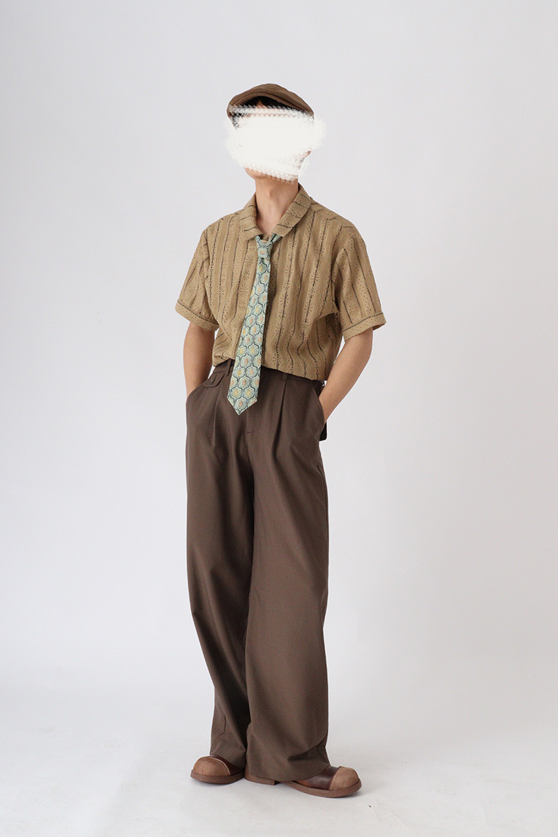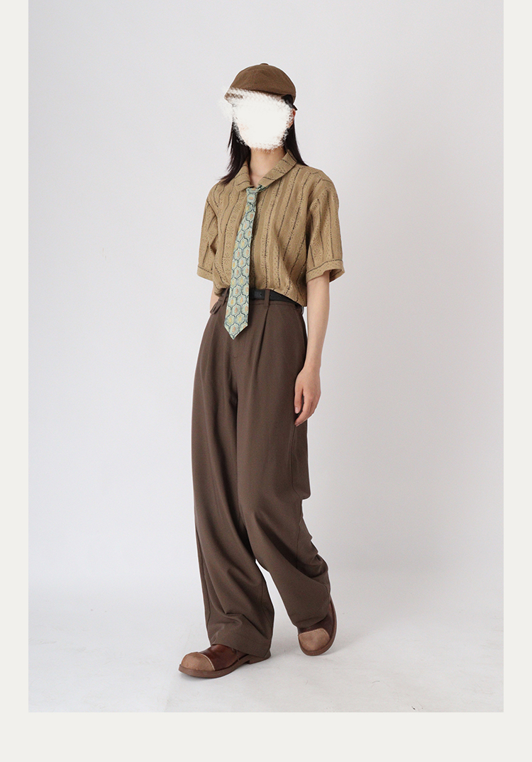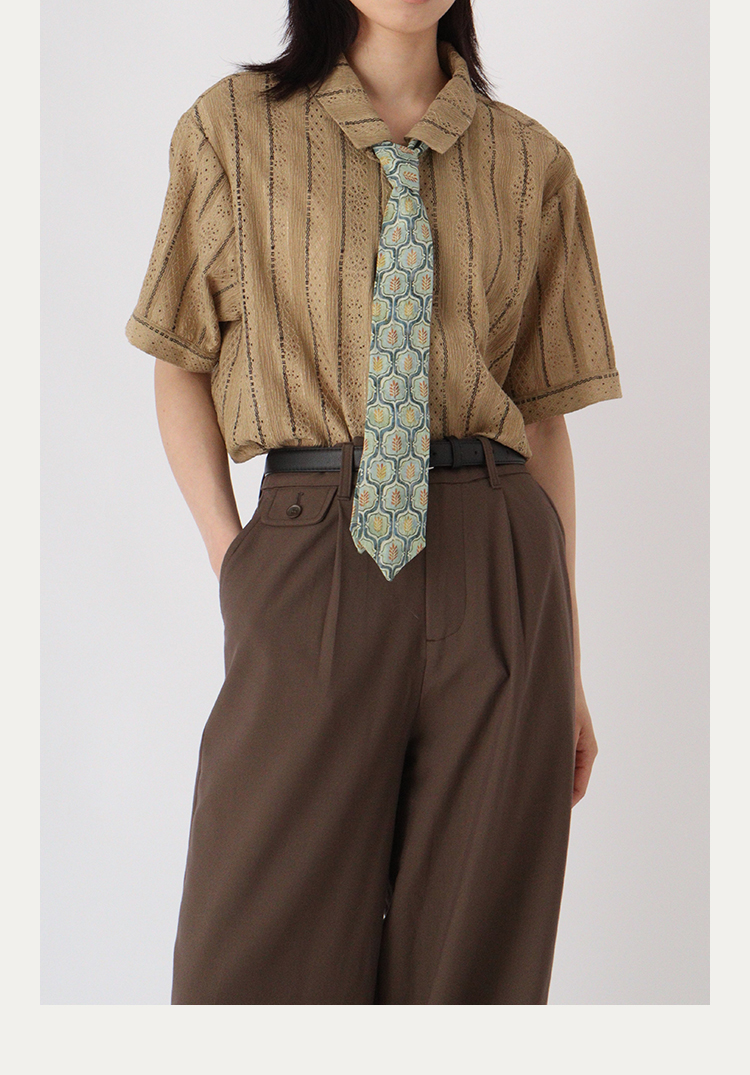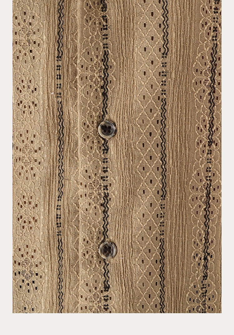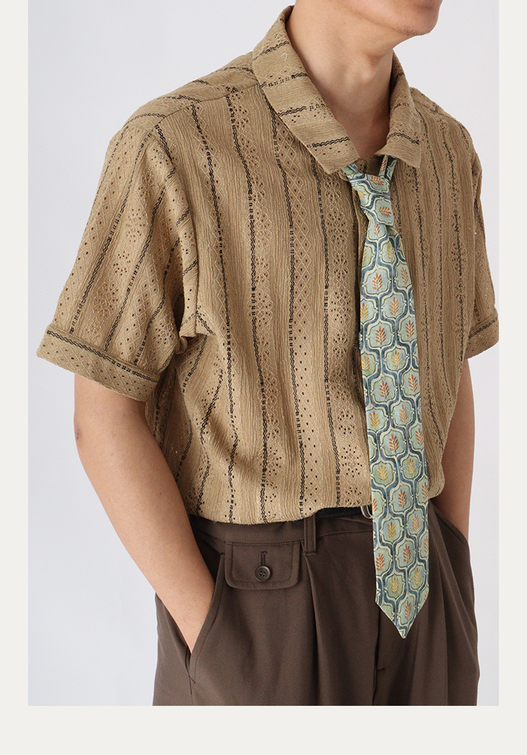 No sense無感官 蕾絲短袖襯衫透氣文藝復古條紋古著感襯衫男女