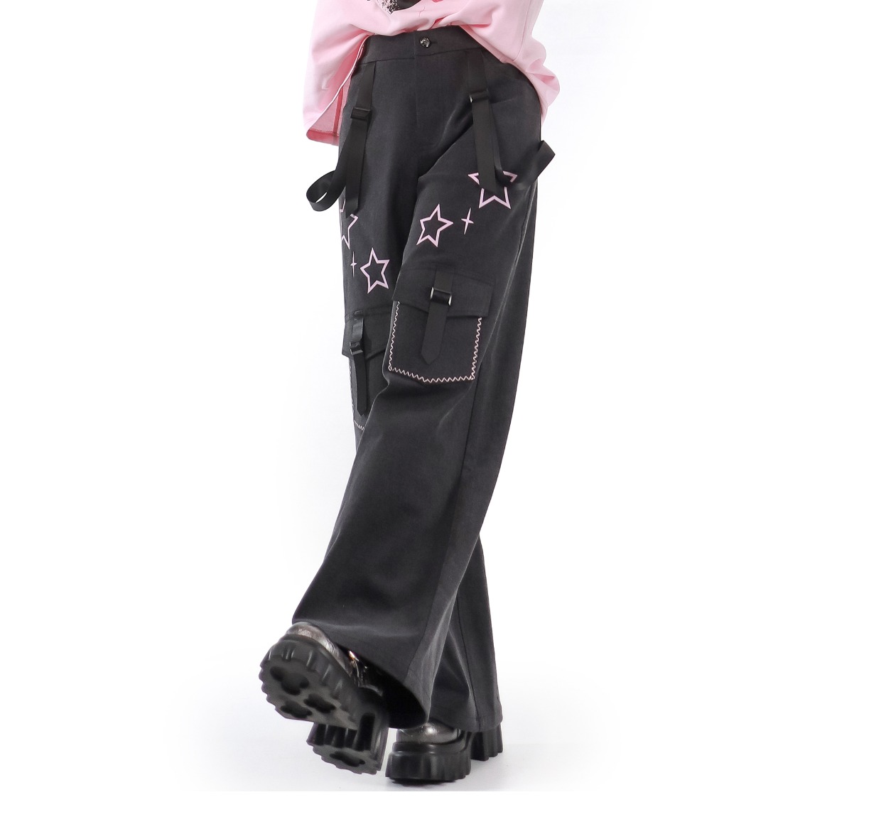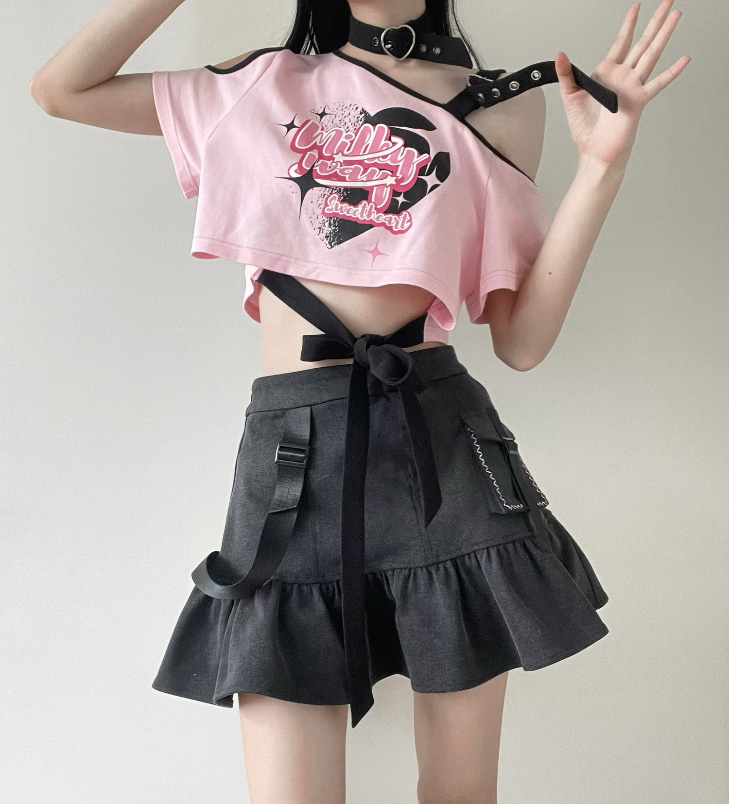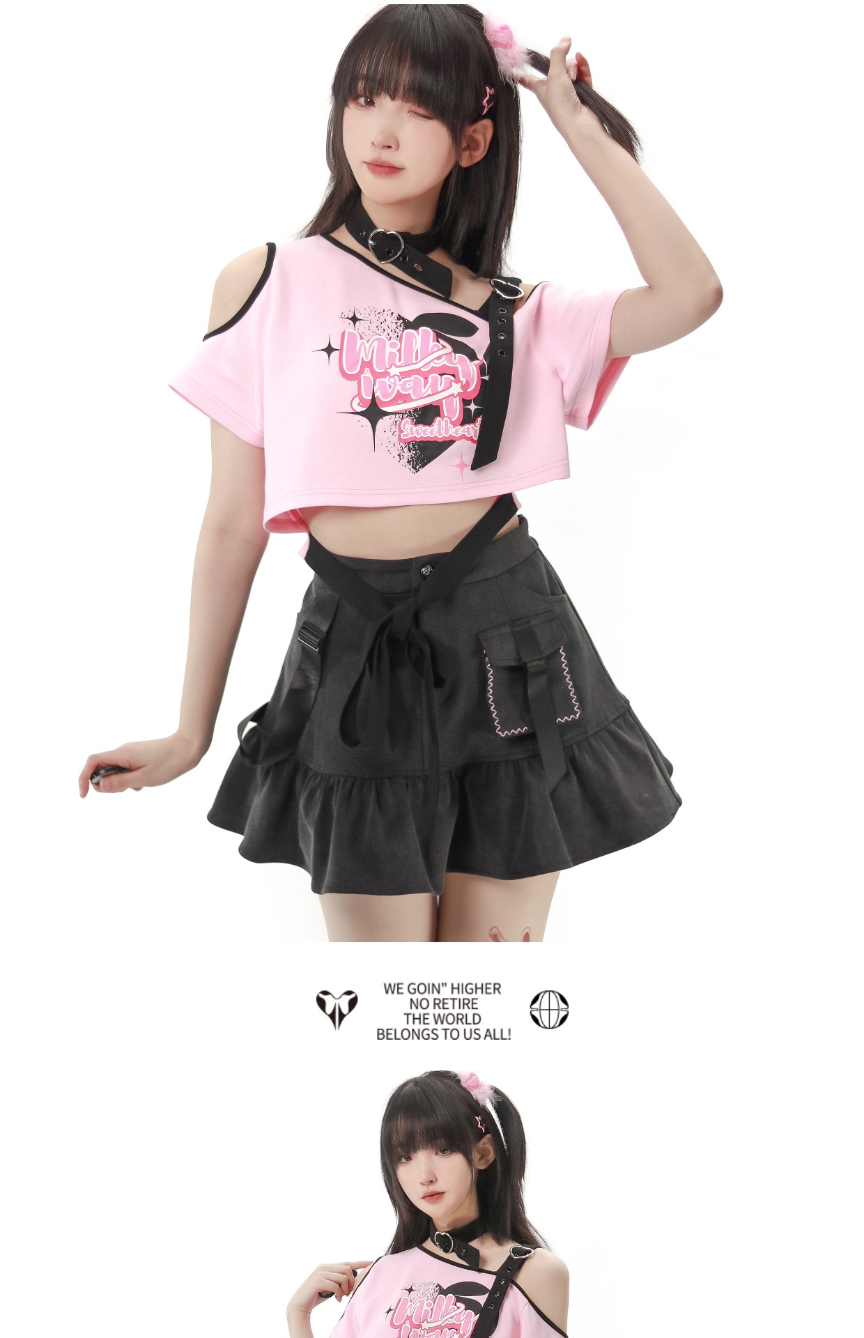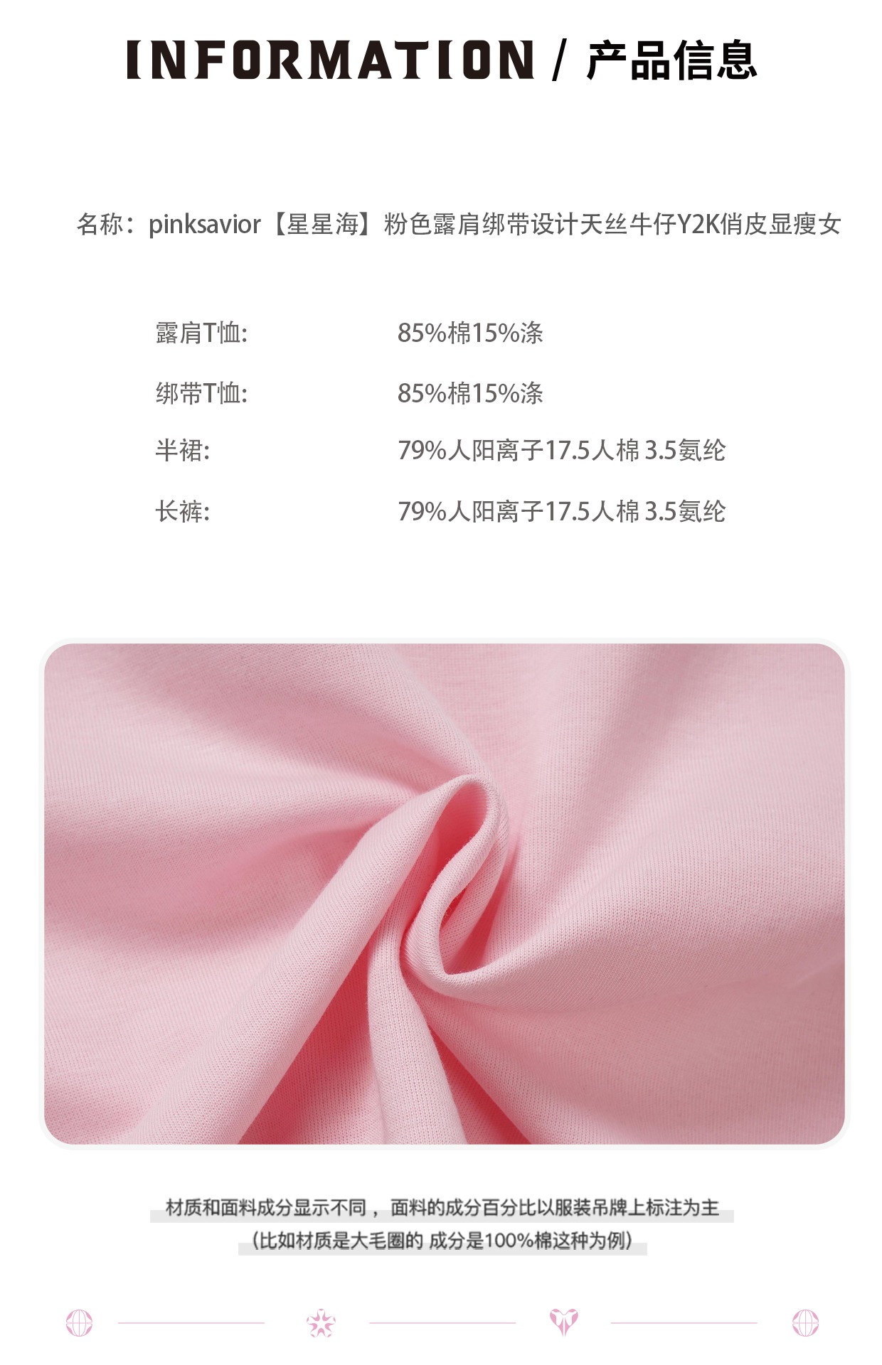 pinksavior【星星海】粉色露肩綁帶設計天絲牛仔Y2K多巴胺顯瘦女
