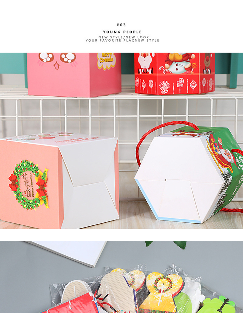 规格 6角绿色,6角大红,6角蓝色,6角暗红,燕尾大红,燕尾草绿,燕尾深蓝,燕尾明黄,可爱绿,可爱粉,可爱红,可爱黄,提手红,提手粉,提手蓝,提手圣诞老人,6角4款 20个装,燕尾4款20个装,可爱4款20个装,提手4款20个装