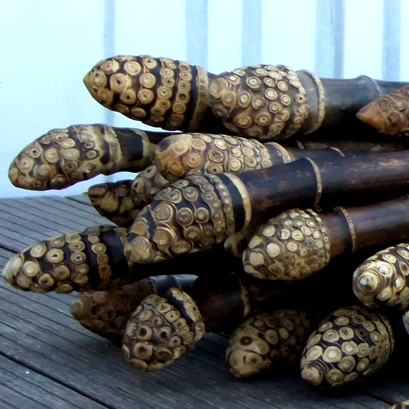 竹竿部分直径一般2.5cm以上,头部竹根的形状各异,无法测量
