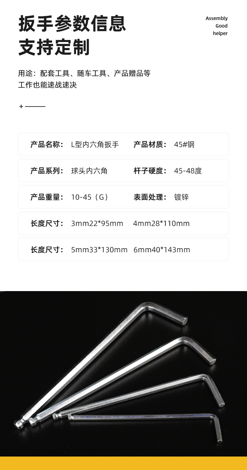 球头内六角扳手 L型内六角扳手 批发配套球头内六角螺丝刀公制