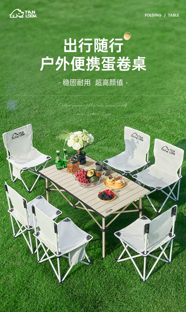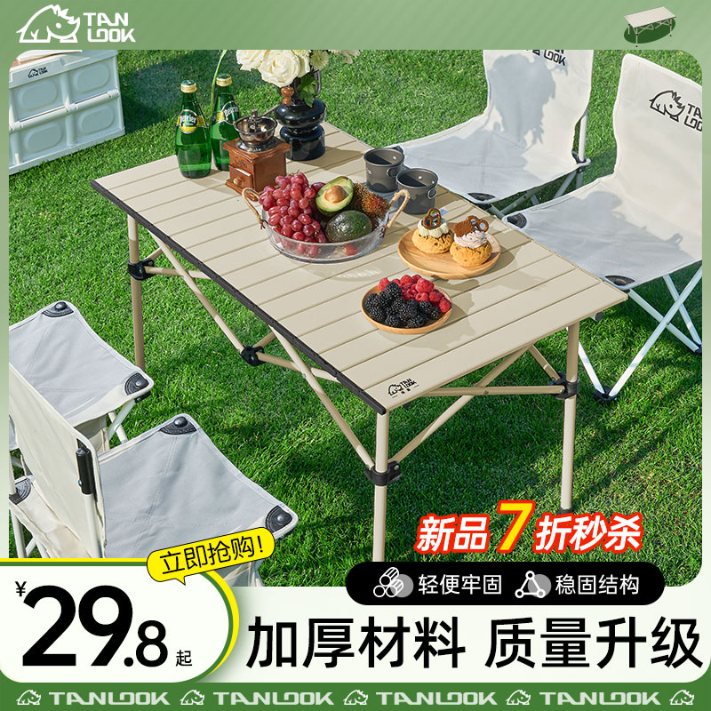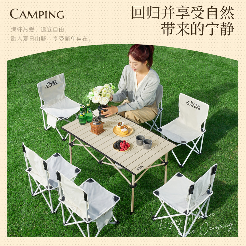 戶外摺疊桌椅蛋卷桌可攜式野餐桌椅擺攤桌子露營裝備全套用品套裝