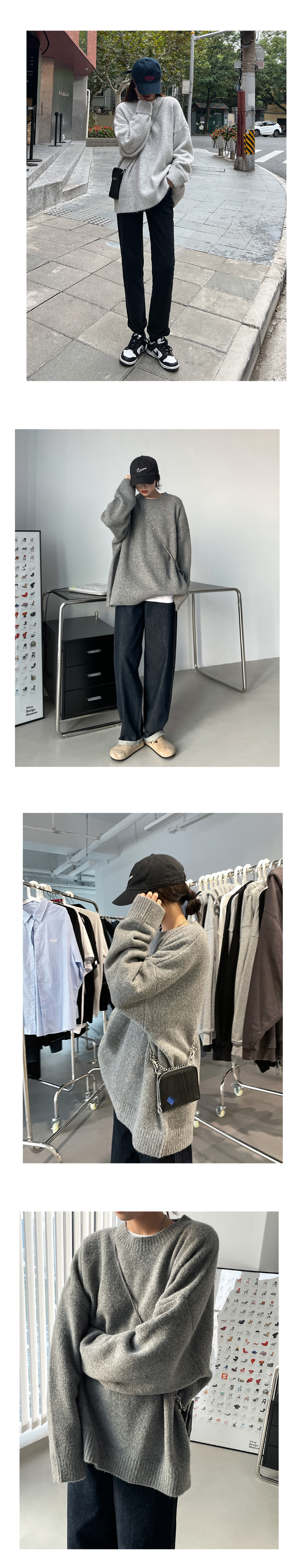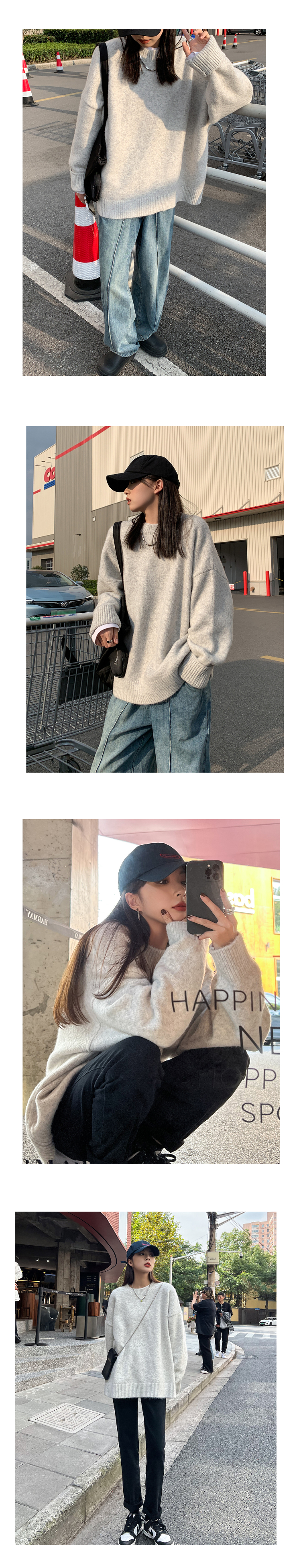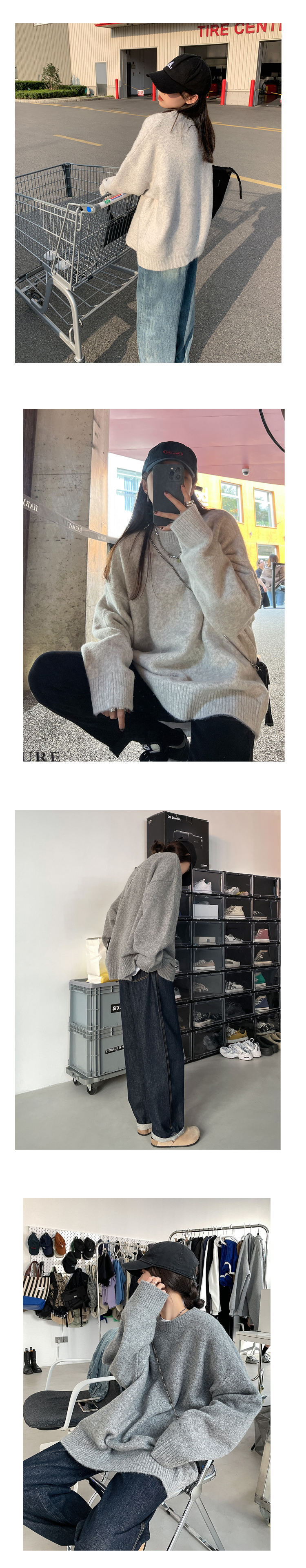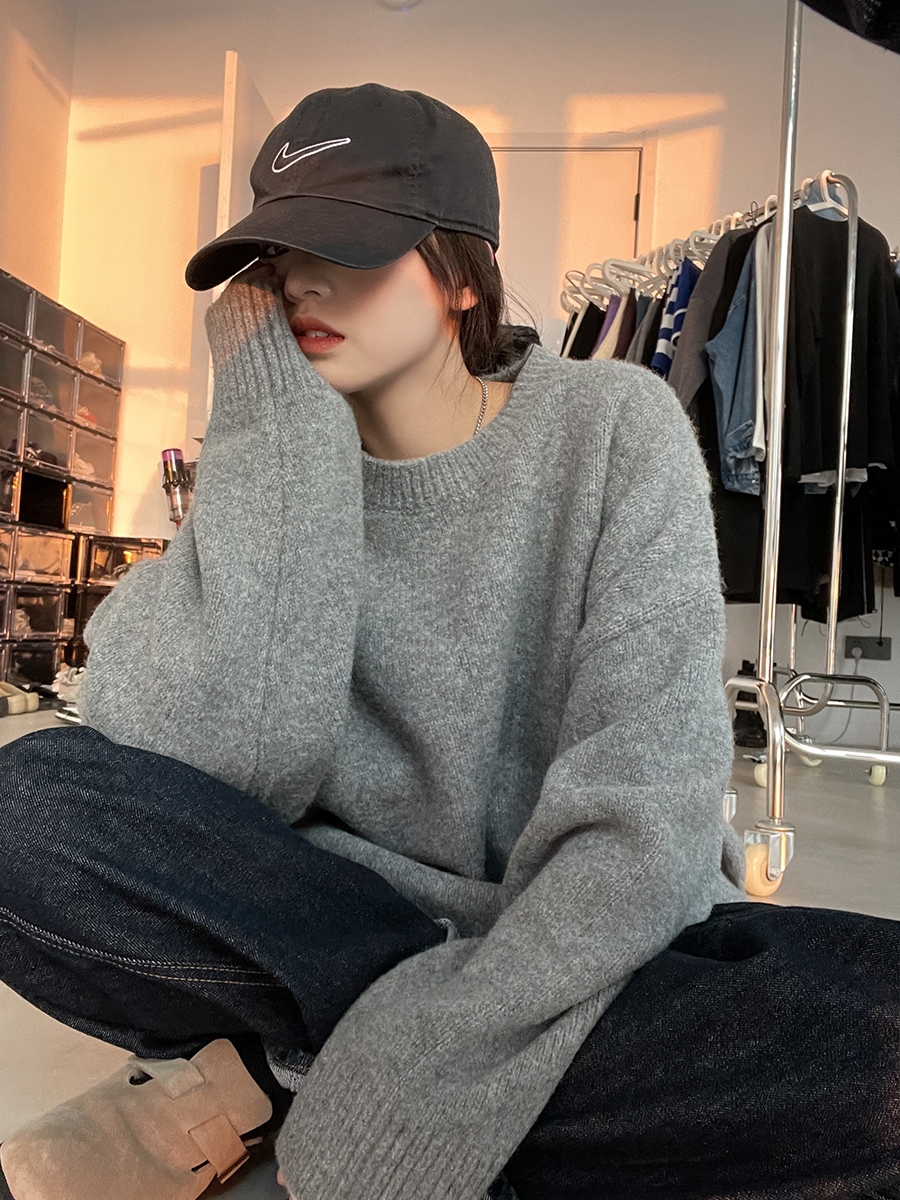 SIXI四喜家秋冬 復古羊毛混紡圓領毛衣女寬鬆慵懶風針織衫外套