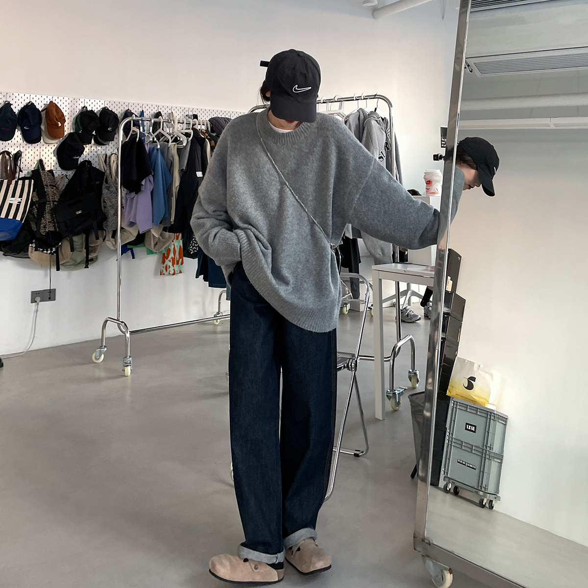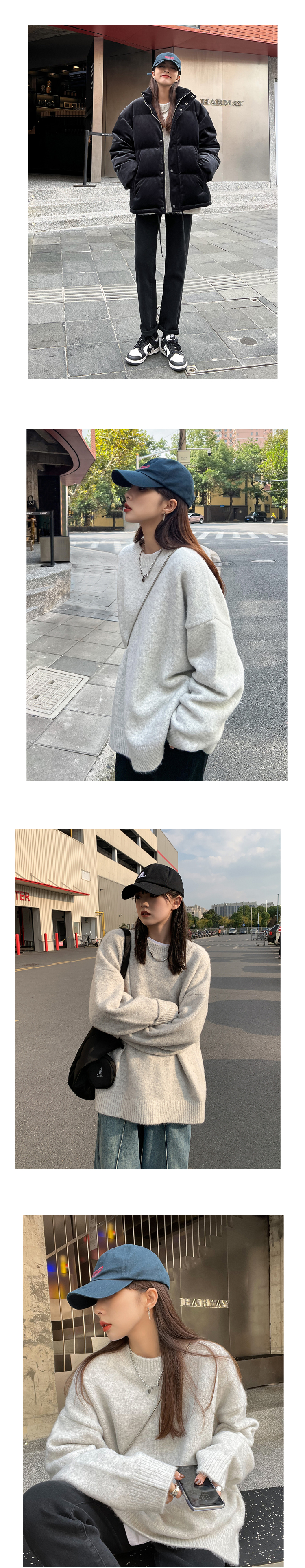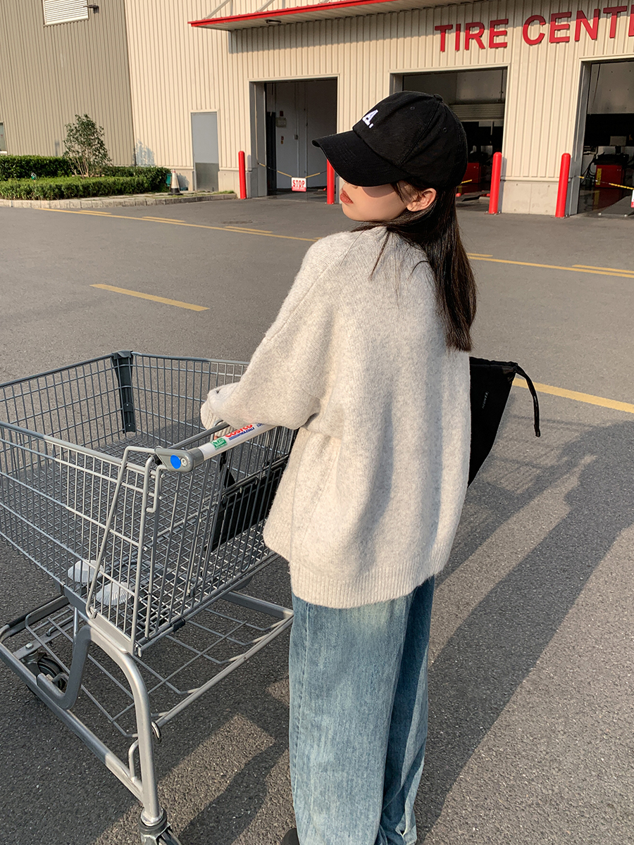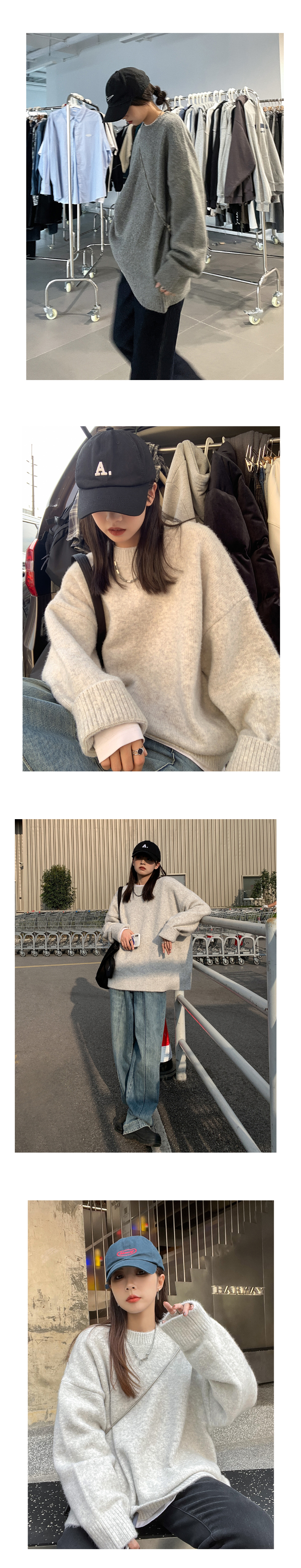 SIXI四喜家秋冬 復古羊毛混紡圓領毛衣女寬鬆慵懶風針織衫外套