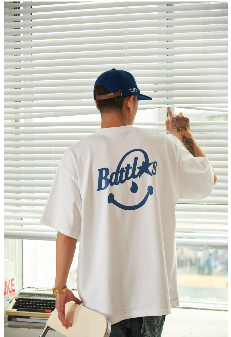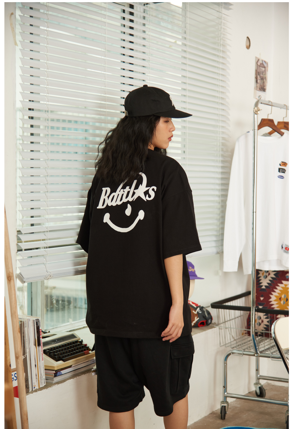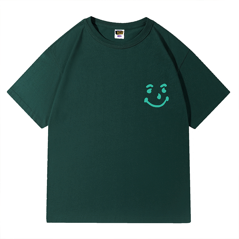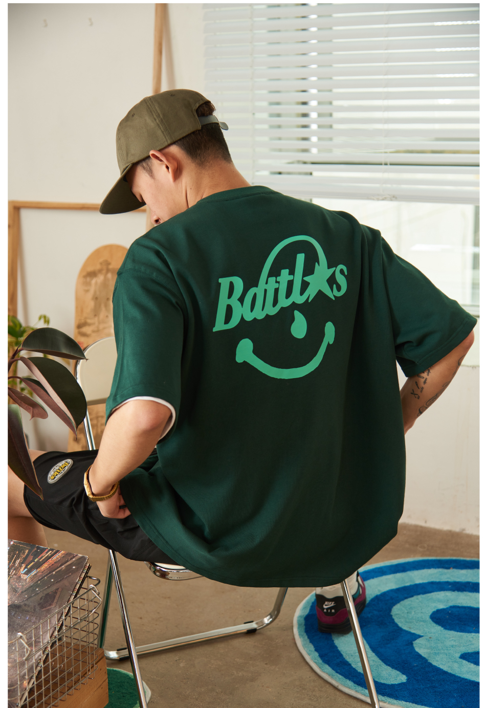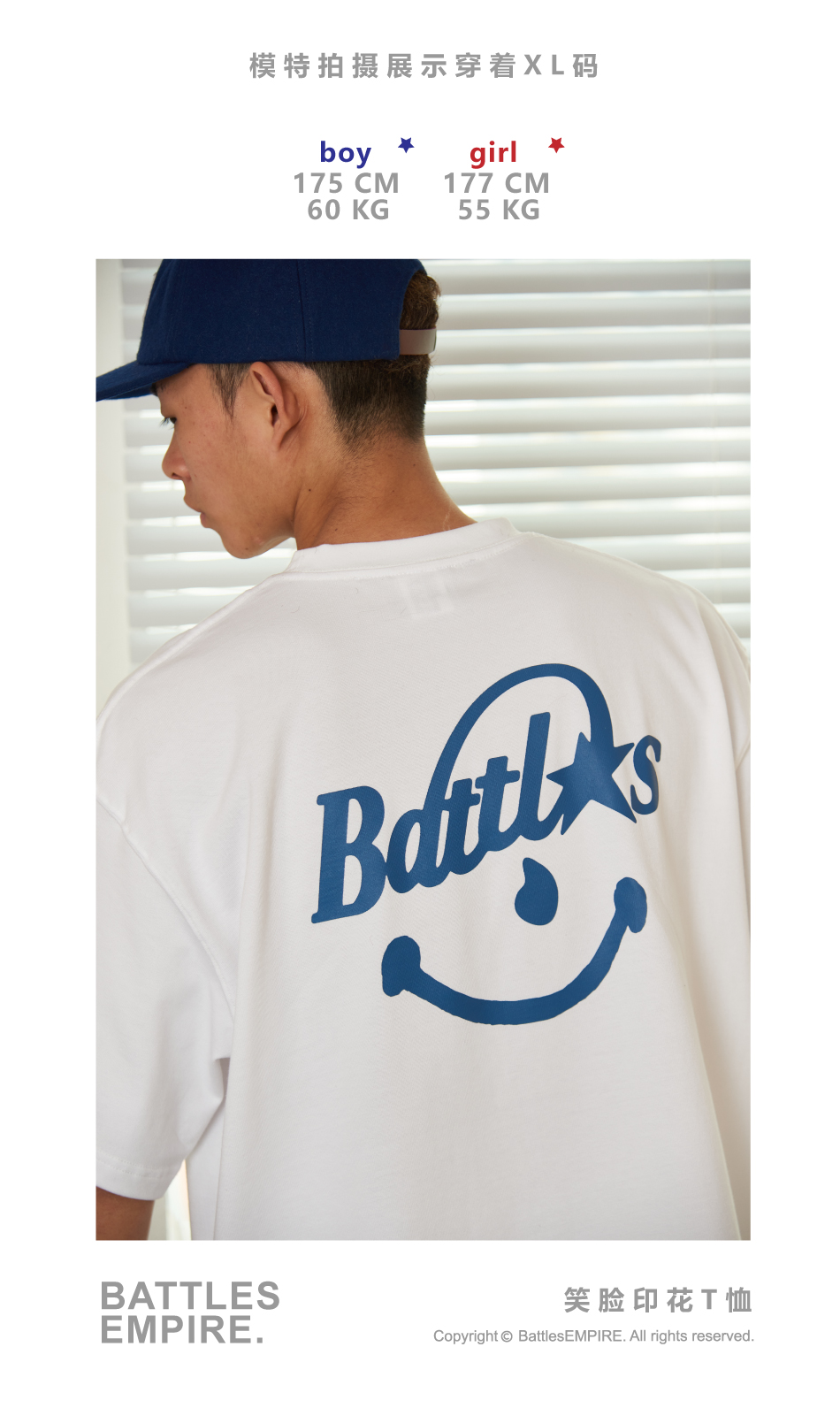 Battles笑臉印花美式300g重磅純棉短袖T恤基礎多色打底衫半袖寬鬆