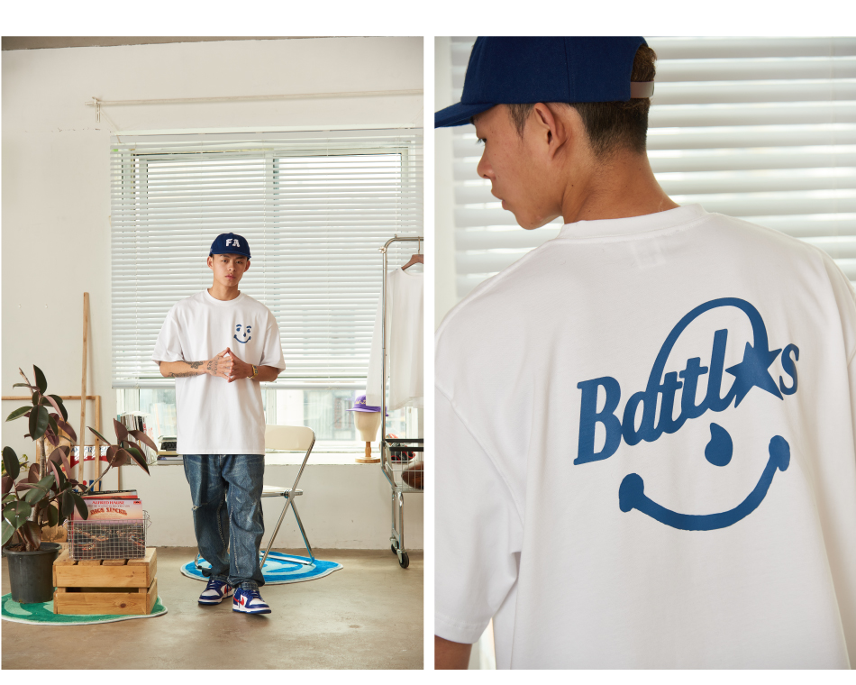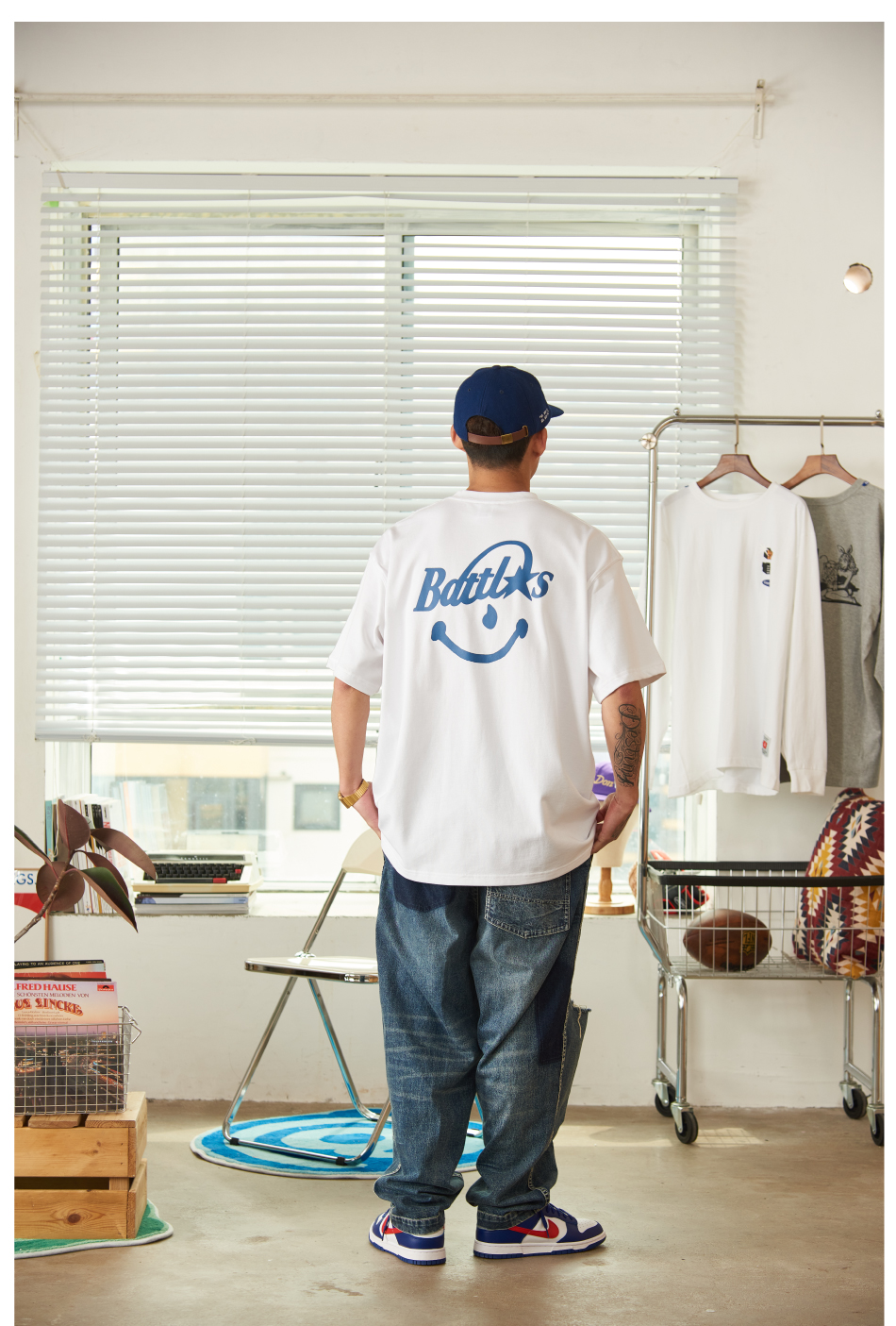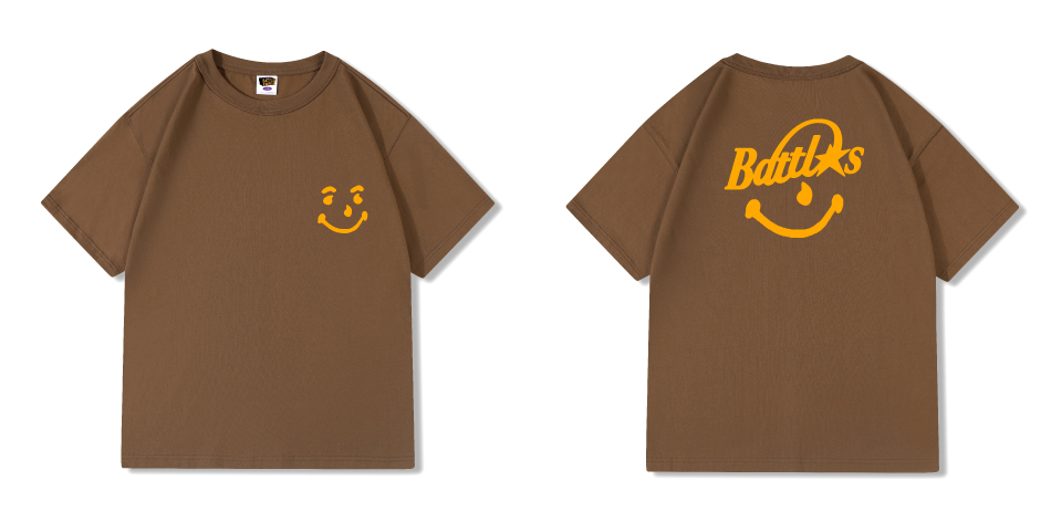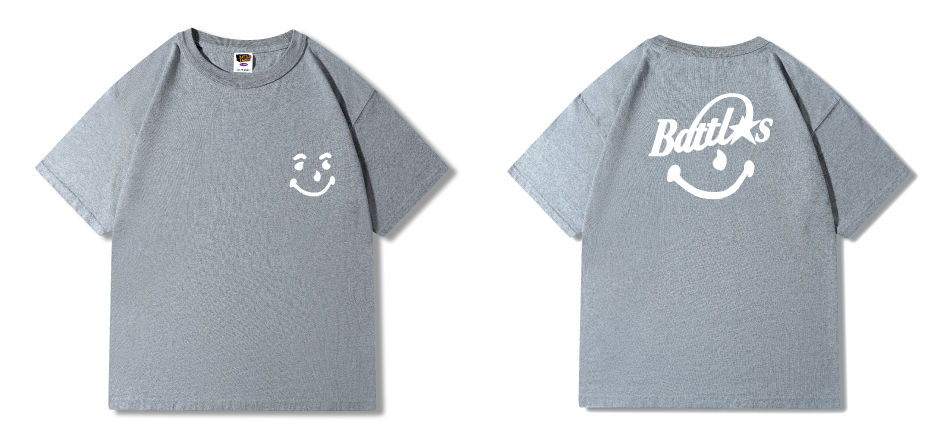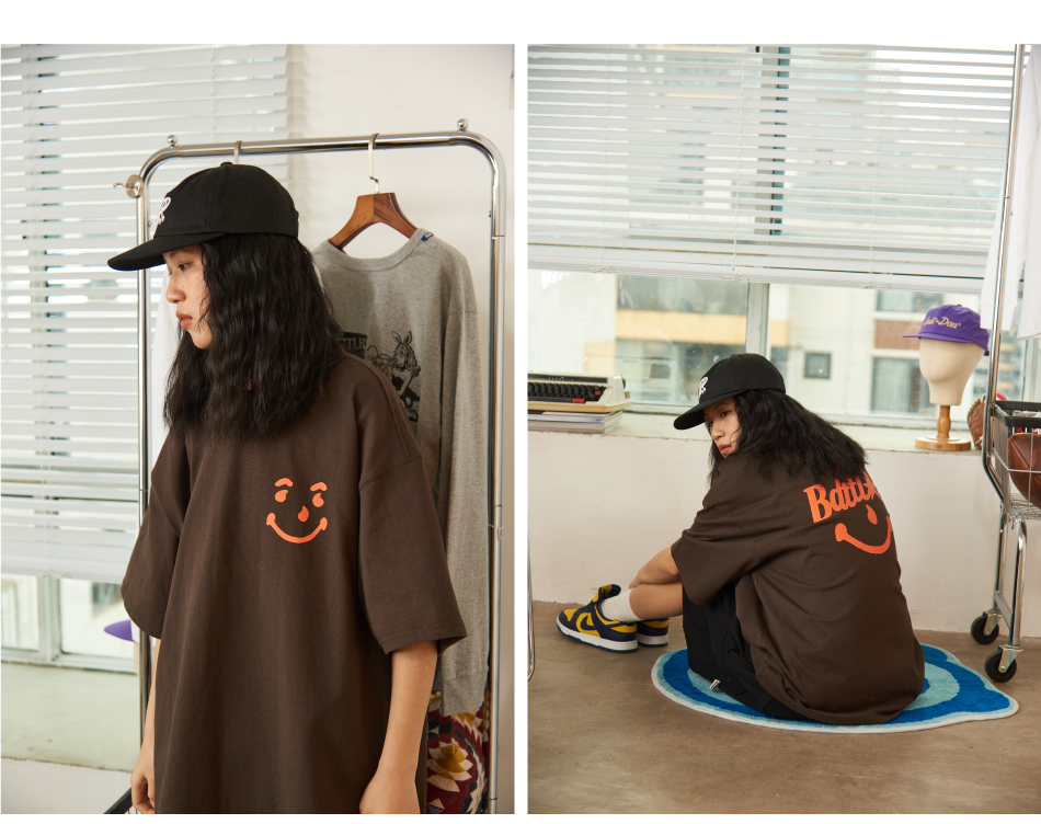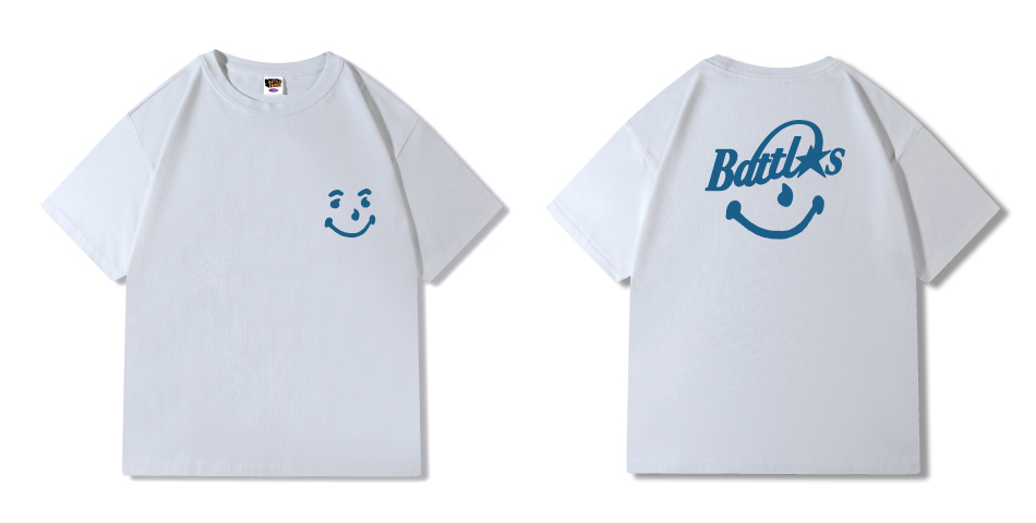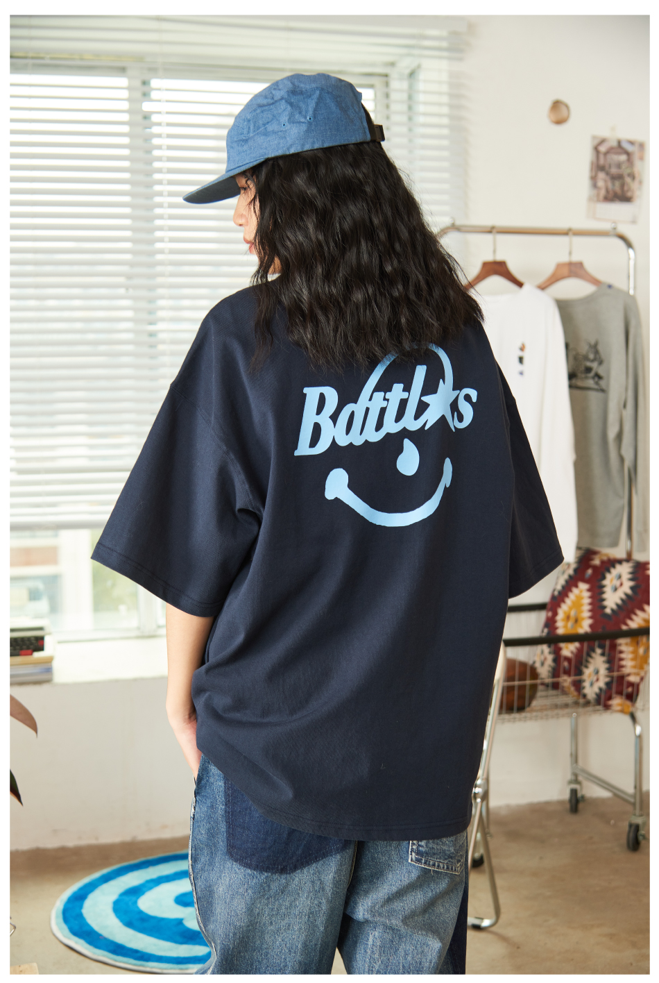 Battles笑臉印花美式300g重磅純棉短袖T恤基礎多色打底衫半袖寬鬆