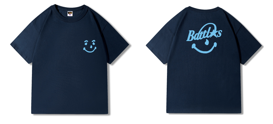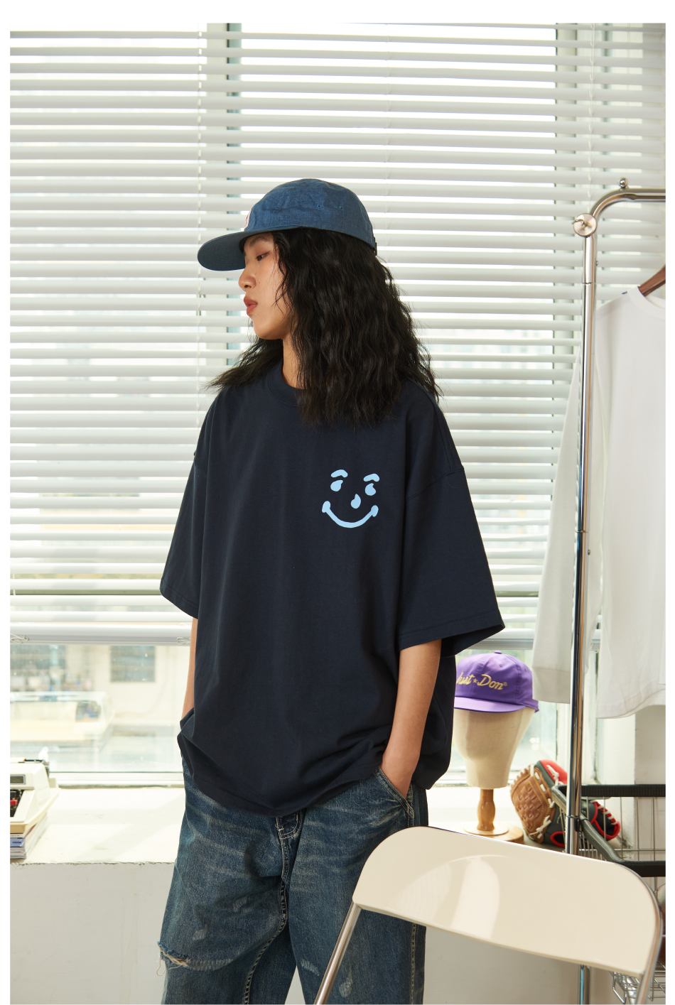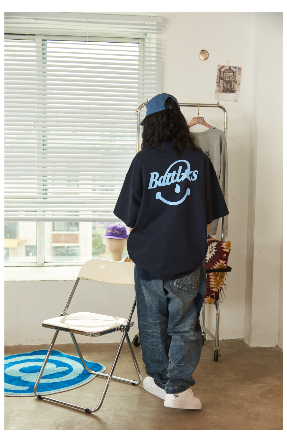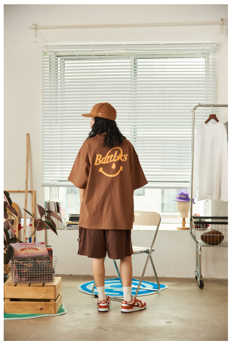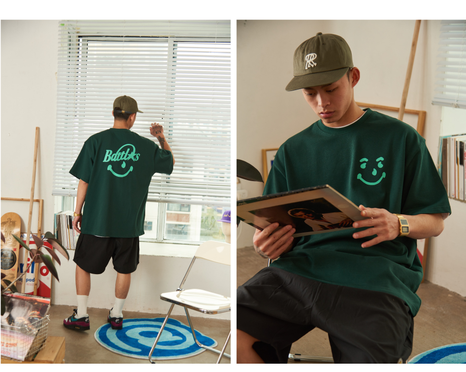 Battles笑臉印花美式300g重磅純棉短袖T恤基礎多色打底衫半袖寬鬆