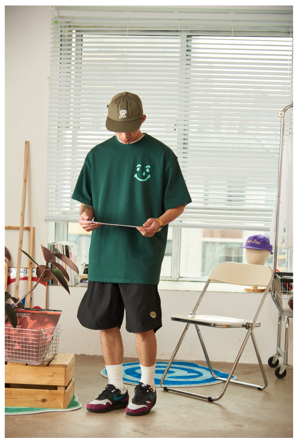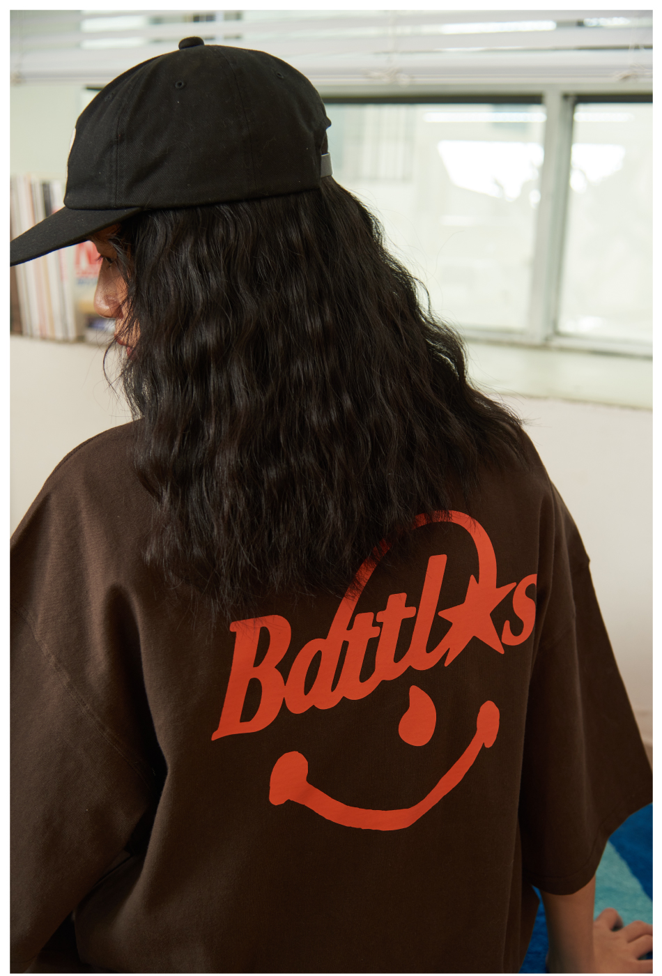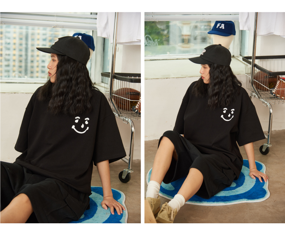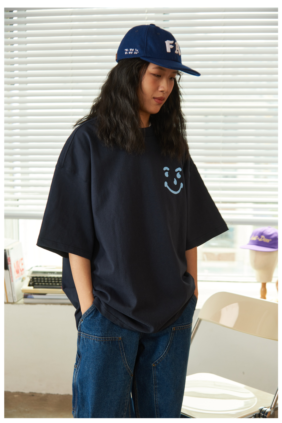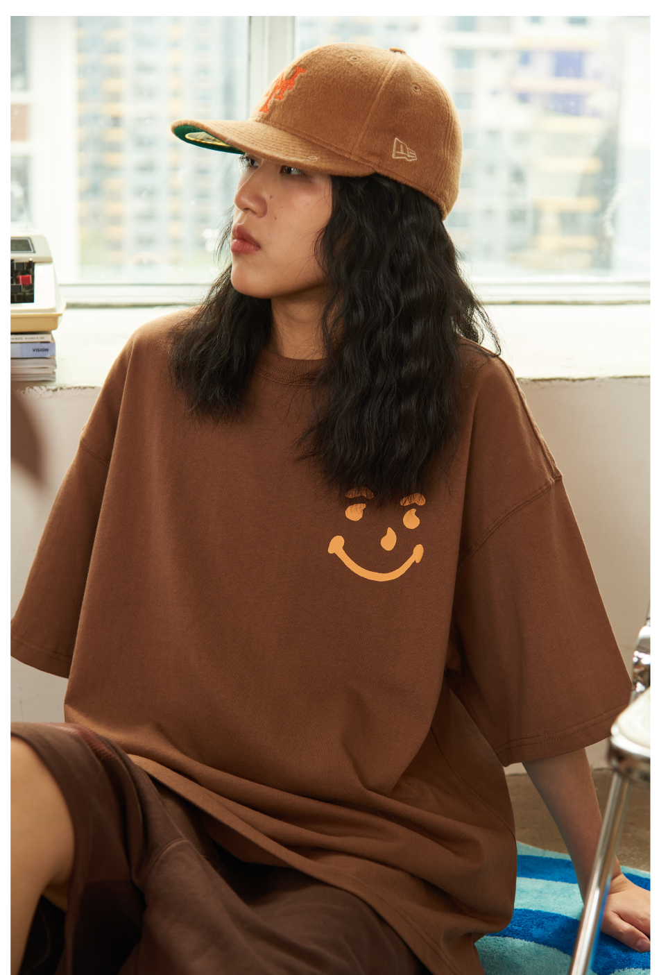 Battles笑臉印花美式300g重磅純棉短袖T恤基礎多色打底衫半袖寬鬆