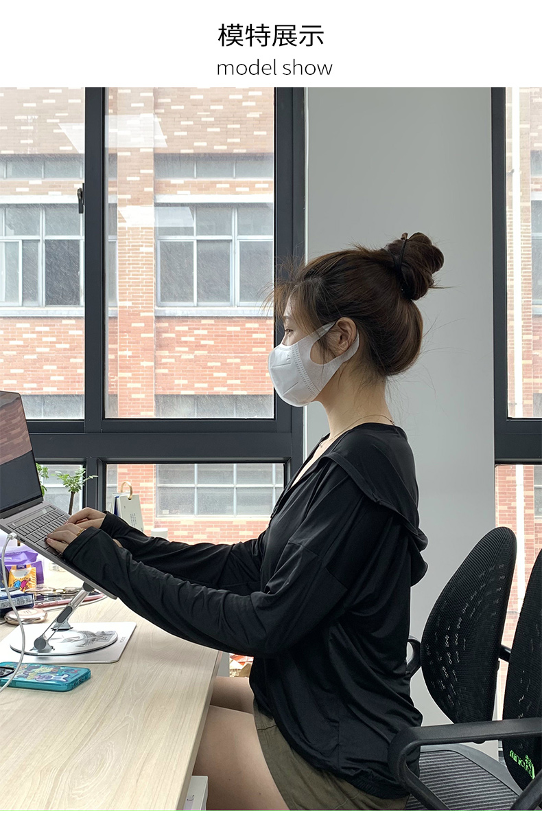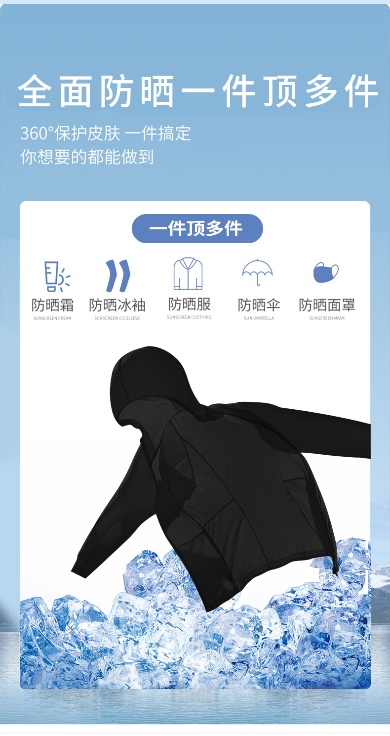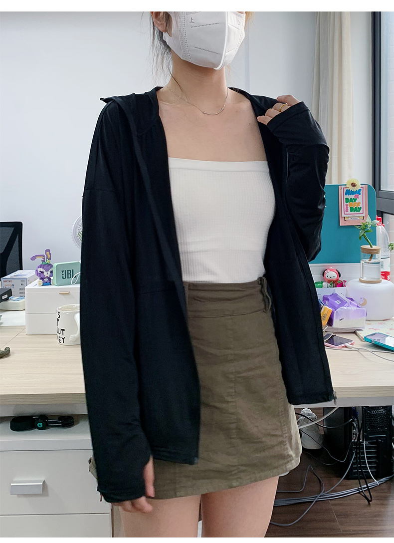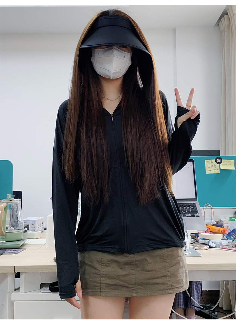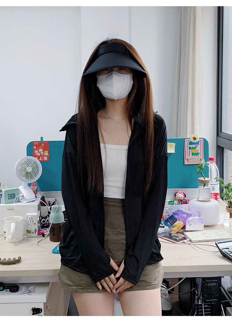 黑色防曬衣女款2023新款女孩夏季冰絲防曬服女抗UV套裝外套夏