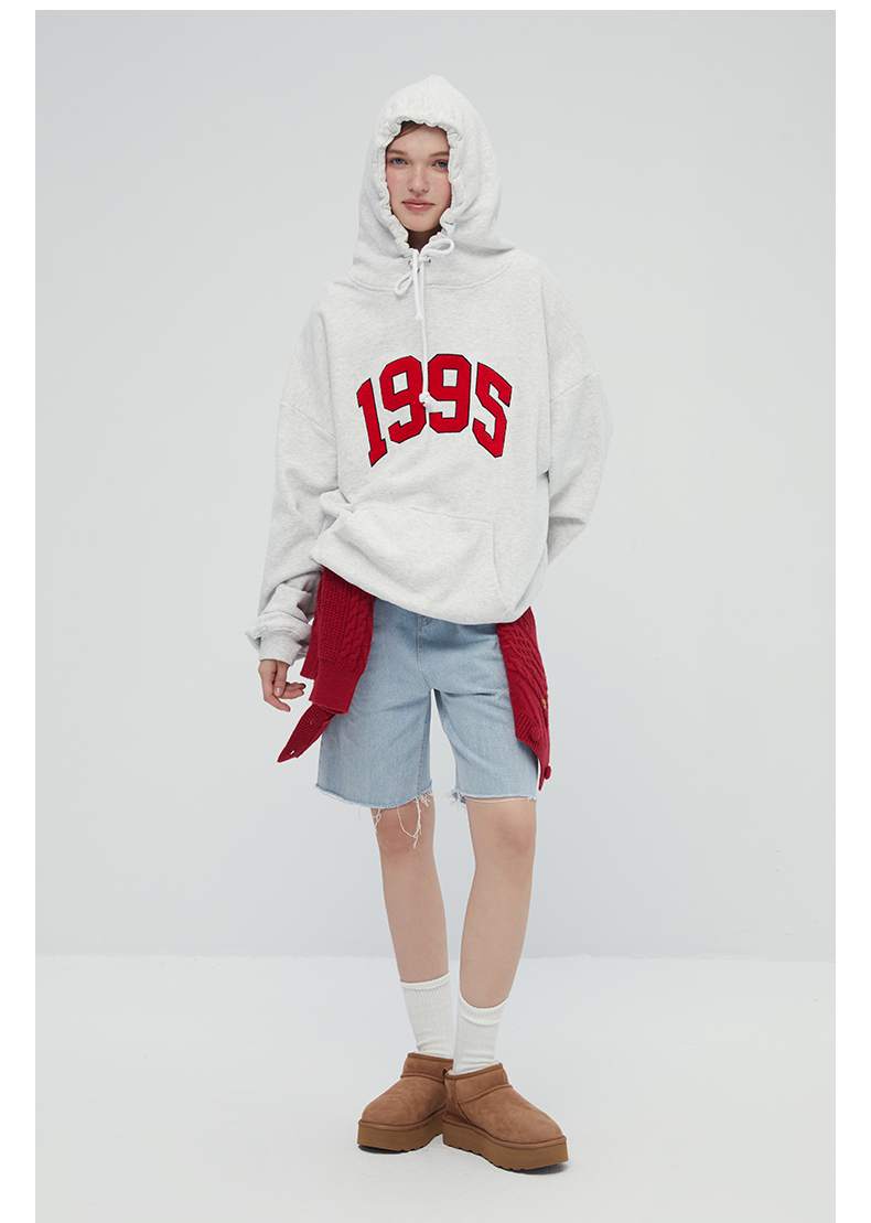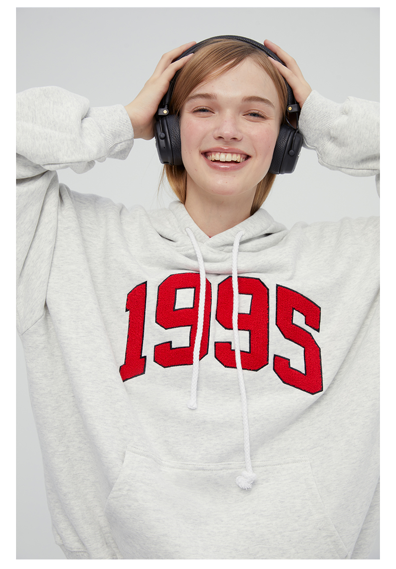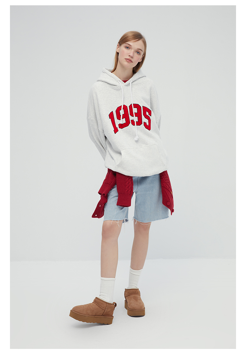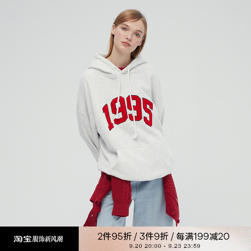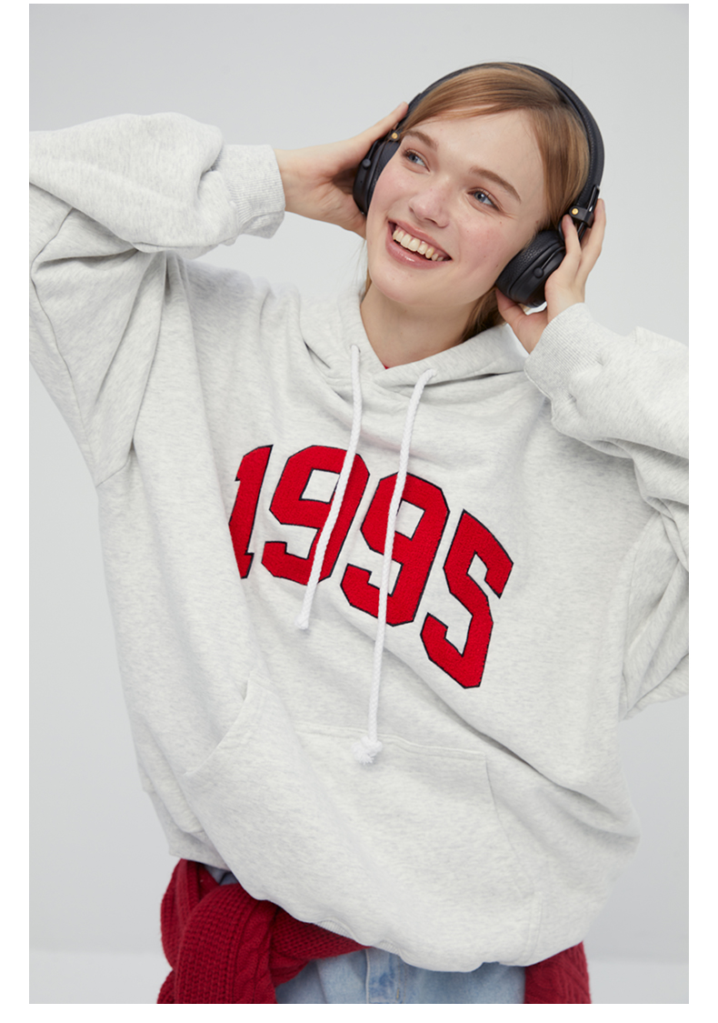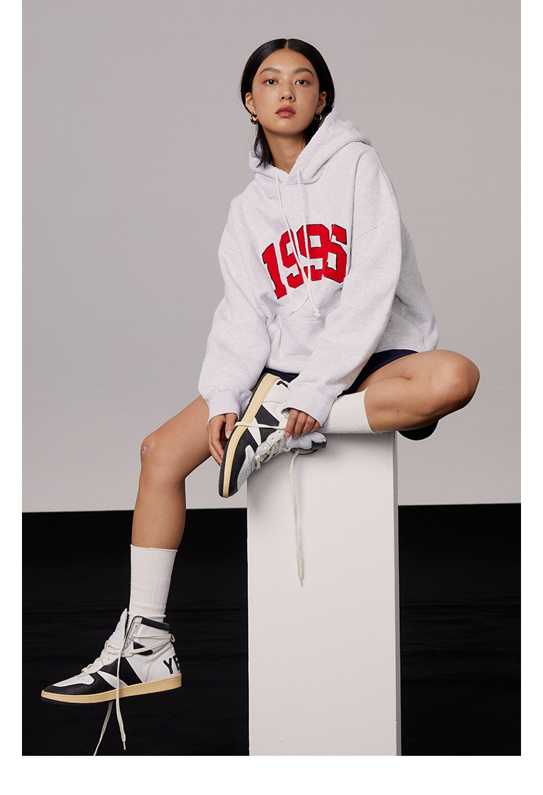 [張婧儀同款]AHHH美式新款連帽運動衫女休閒寬鬆灰白色套頭帽衫上衣