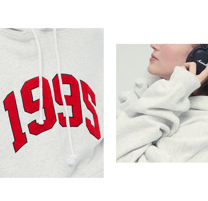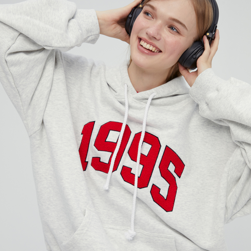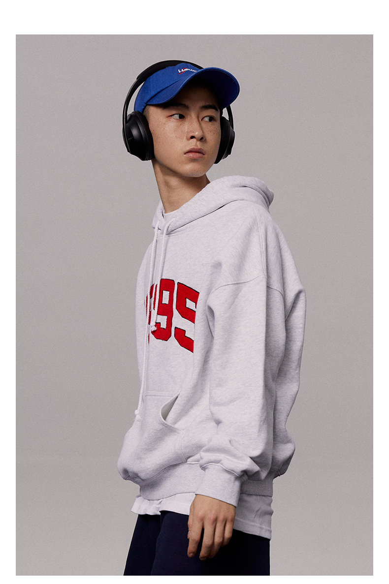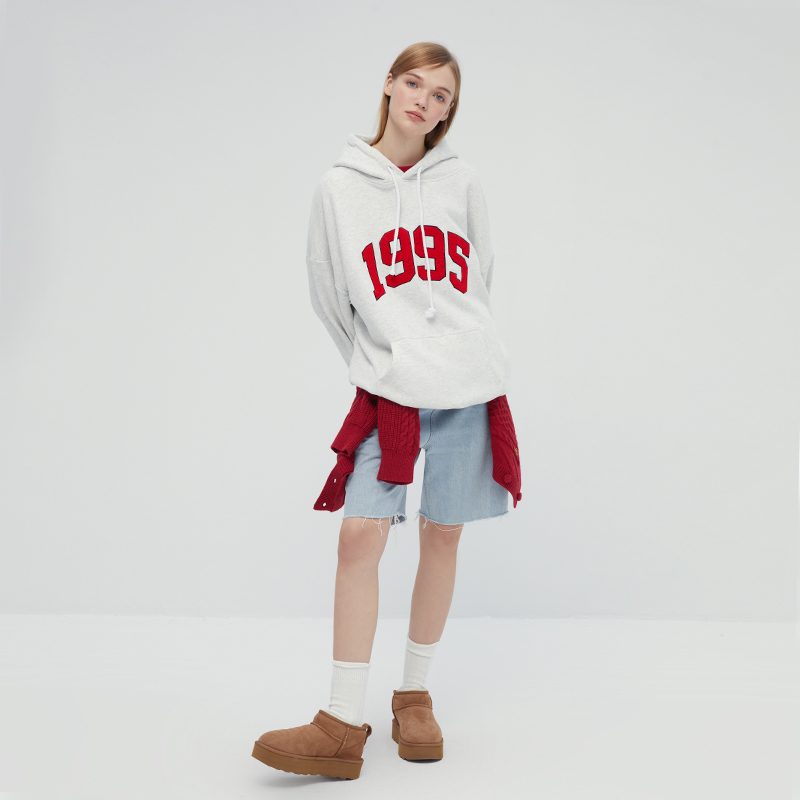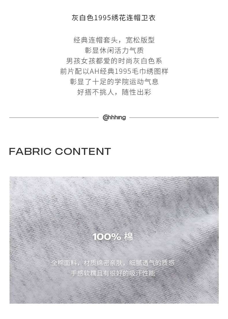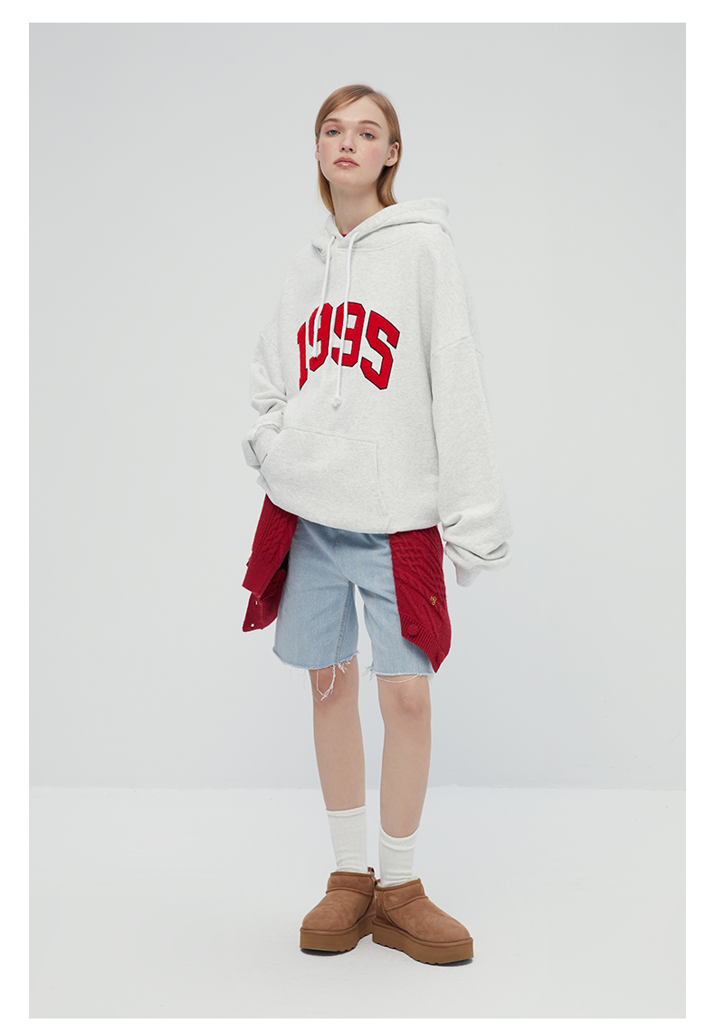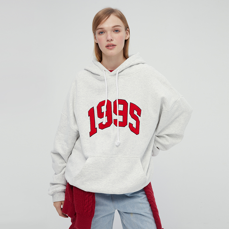 [張婧儀同款]AHHH美式新款連帽運動衫女休閒寬鬆灰白色套頭帽衫上衣
