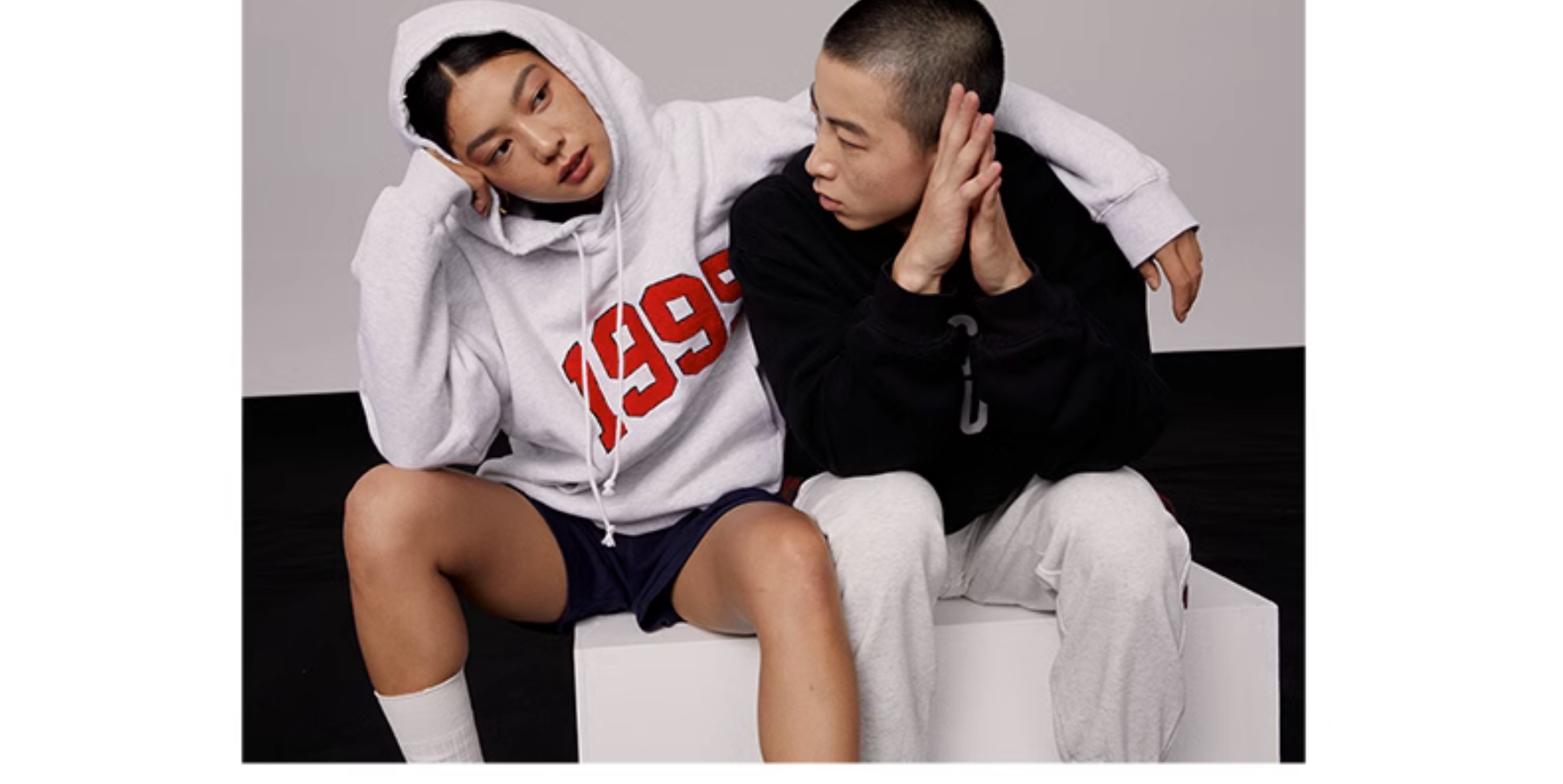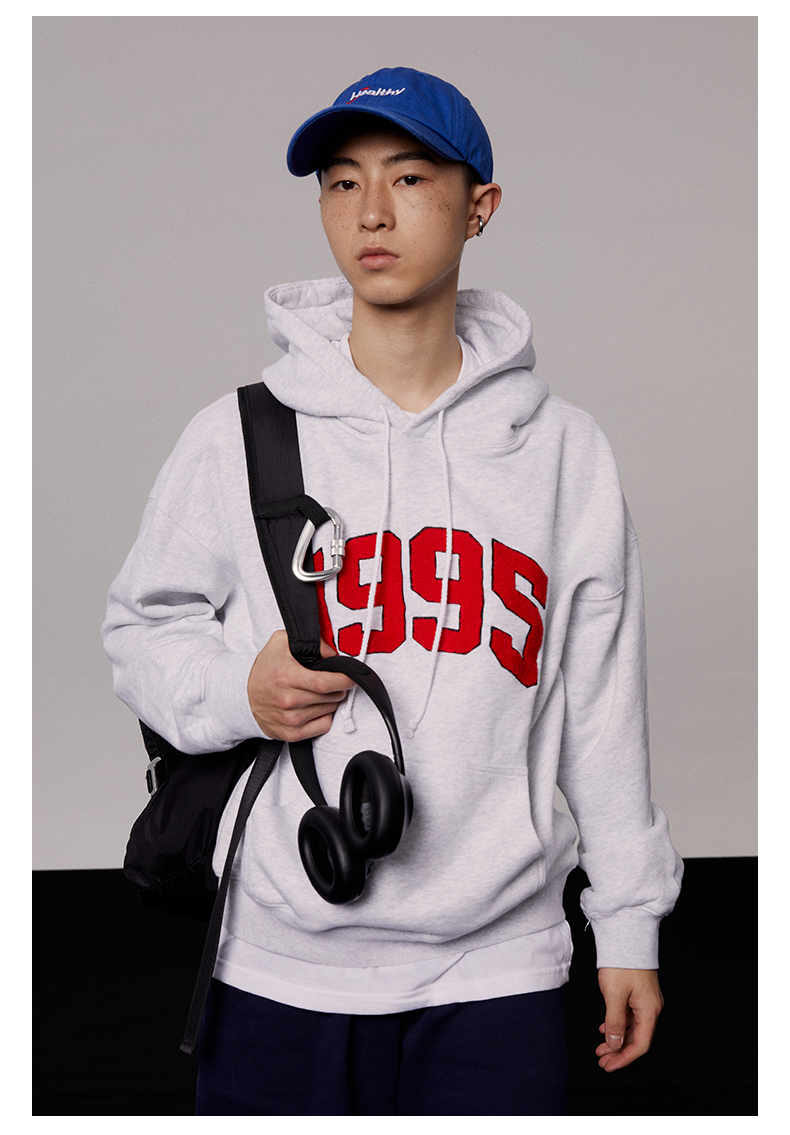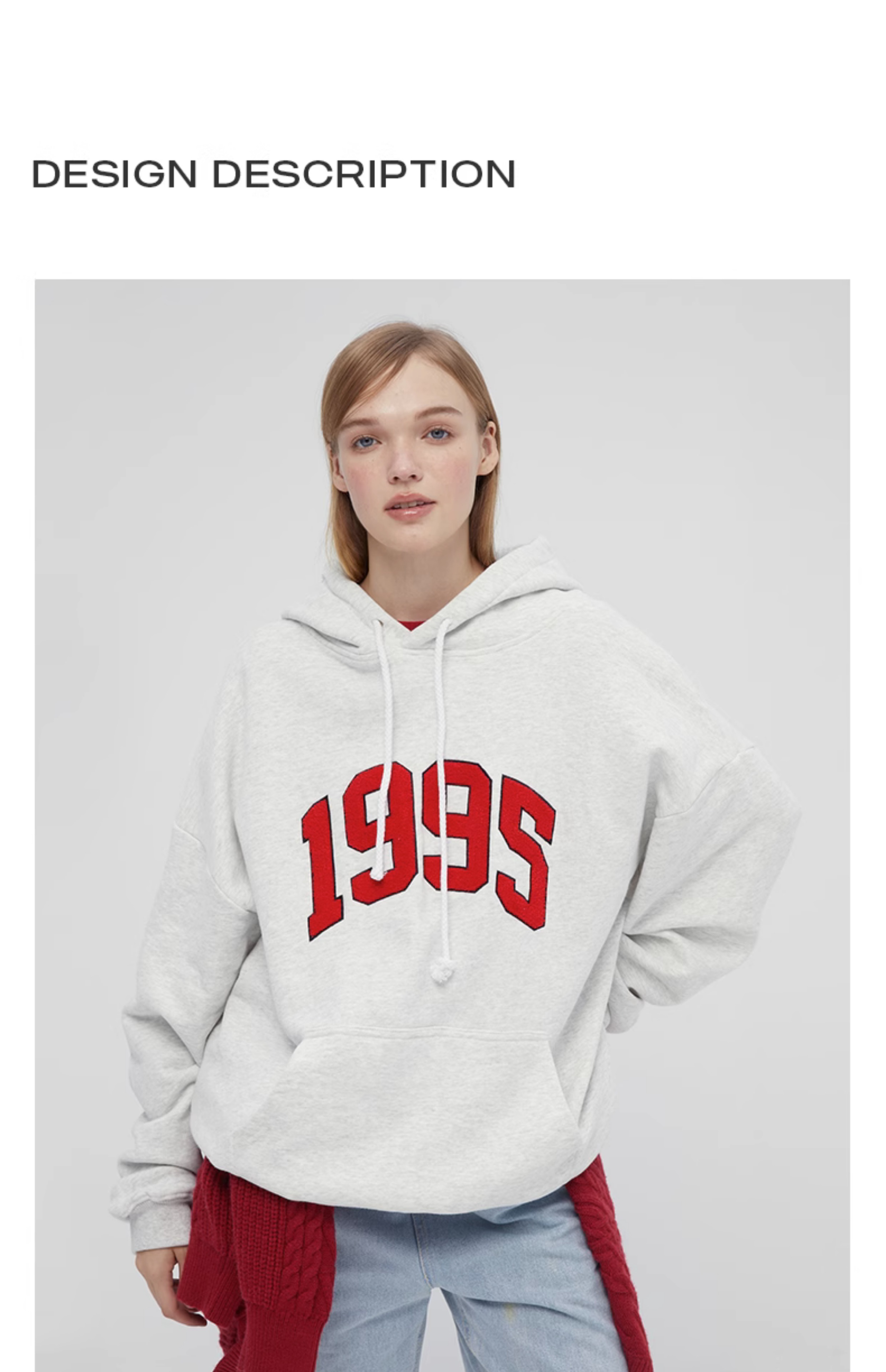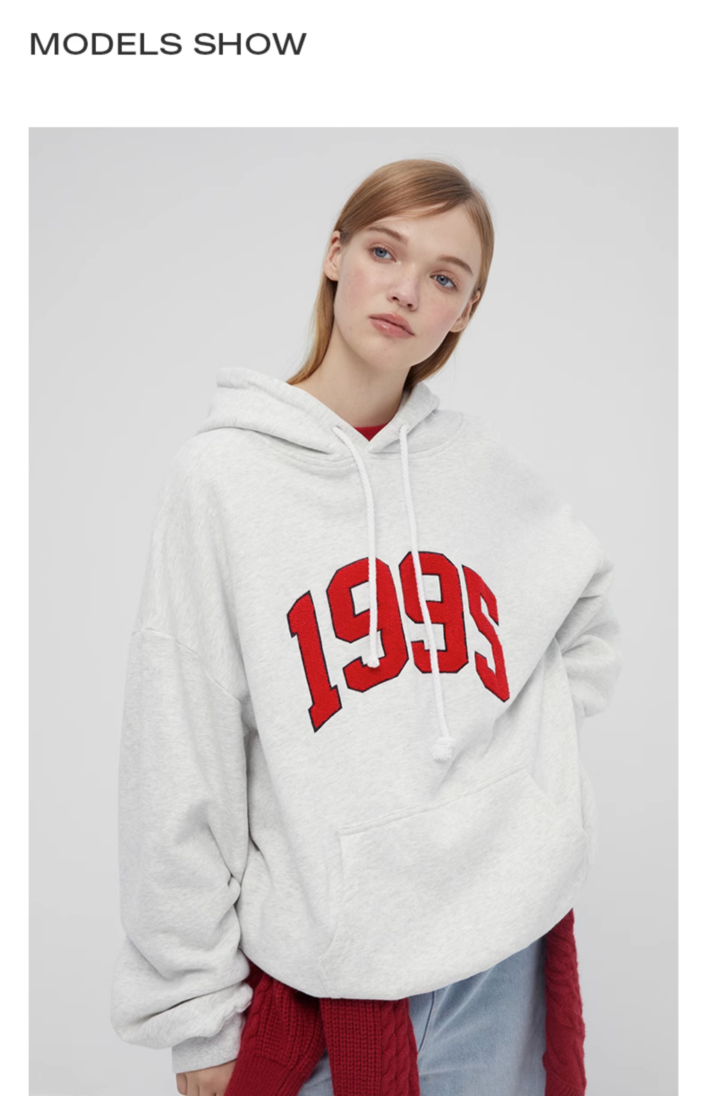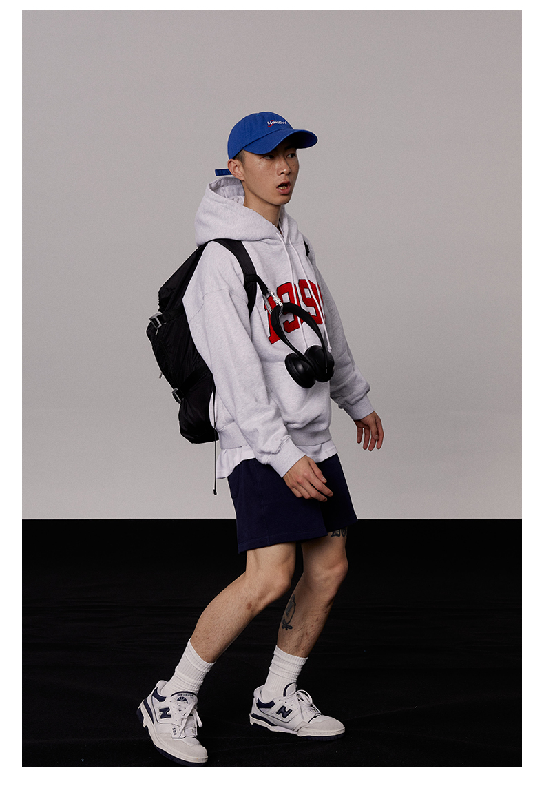 [張婧儀同款]AHHH美式新款連帽運動衫女休閒寬鬆灰白色套頭帽衫上衣
