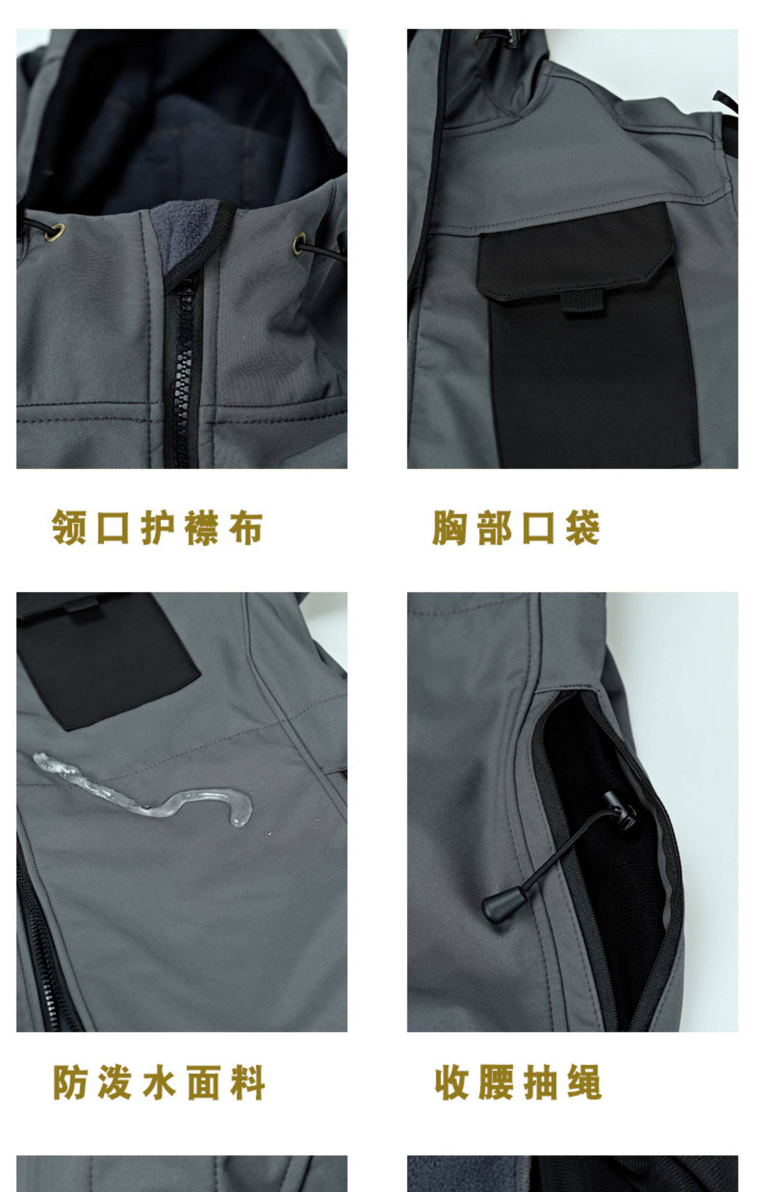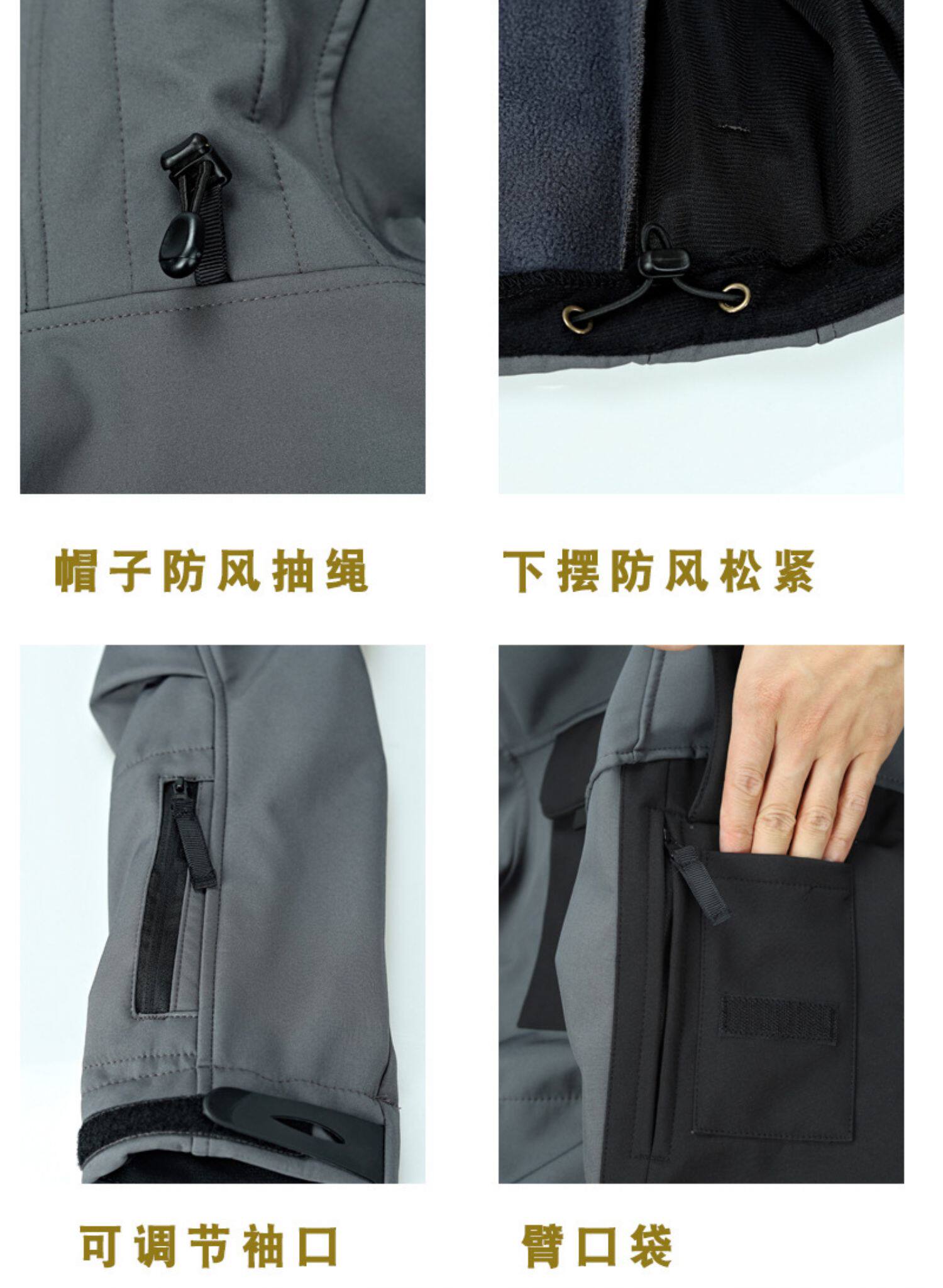 冬季機能軟殼抓絨拼接戰術特工夾克修身型外套通勤連帽衝鋒衣防水