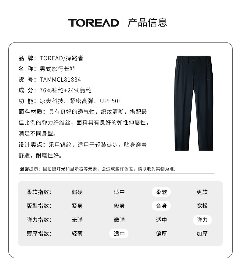 探路者速乾褲男 23夏季新款戶外徒步透氣舒適薄款旅行休閒褲81834