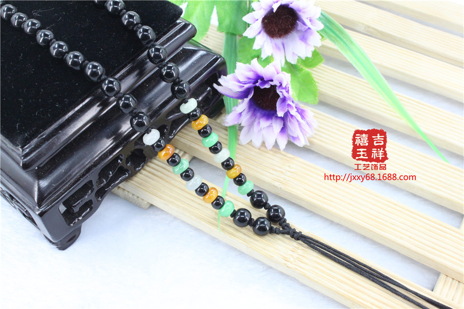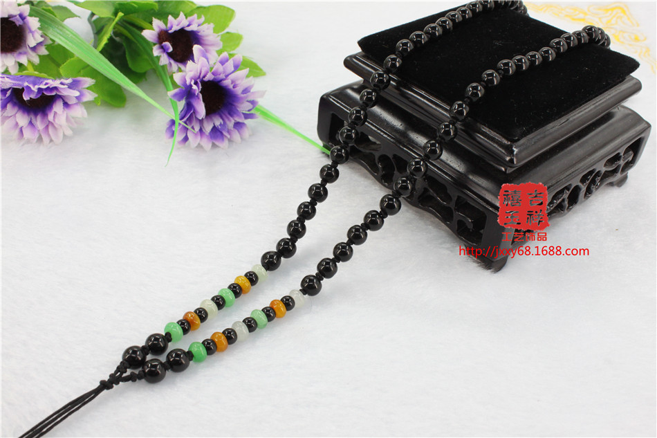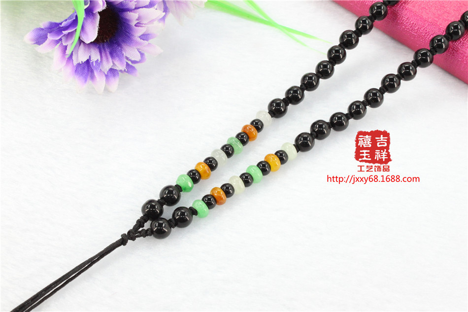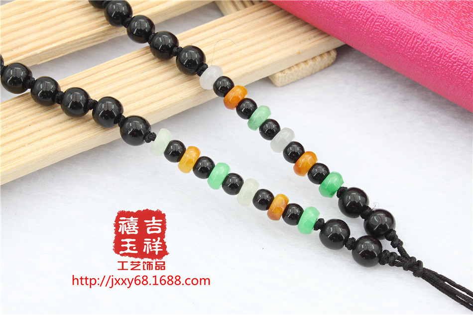 原创天然A货翡翠米通全珠链手工编织毛衣挂绳四会吊坠绳饰品批发6.50
