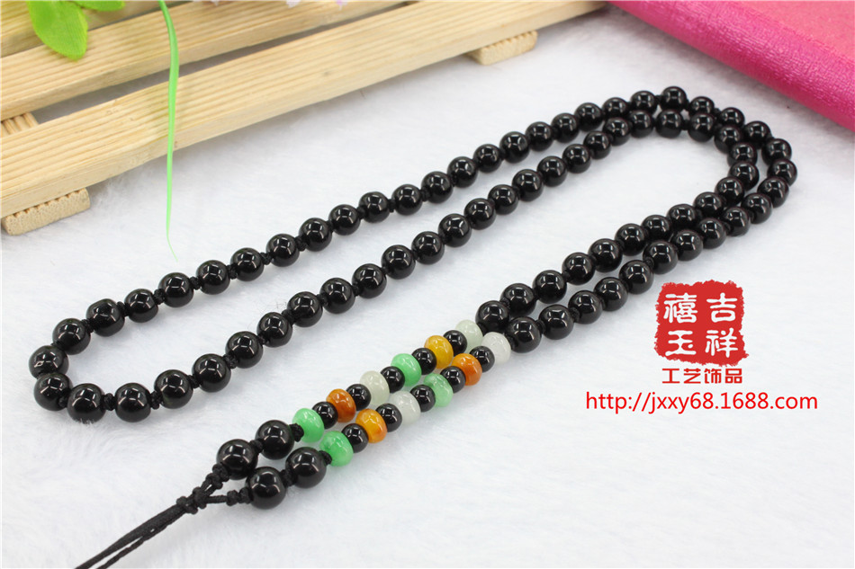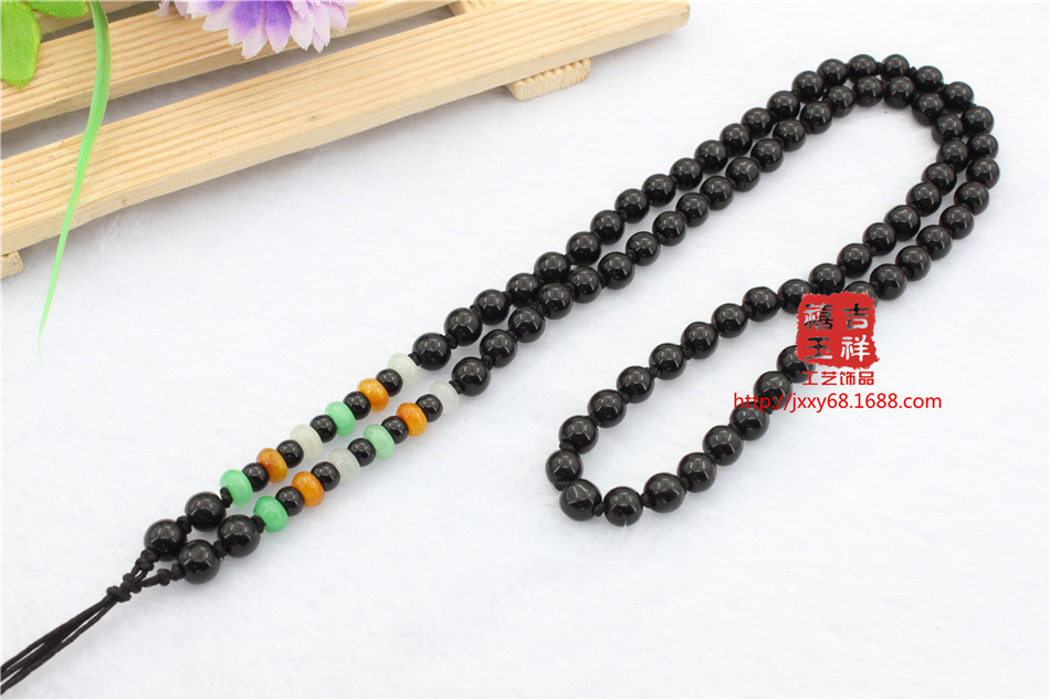 原创六字真言磨砂黑玛瑙全珠项链纯手工编织吊坠挂绳珠链批发6.00
