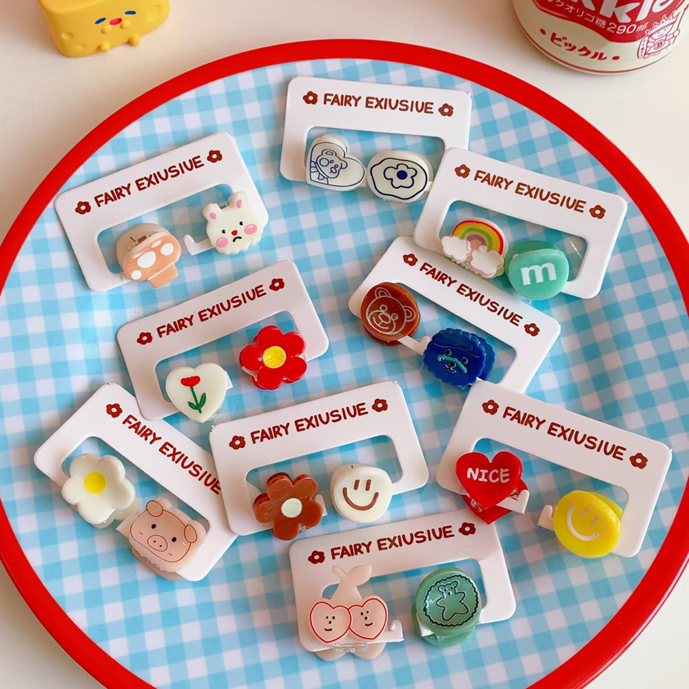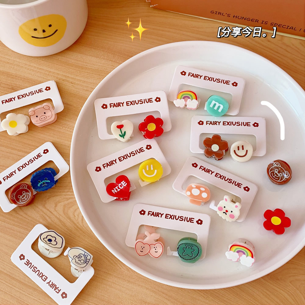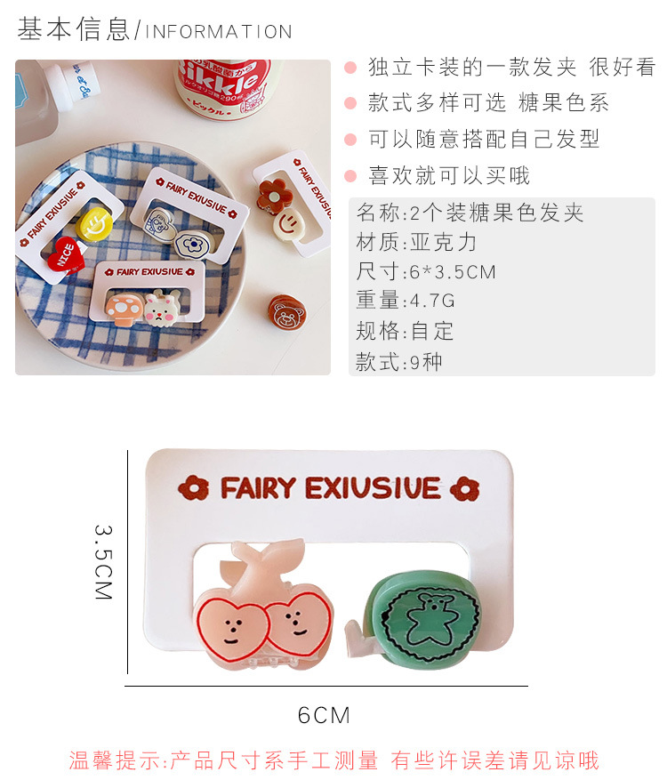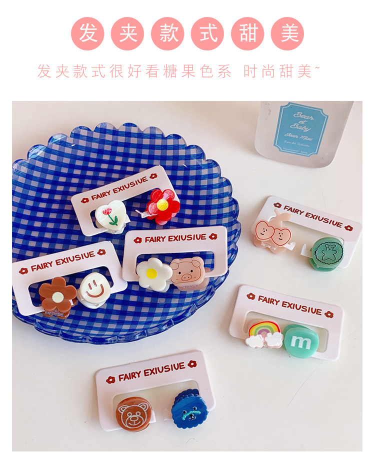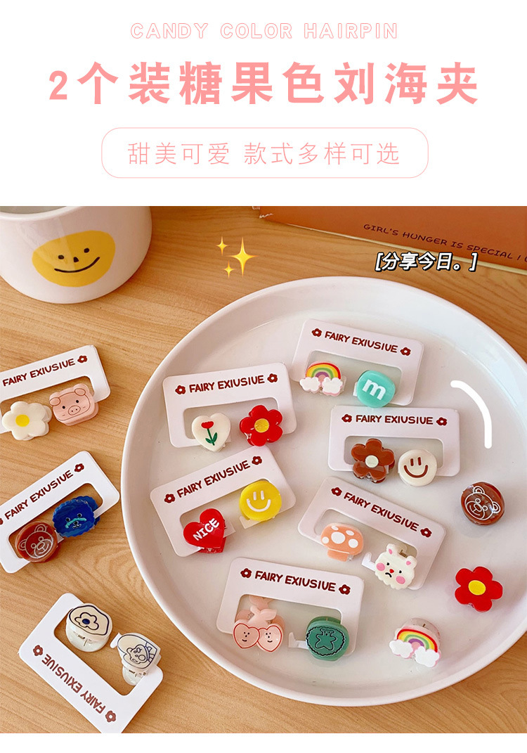 2个装发饰糖果色可爱迷你小发夹卡通小熊刘海夹碎发抓夹学生饰品