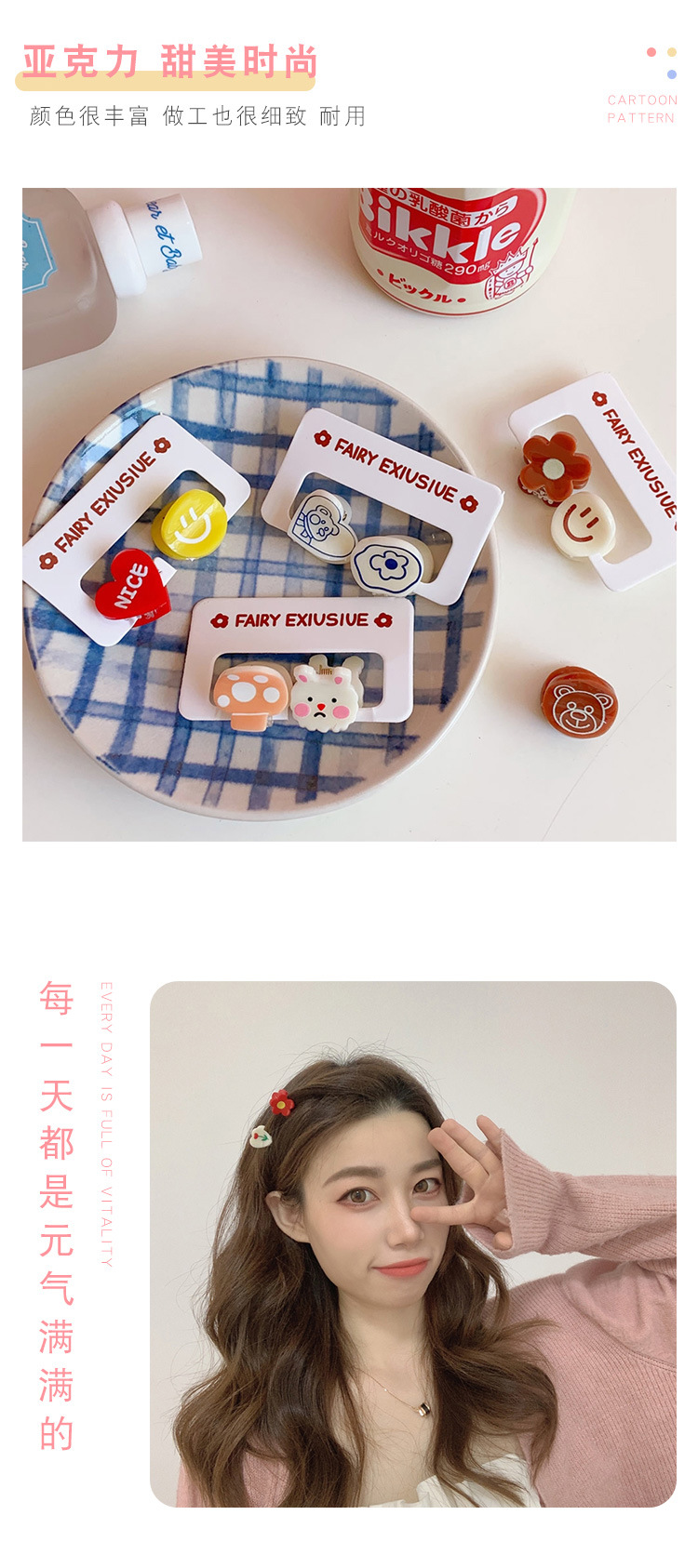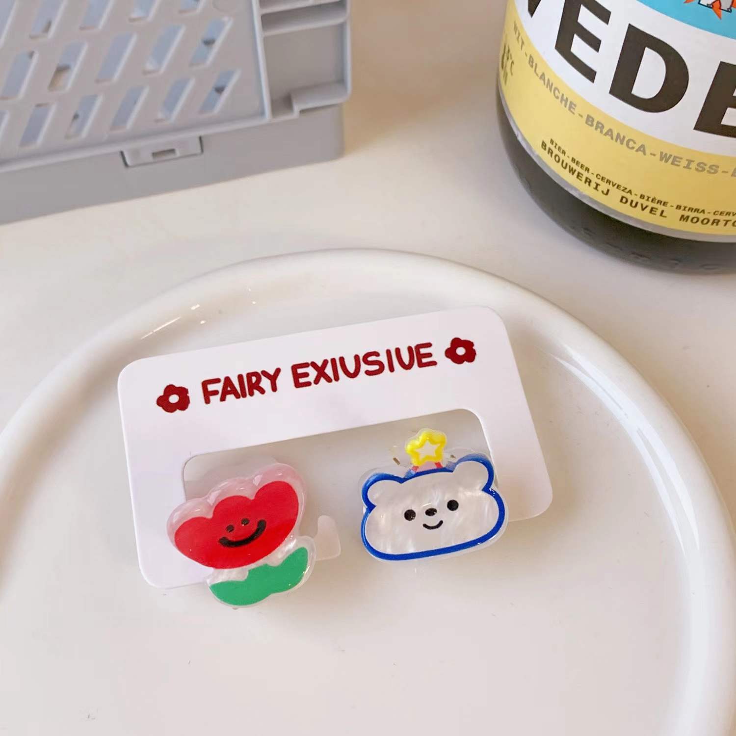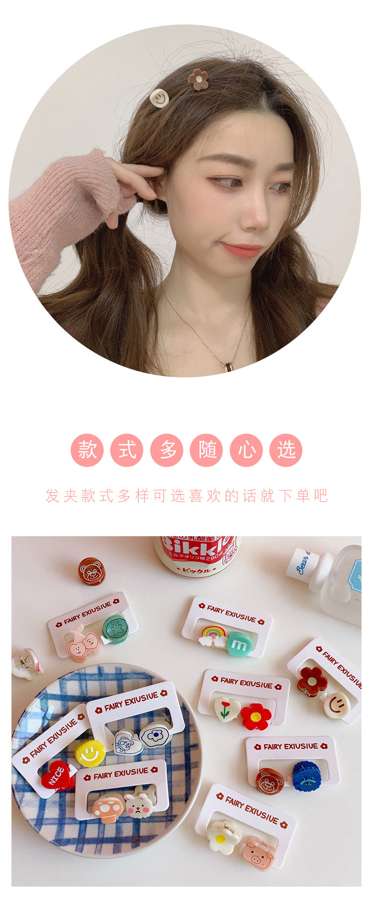 2个装发饰糖果色可爱迷你小发夹卡通小熊刘海夹碎发抓夹学生饰品