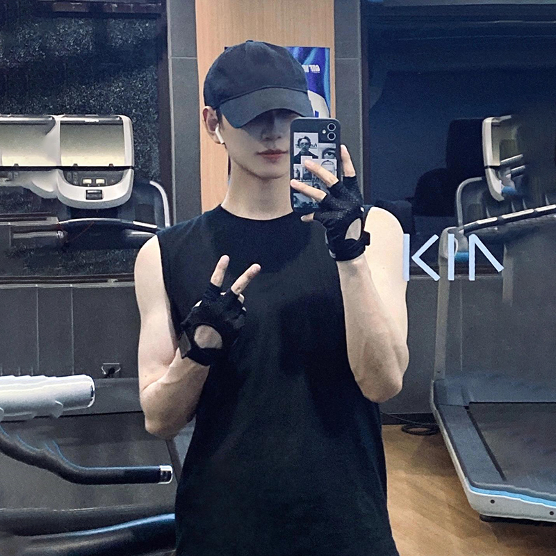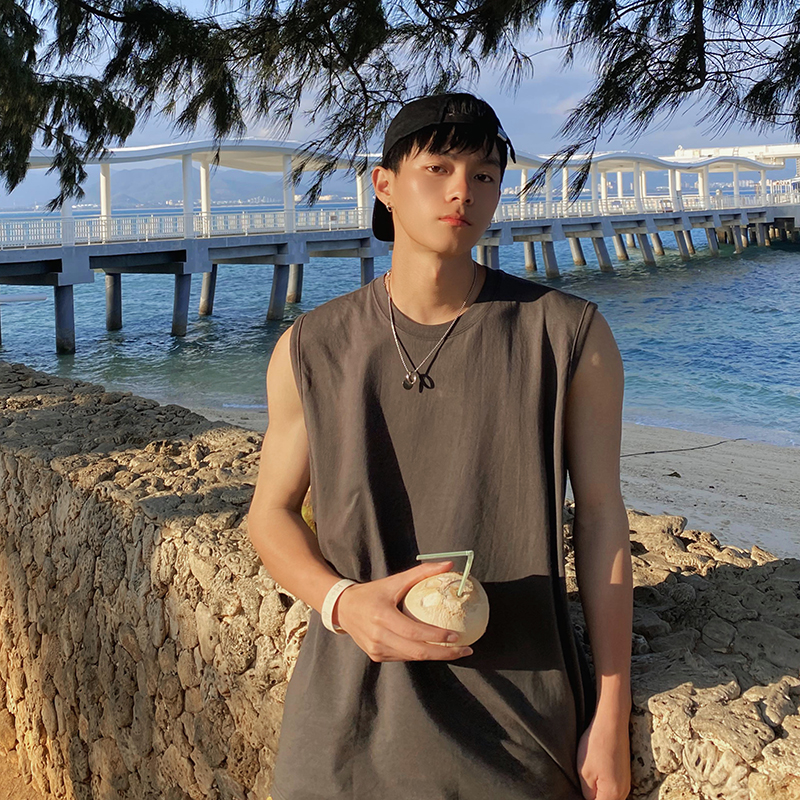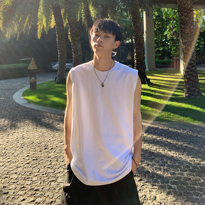 重磅小領口無袖T恤ins潮純棉坎肩背心內搭打底美式籃球健身運動服