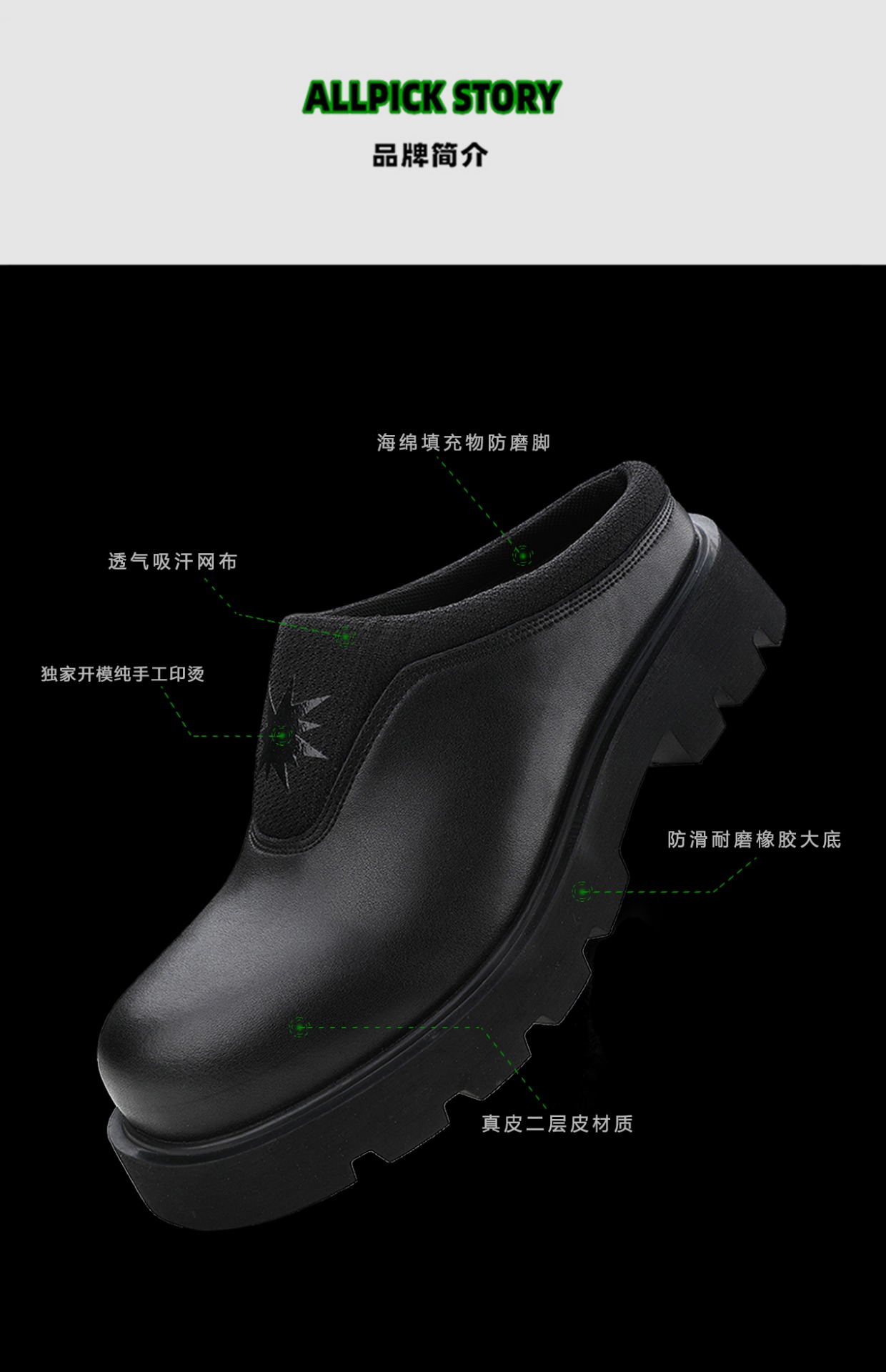 韓橋日記[重生系列]小眾設計男士黑色德比包頭拖鞋厚底休閒半拖潮