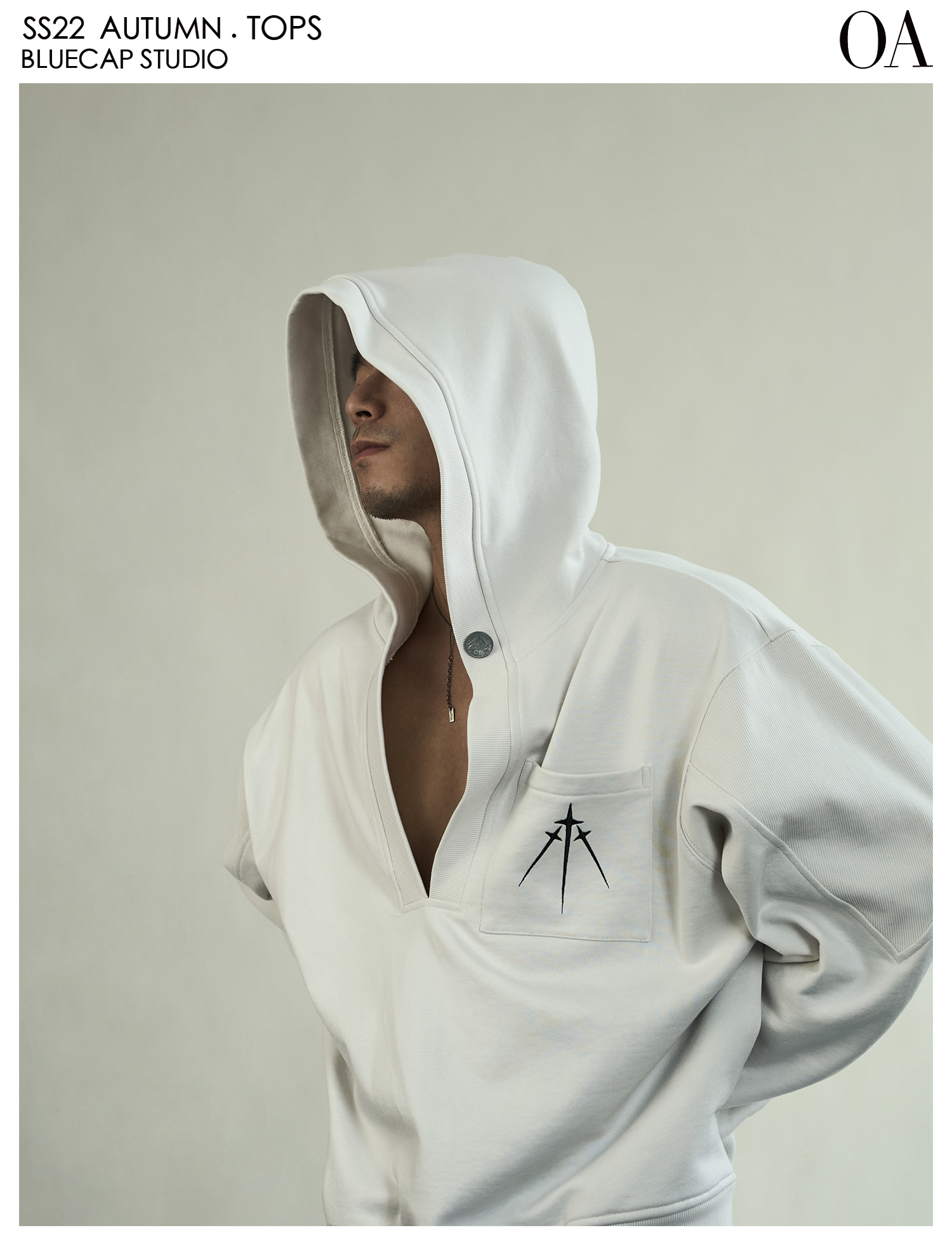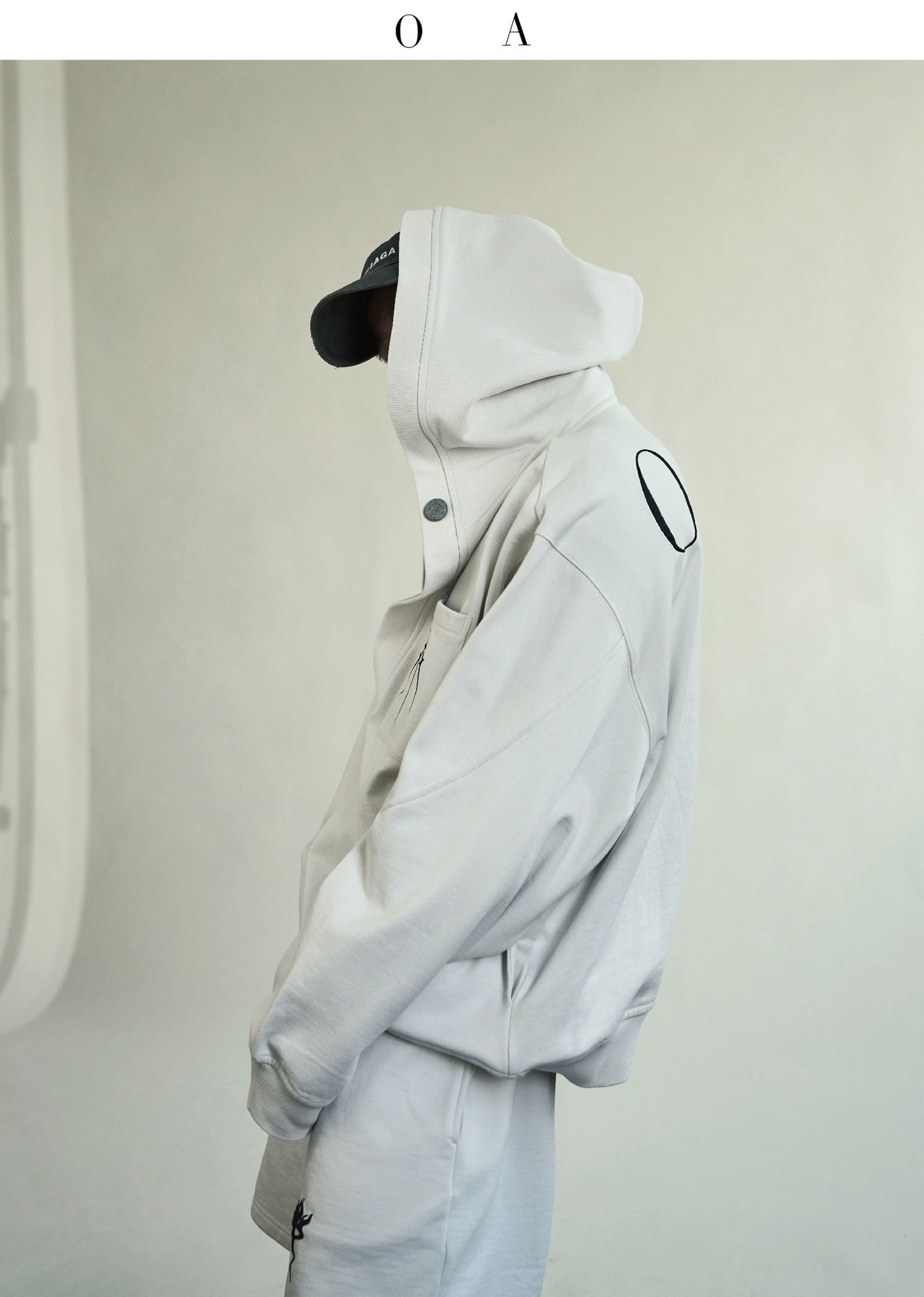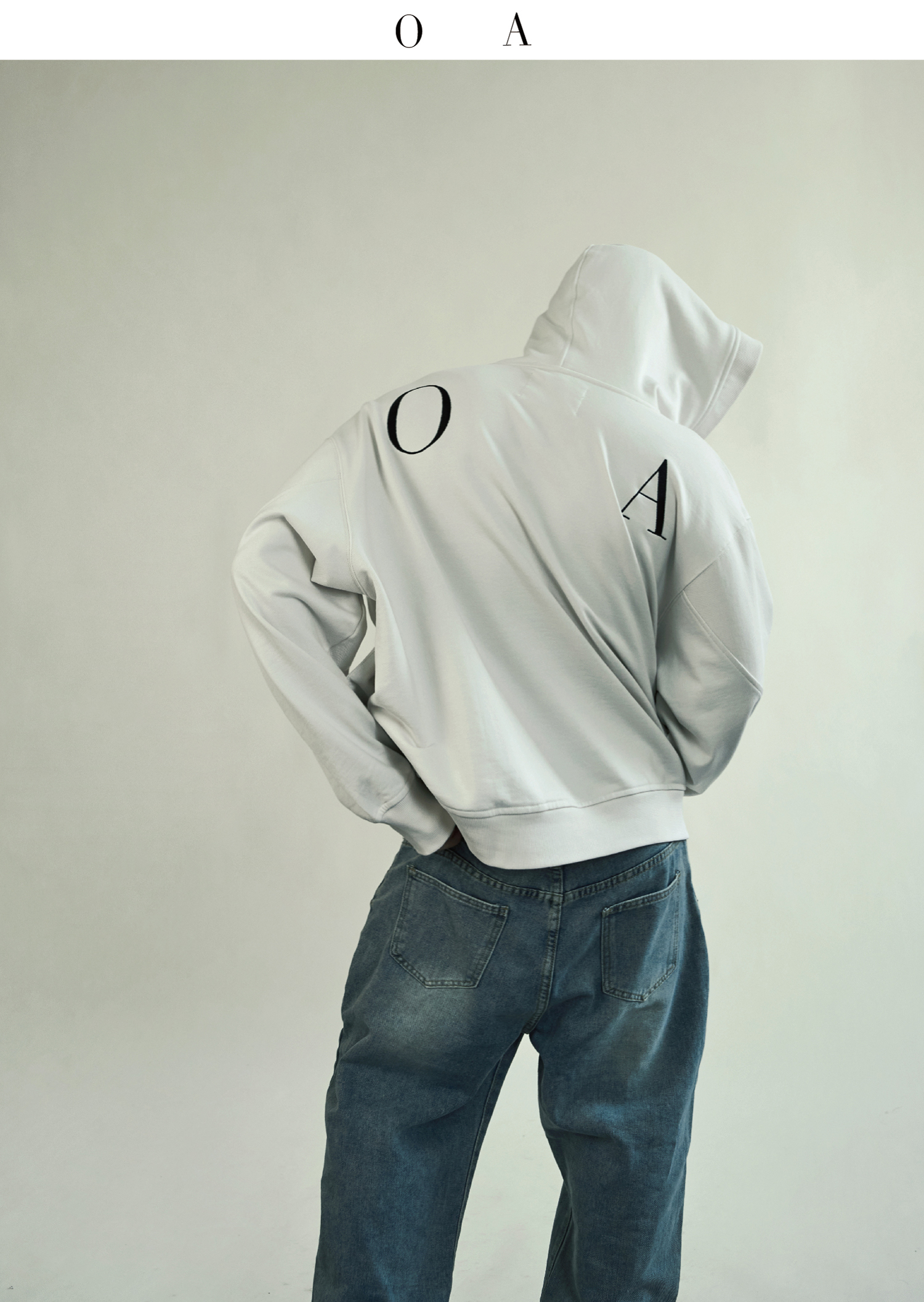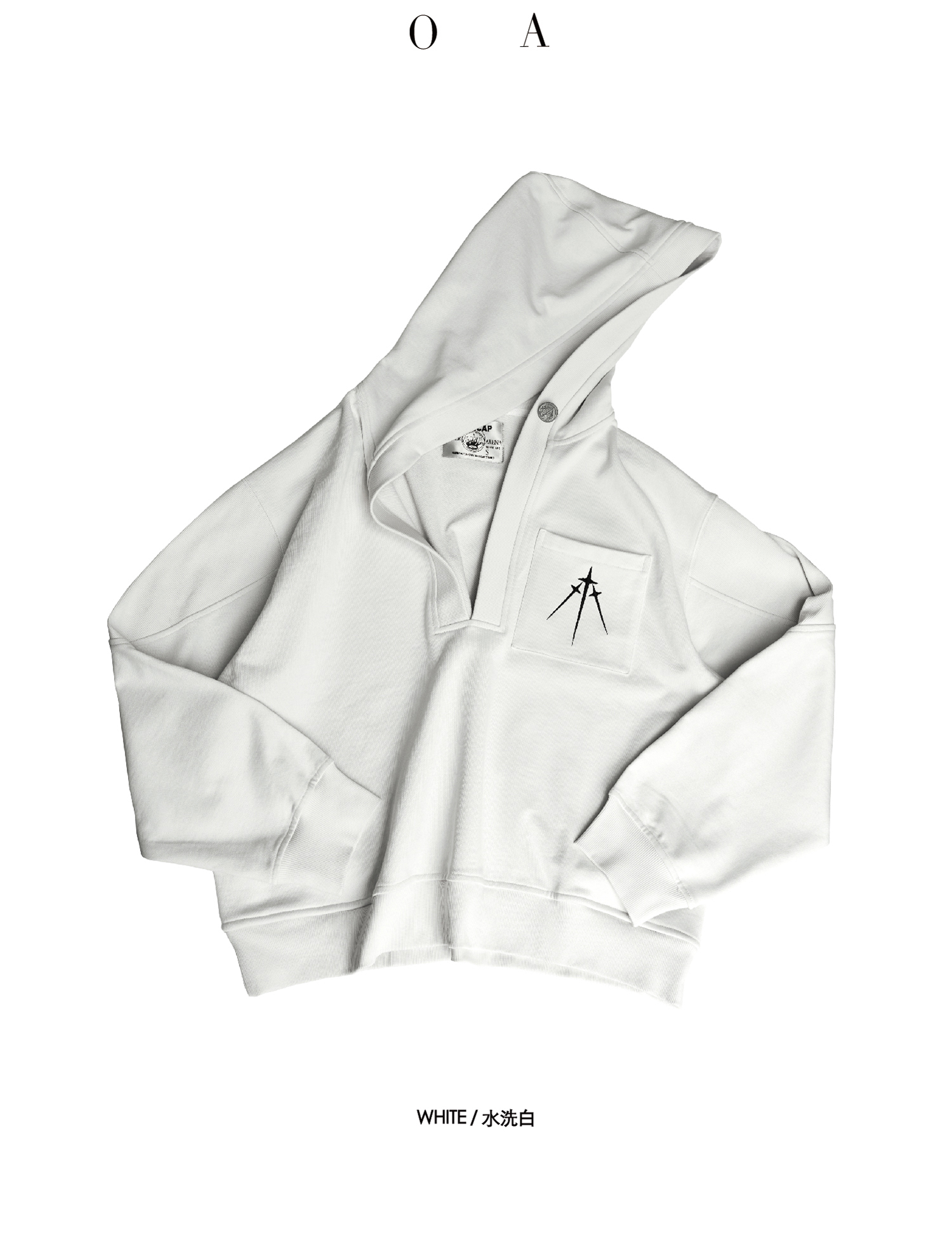 BLUECAP STUDIO 2022AW OA11深領刺繡字母水洗白廓形連帽運動衫外套