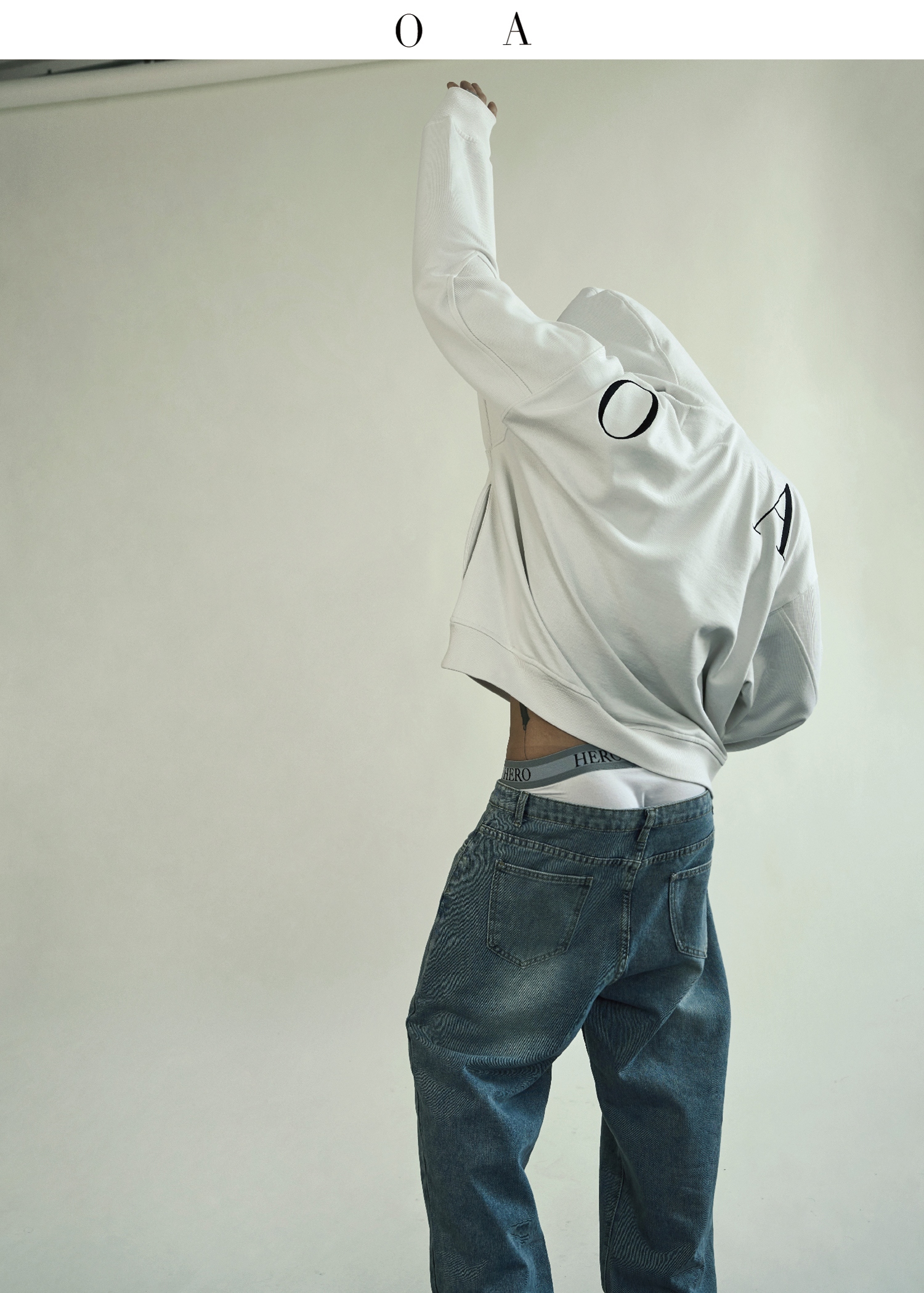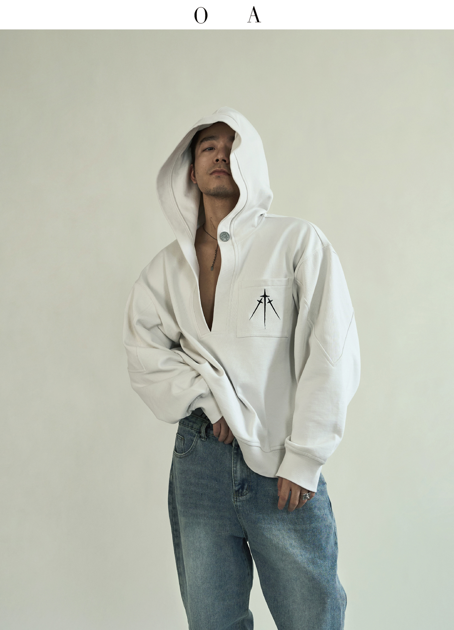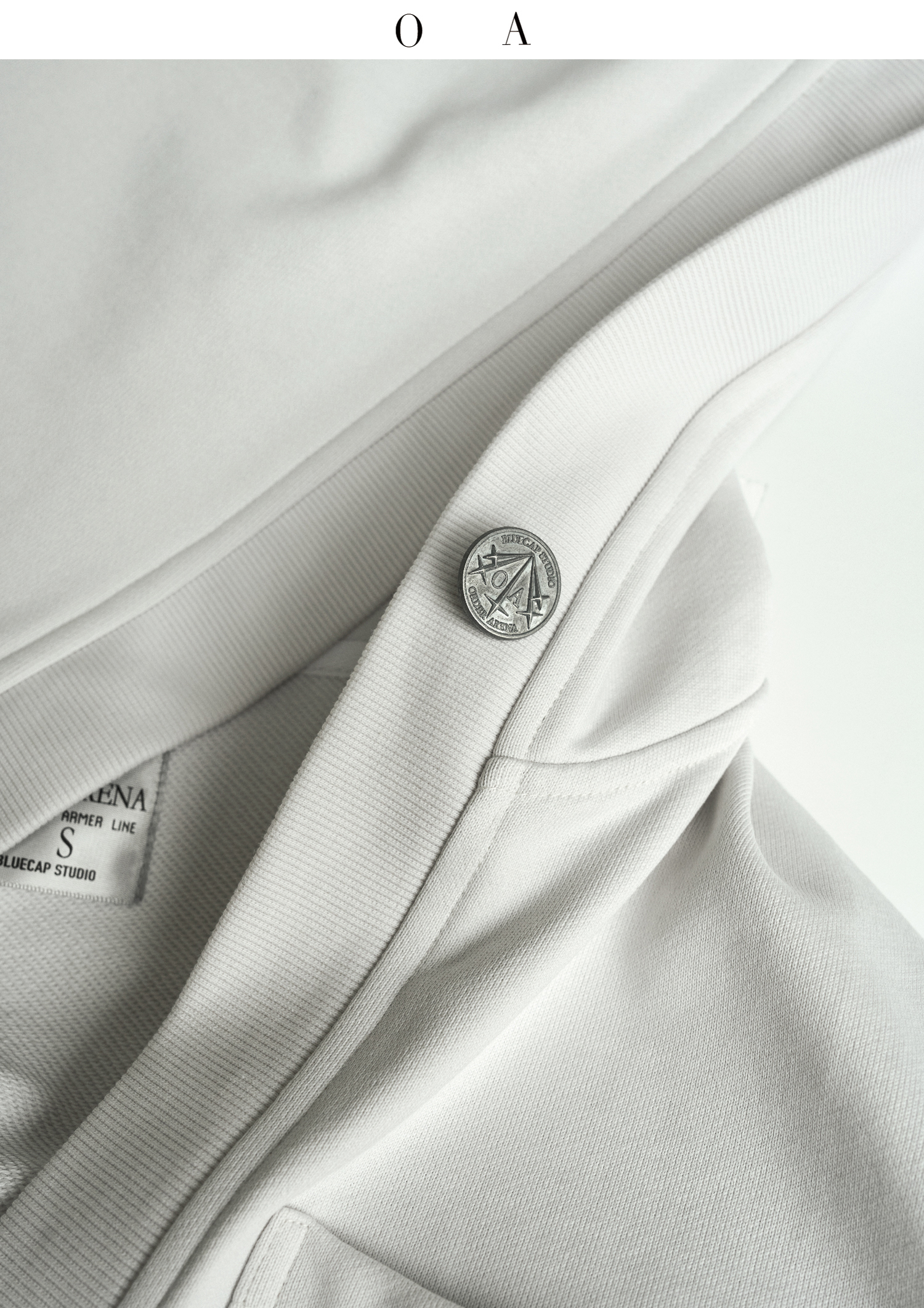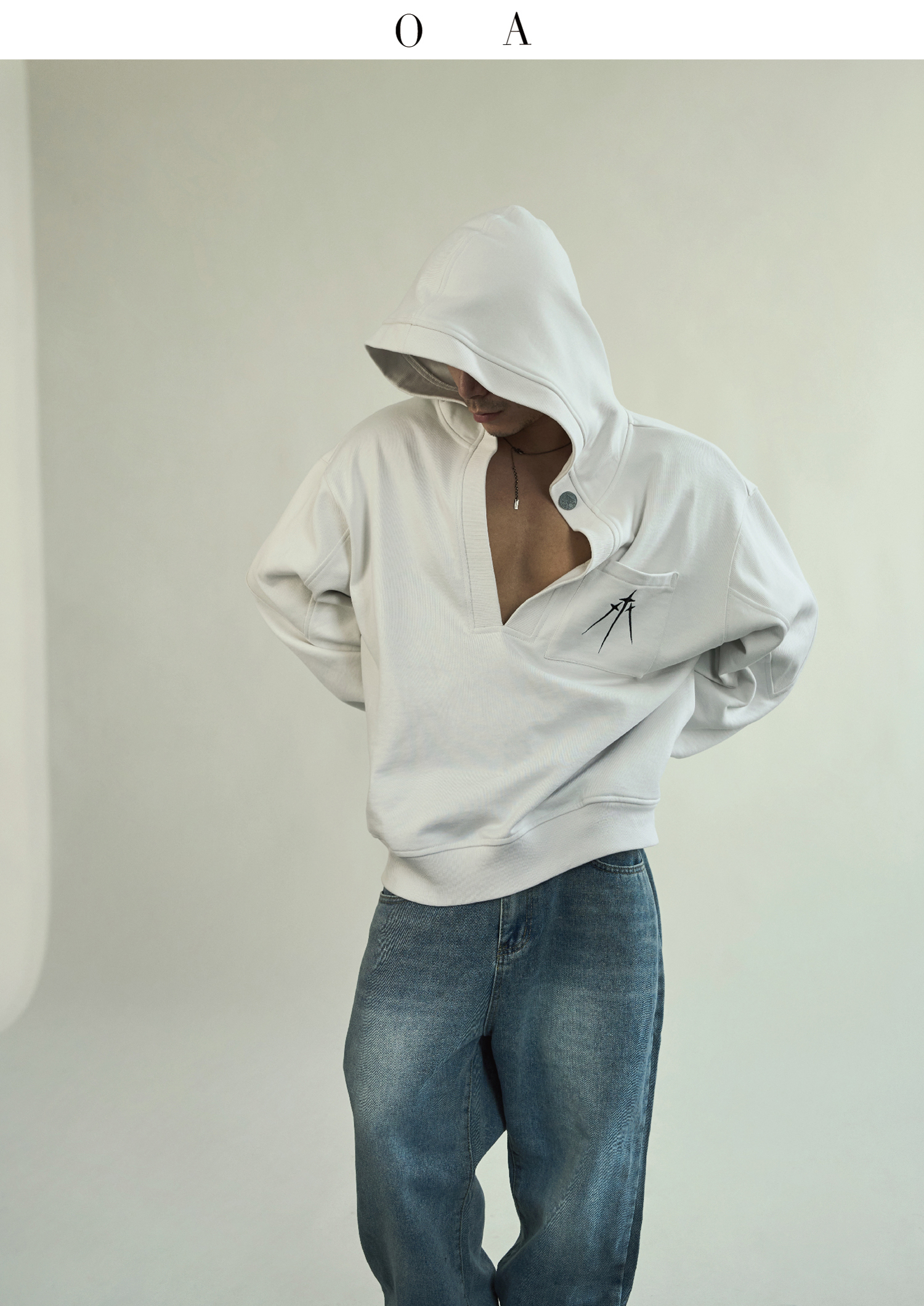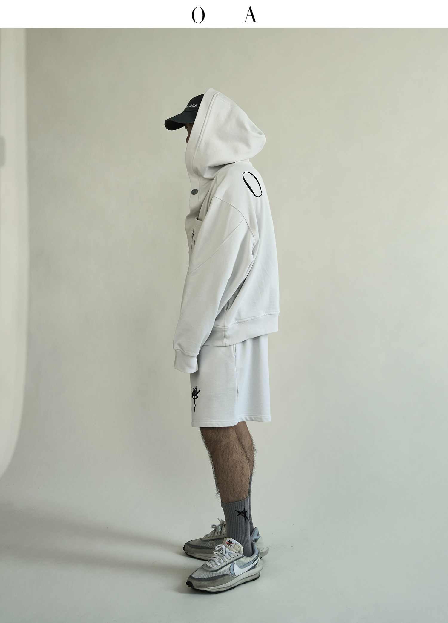 BLUECAP STUDIO 2022AW OA11深領刺繡字母水洗白廓形連帽運動衫外套