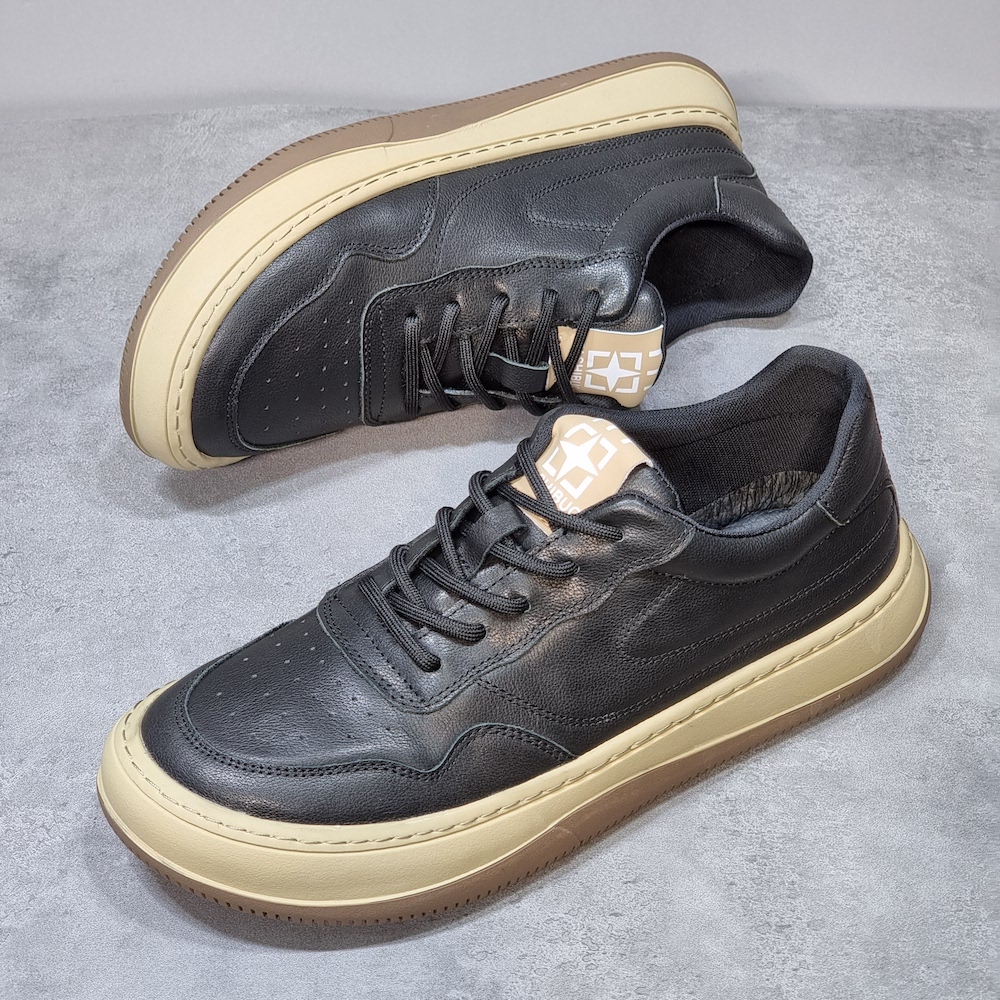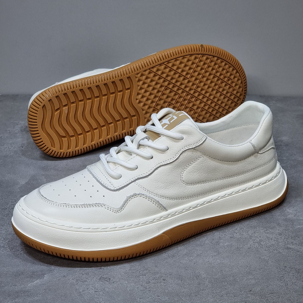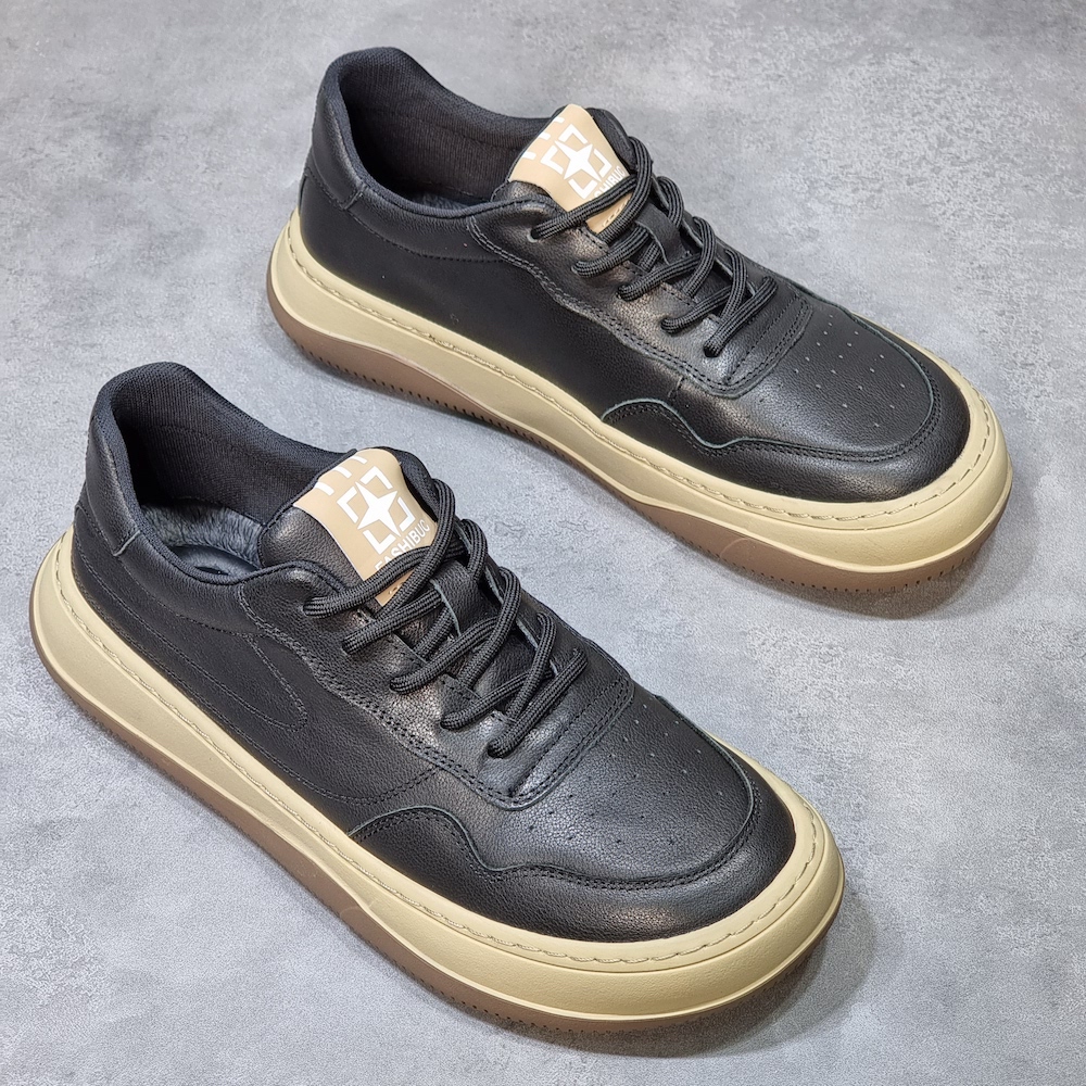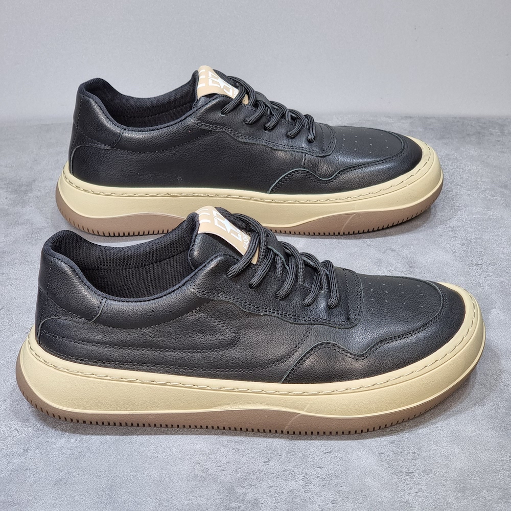 商場撤櫃稀缺牛貨真皮男鞋品牌剪標特價黑色厚底防滑透氣休閒板鞋