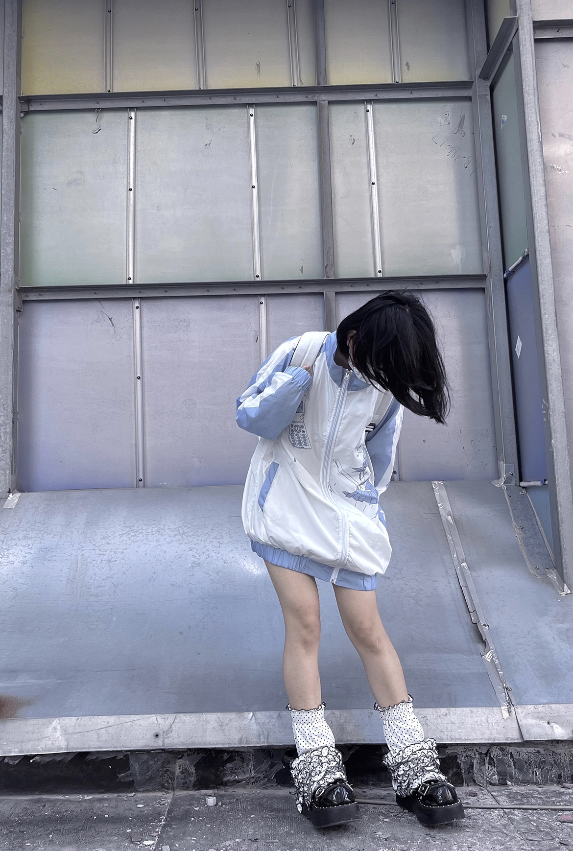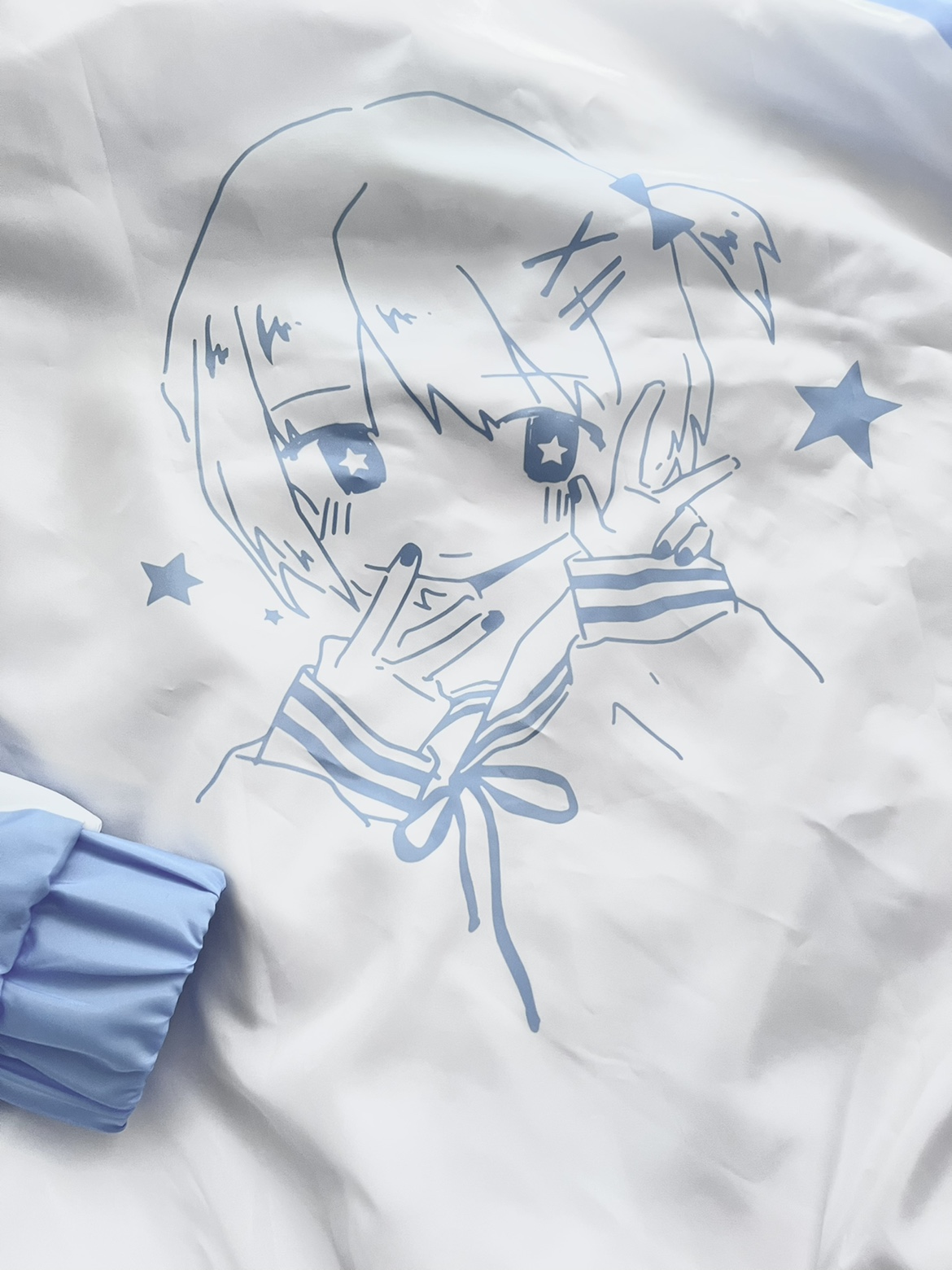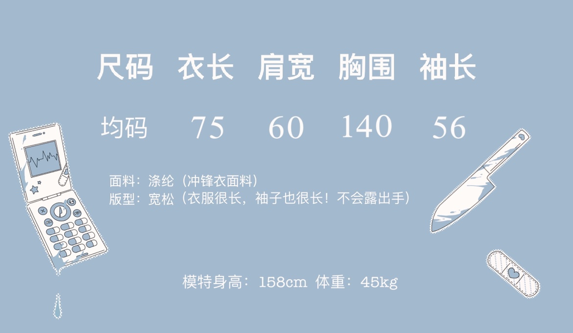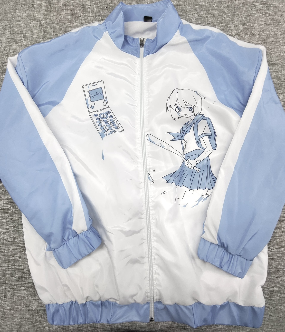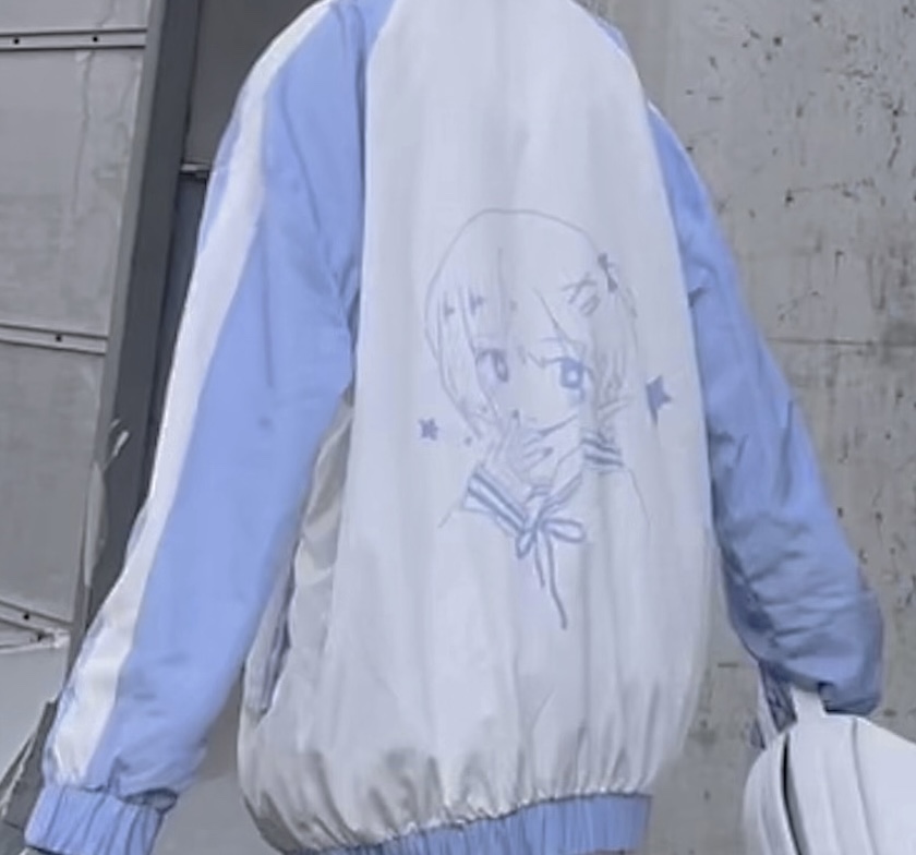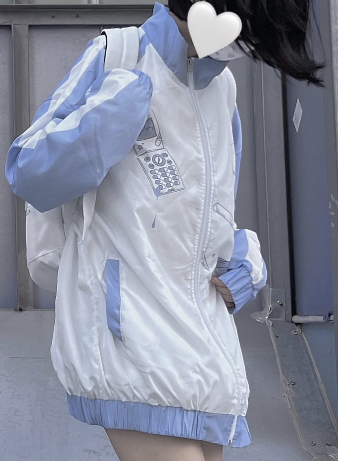 【菌落溶解】水藍色的日常原創藍白寬鬆印花運動服外套
