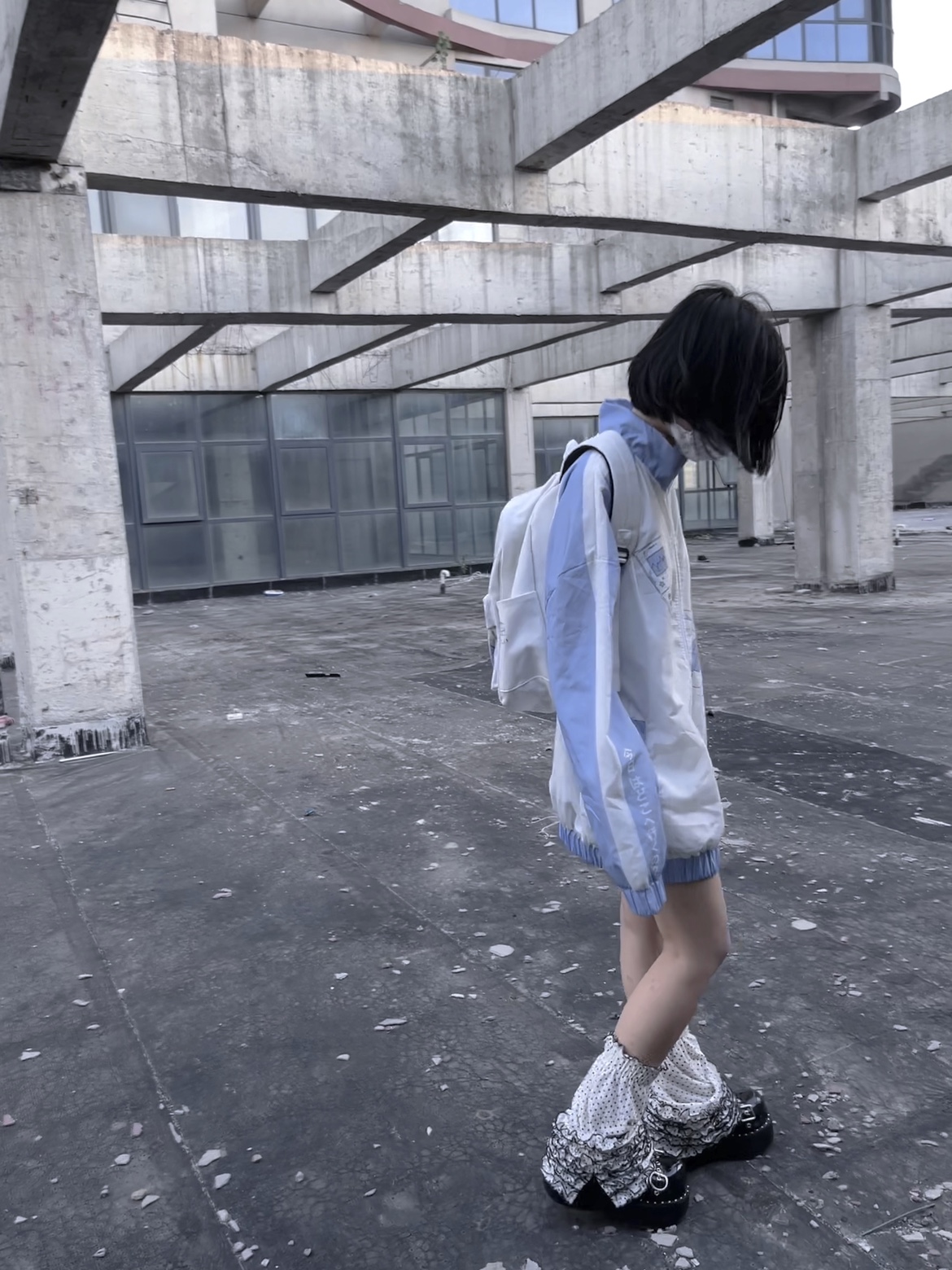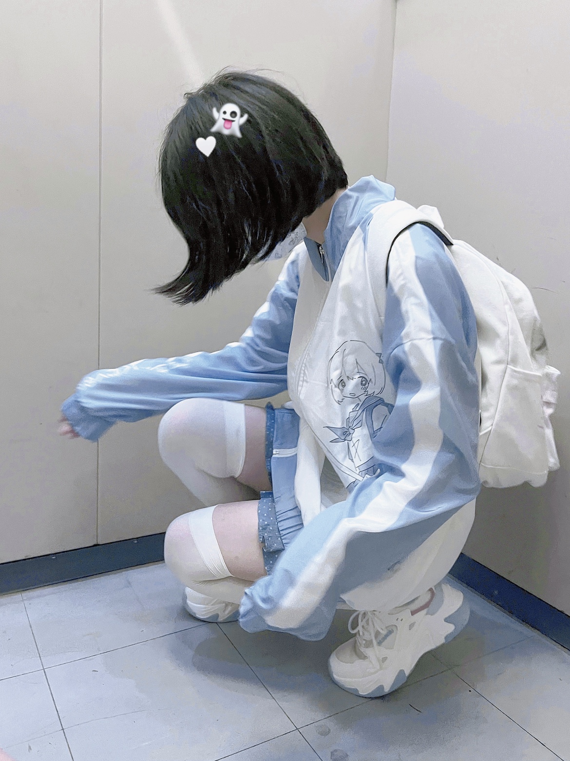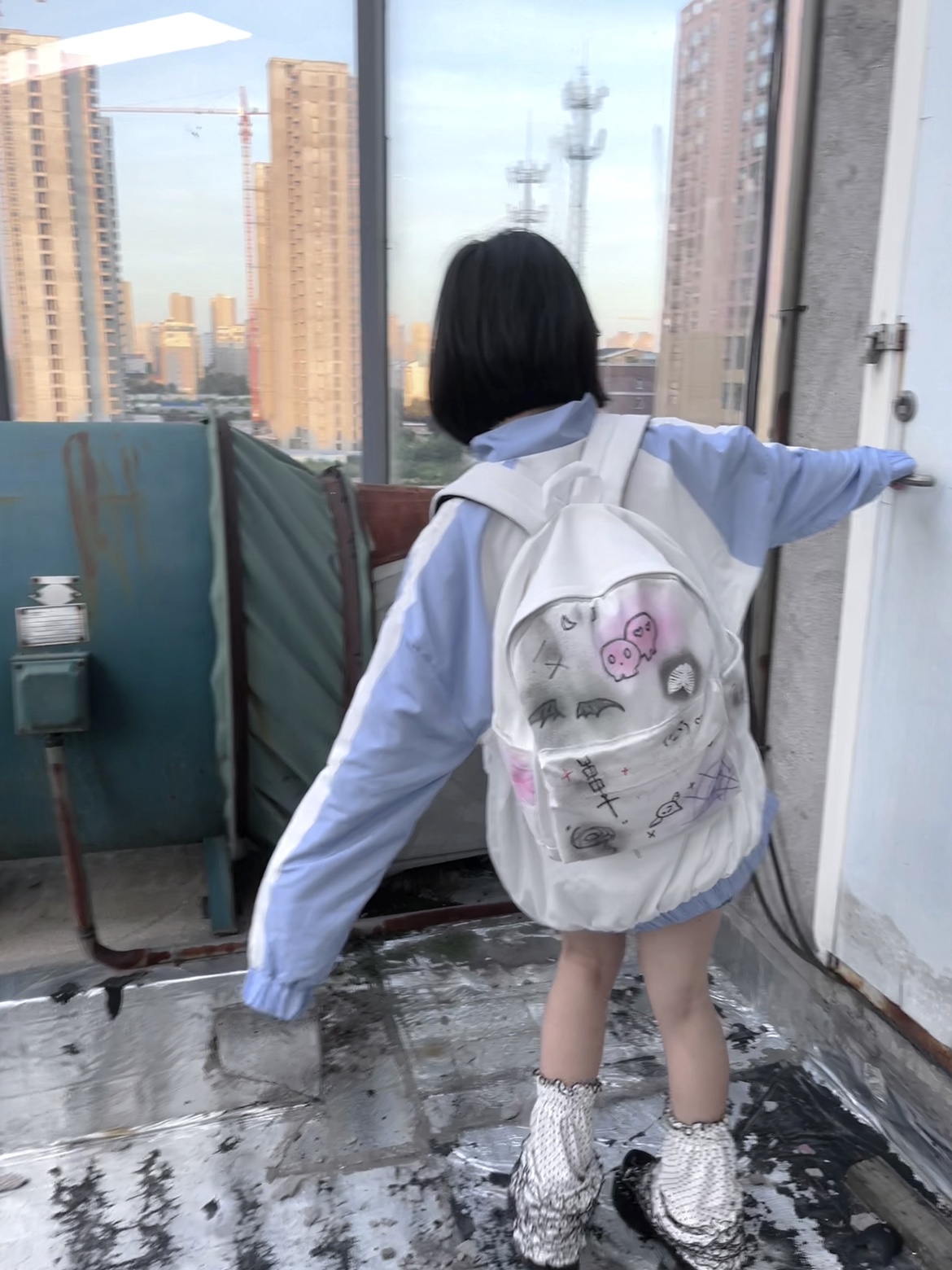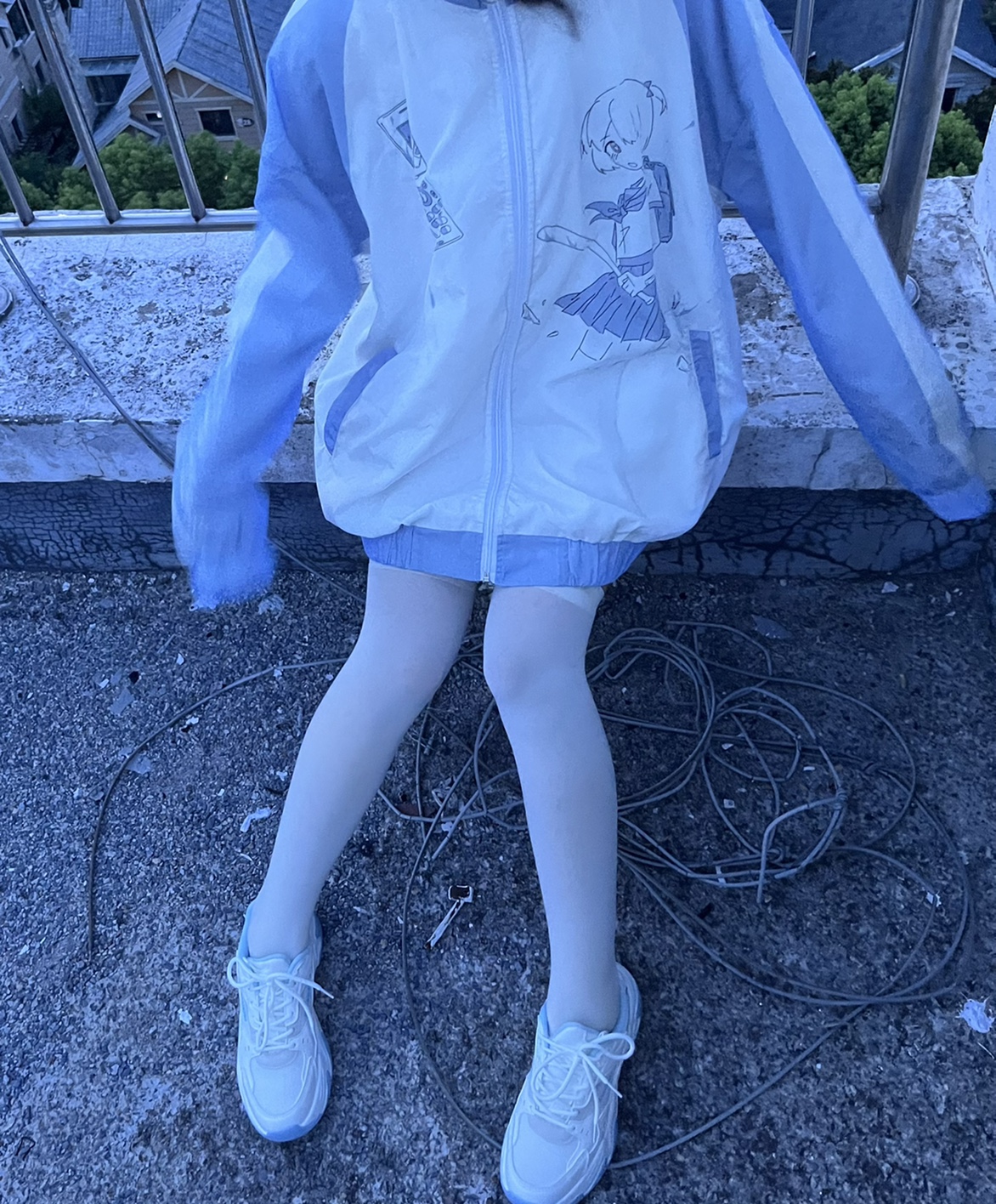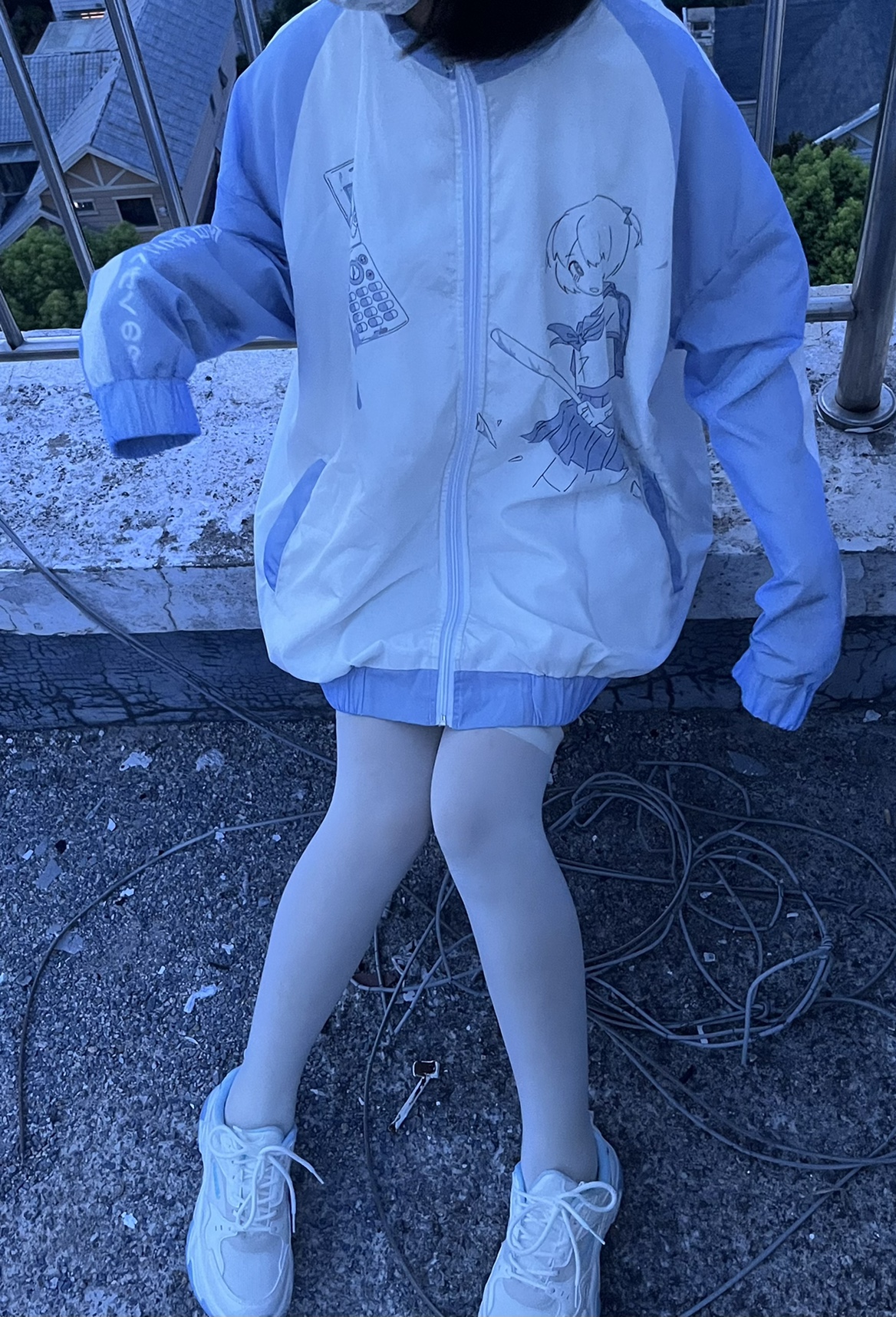 【菌落溶解】水藍色的日常原創藍白寬鬆印花運動服外套