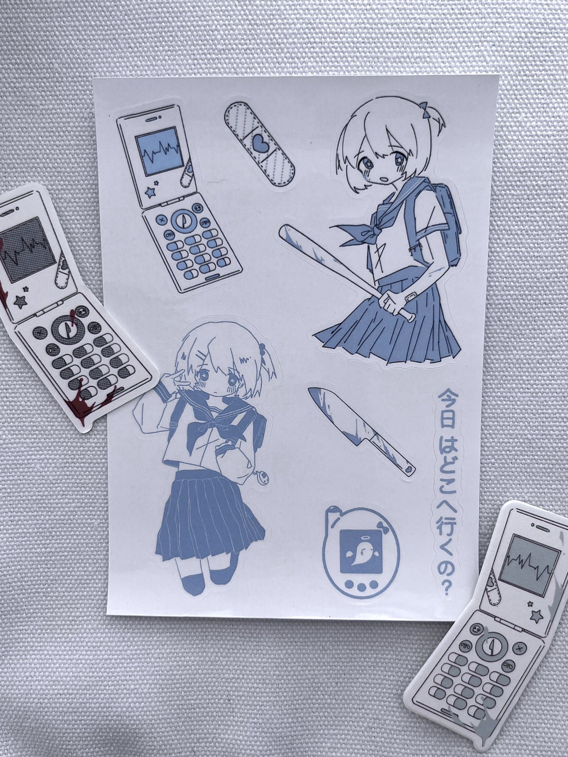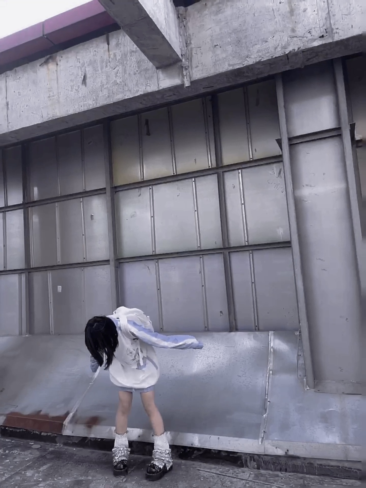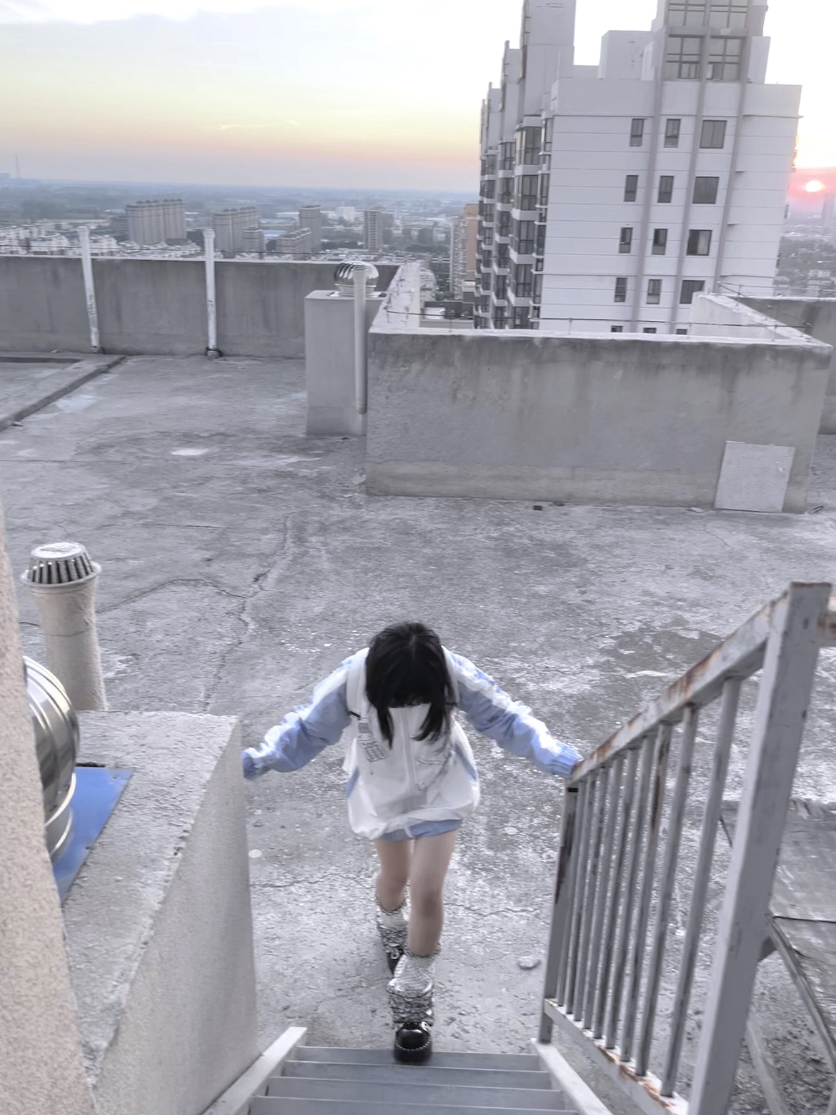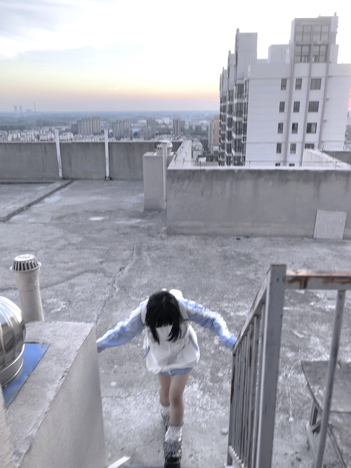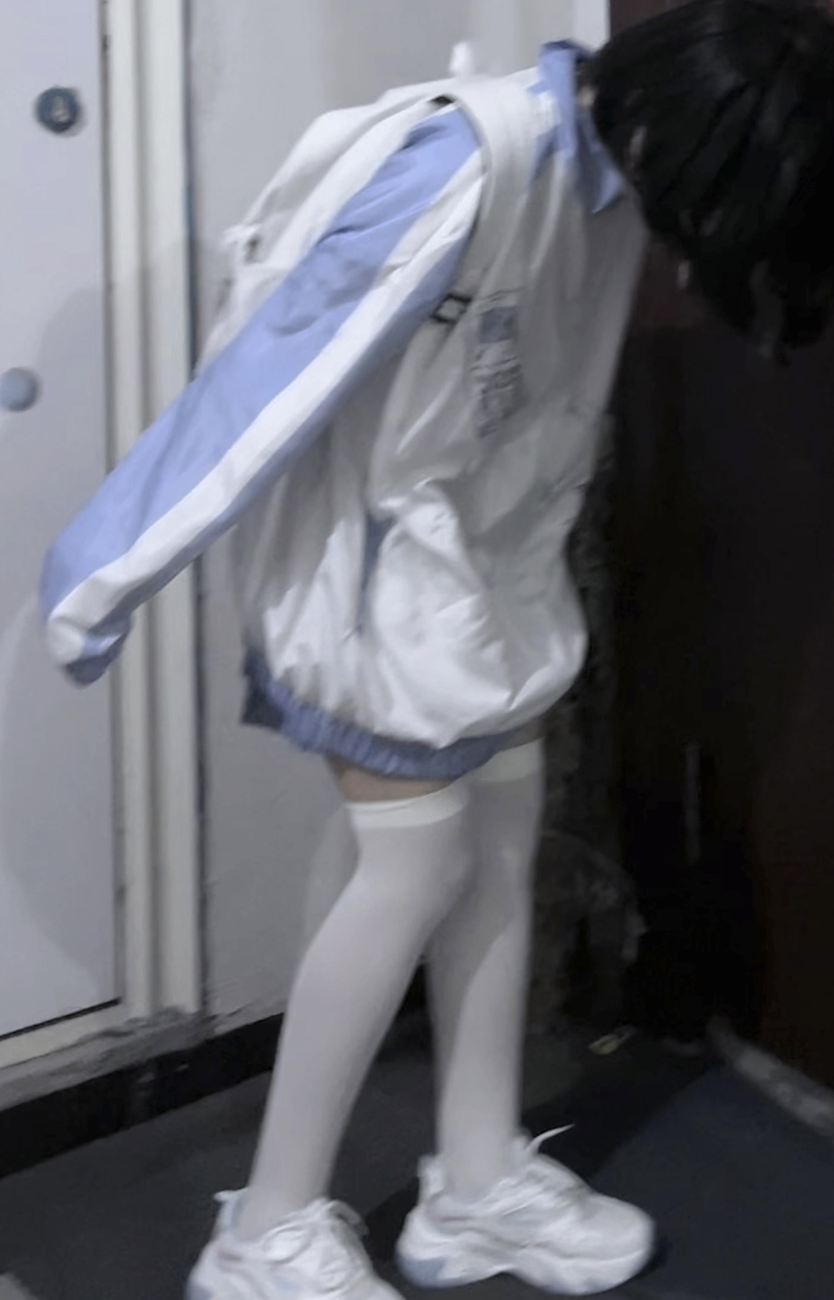 【菌落溶解】水藍色的日常原創藍白寬鬆印花運動服外套