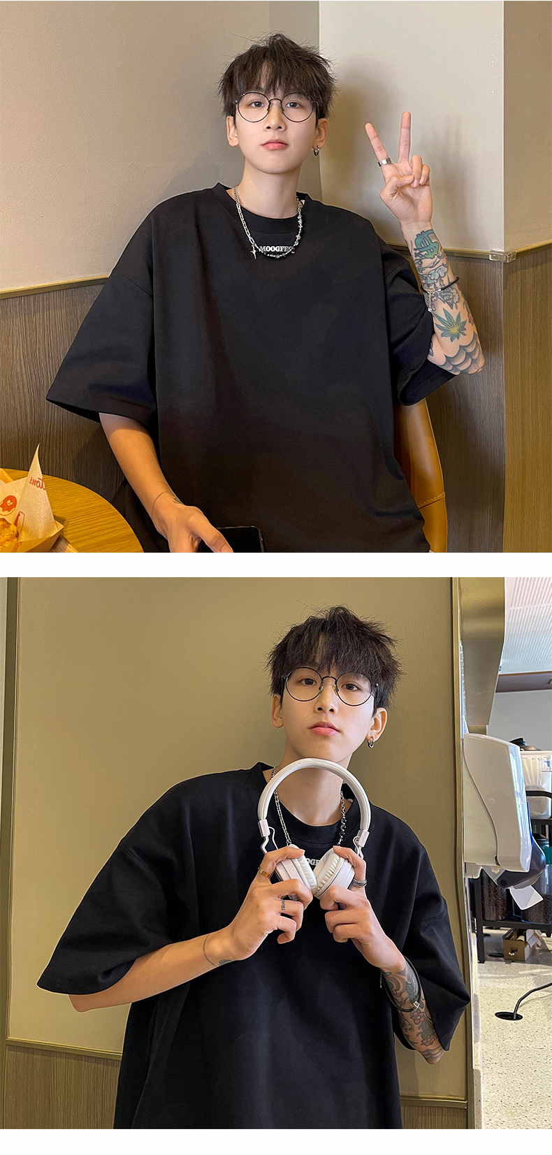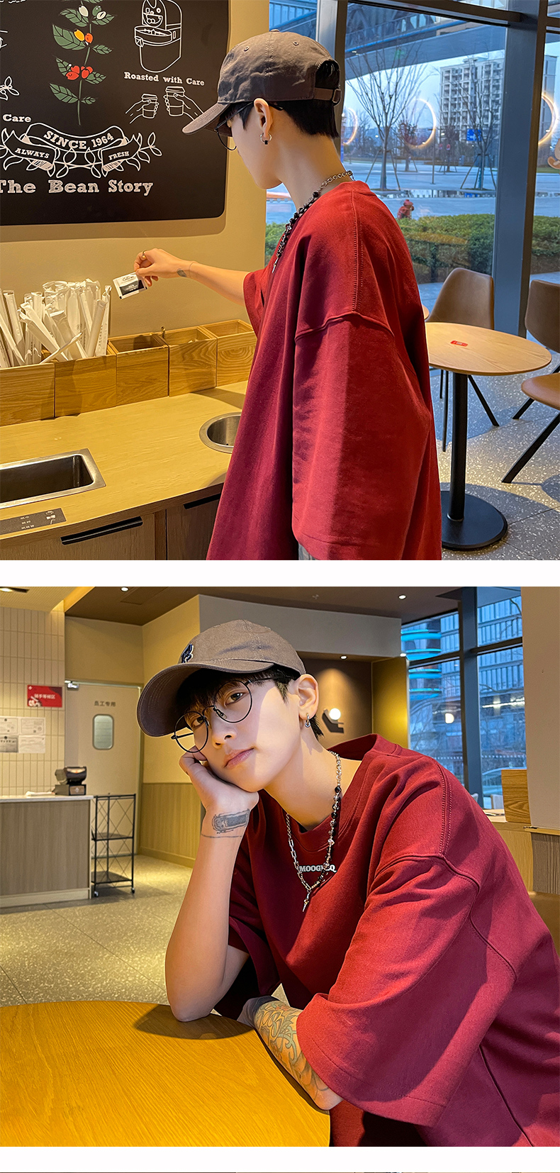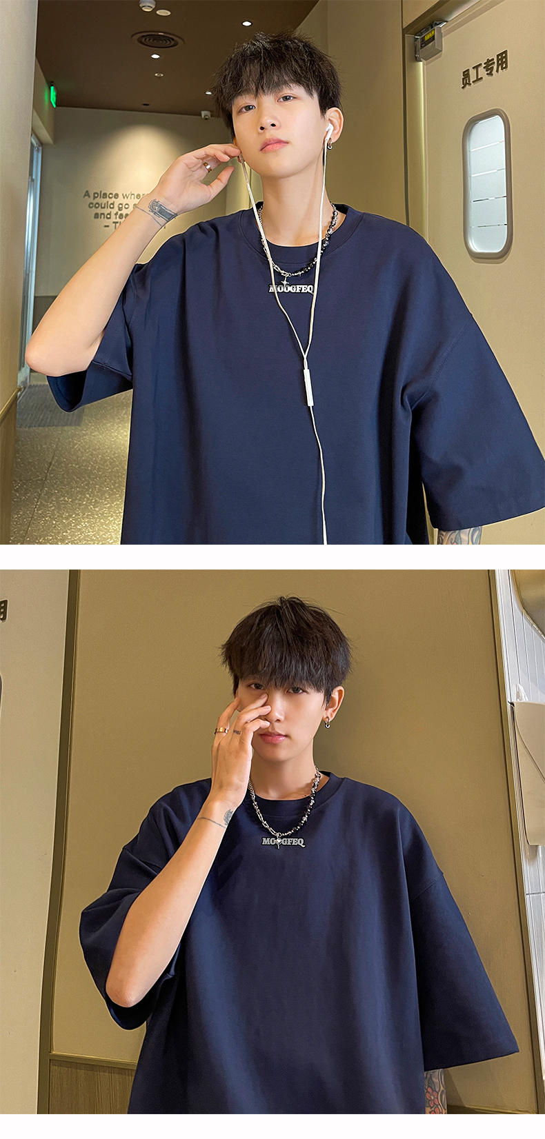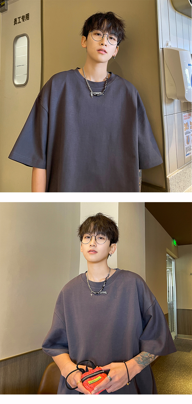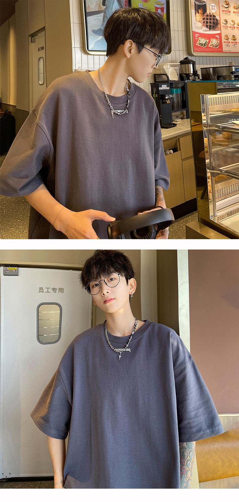 墨綠色300克純棉重磅高克重T恤男美式復古oversize短袖情侶七分袖
