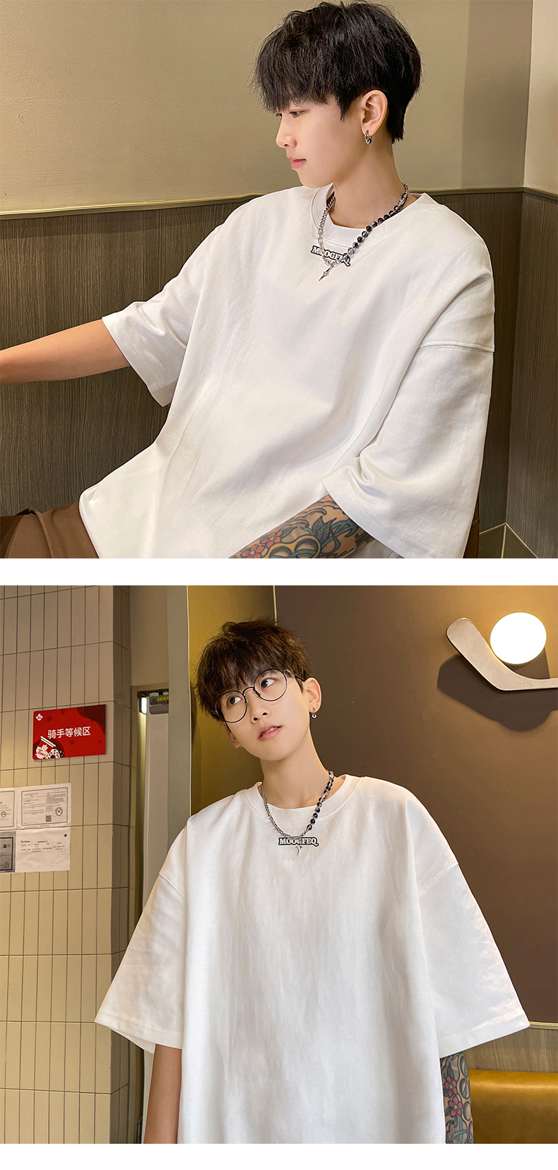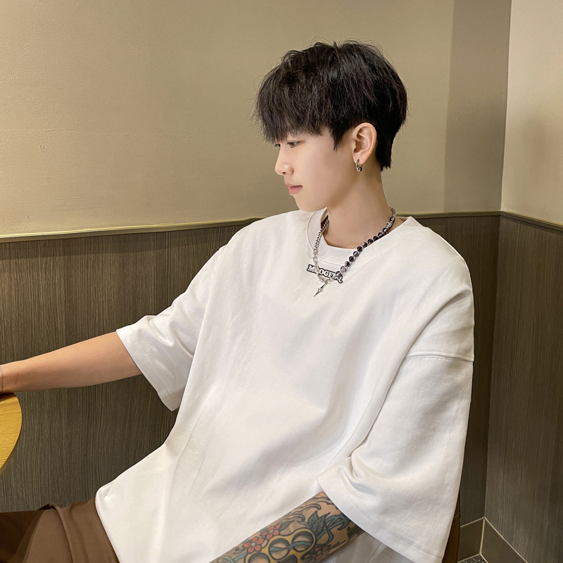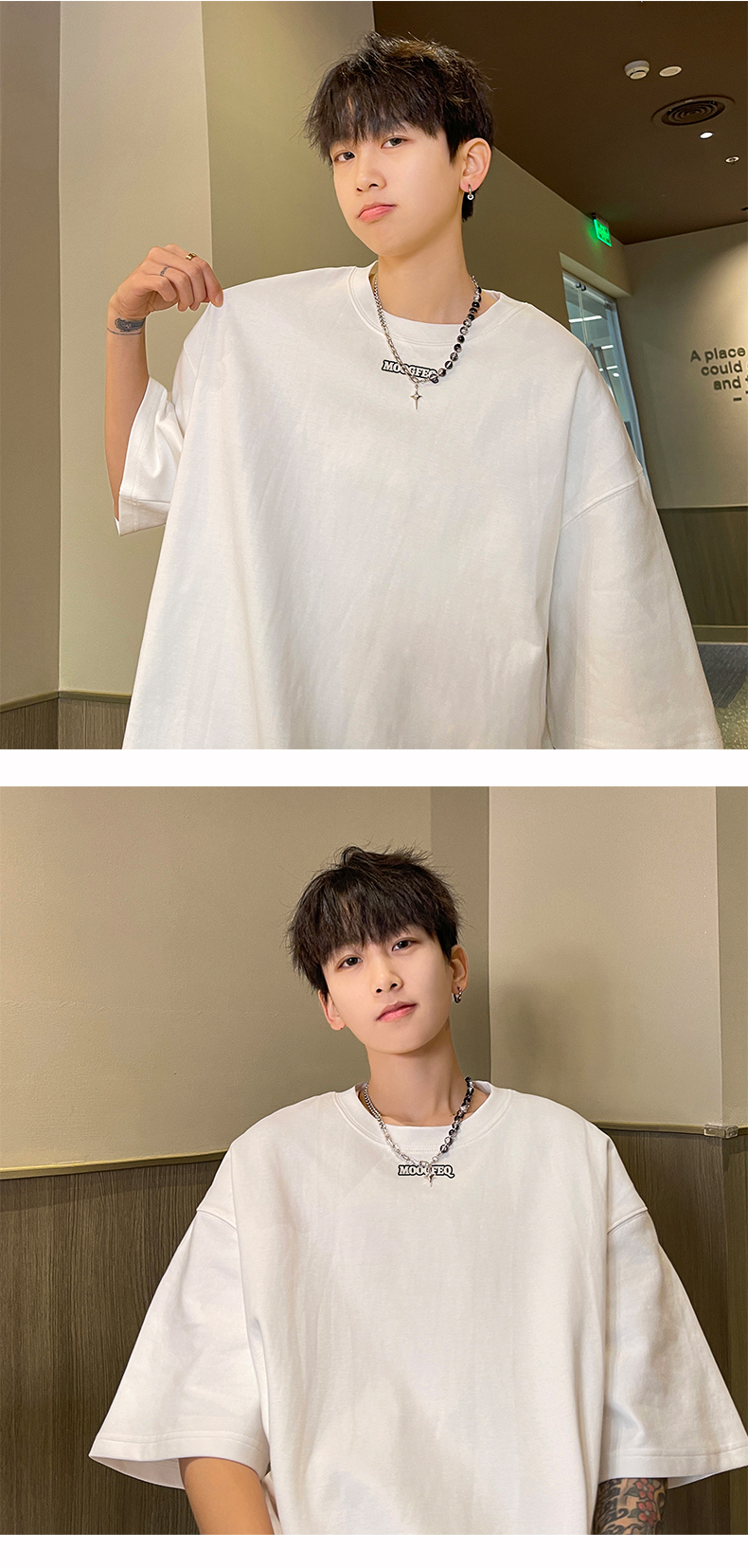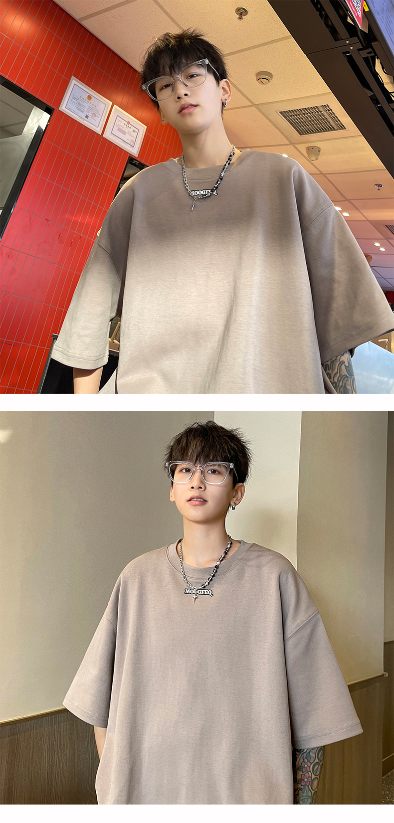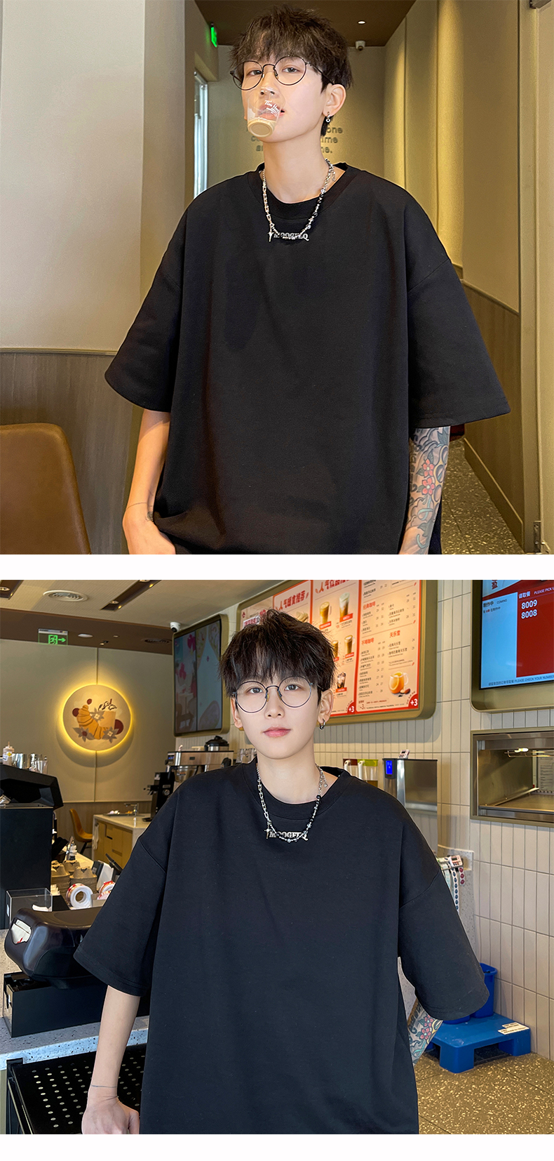 墨綠色300克純棉重磅高克重T恤男美式復古oversize短袖情侶七分袖