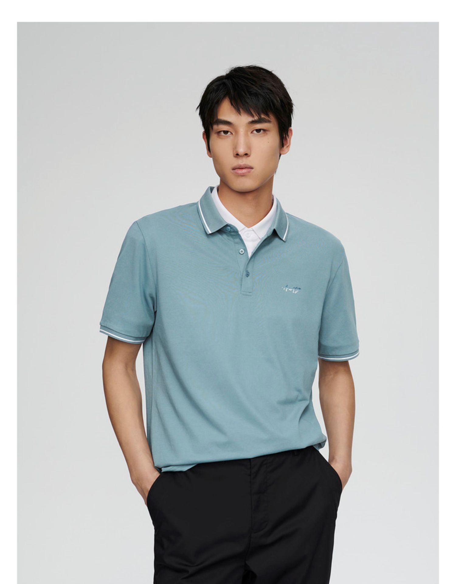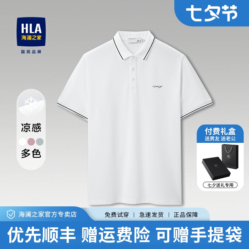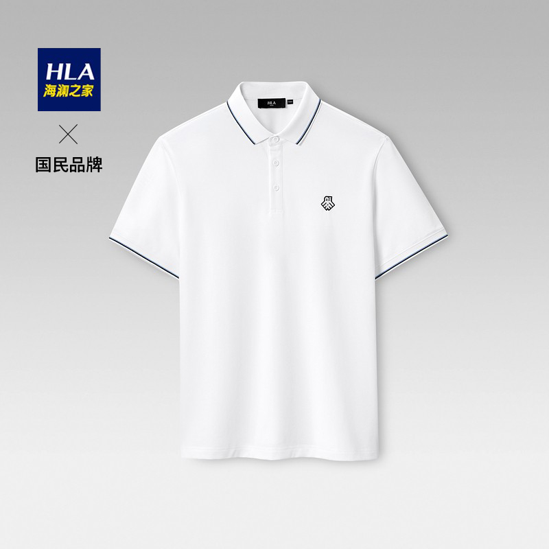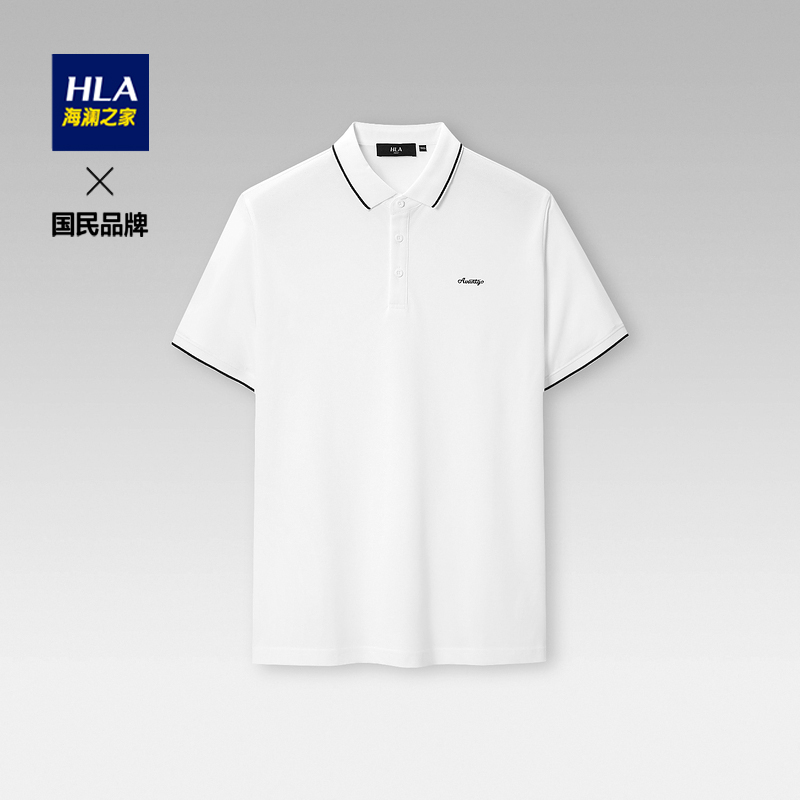 HLA/海瀾之家撞色領邊短袖POLO衫2023夏裝新款商務簡約T恤男翻領