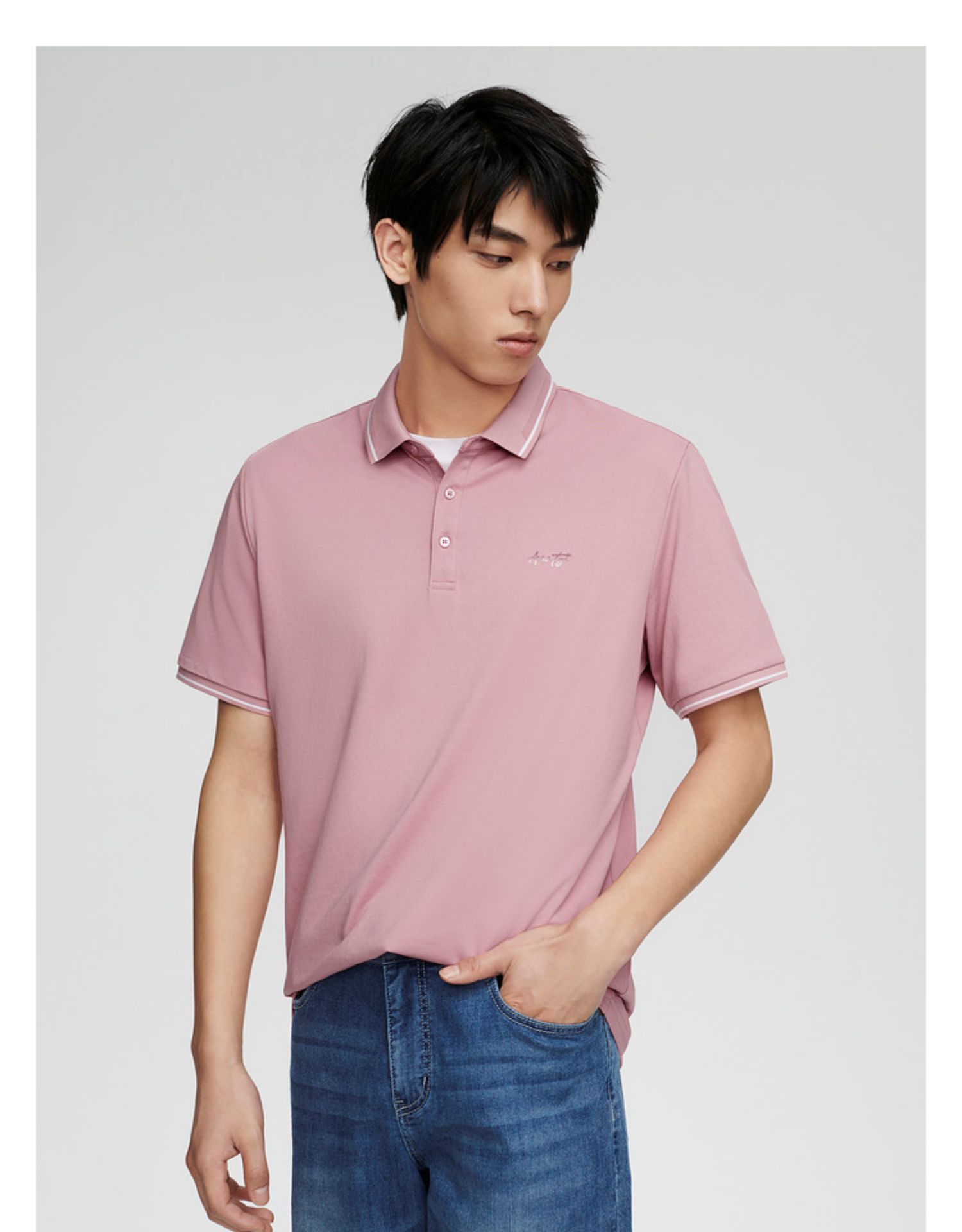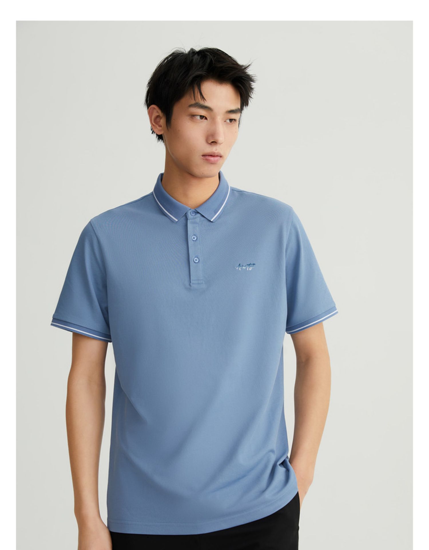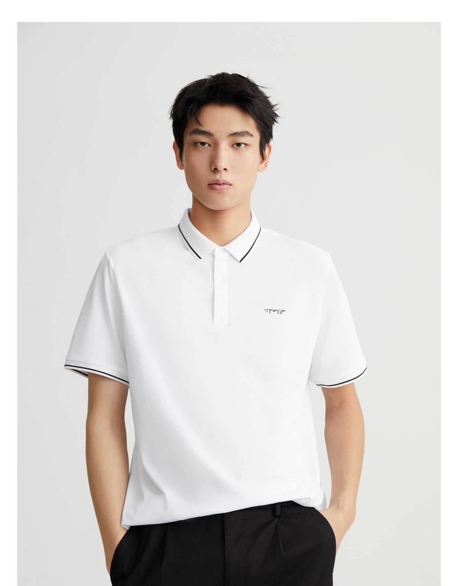 HLA/海瀾之家撞色領邊短袖POLO衫2023夏裝新款商務簡約T恤男翻領
