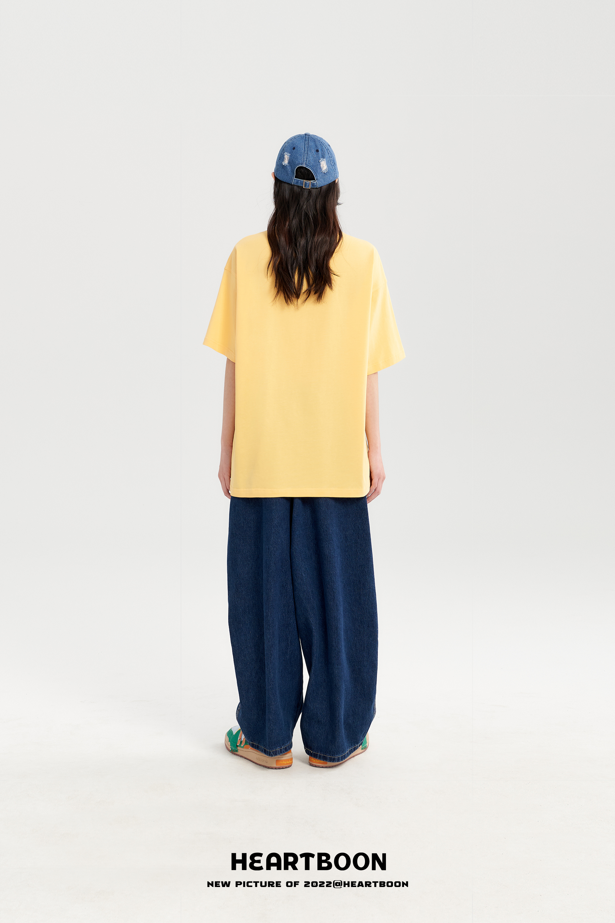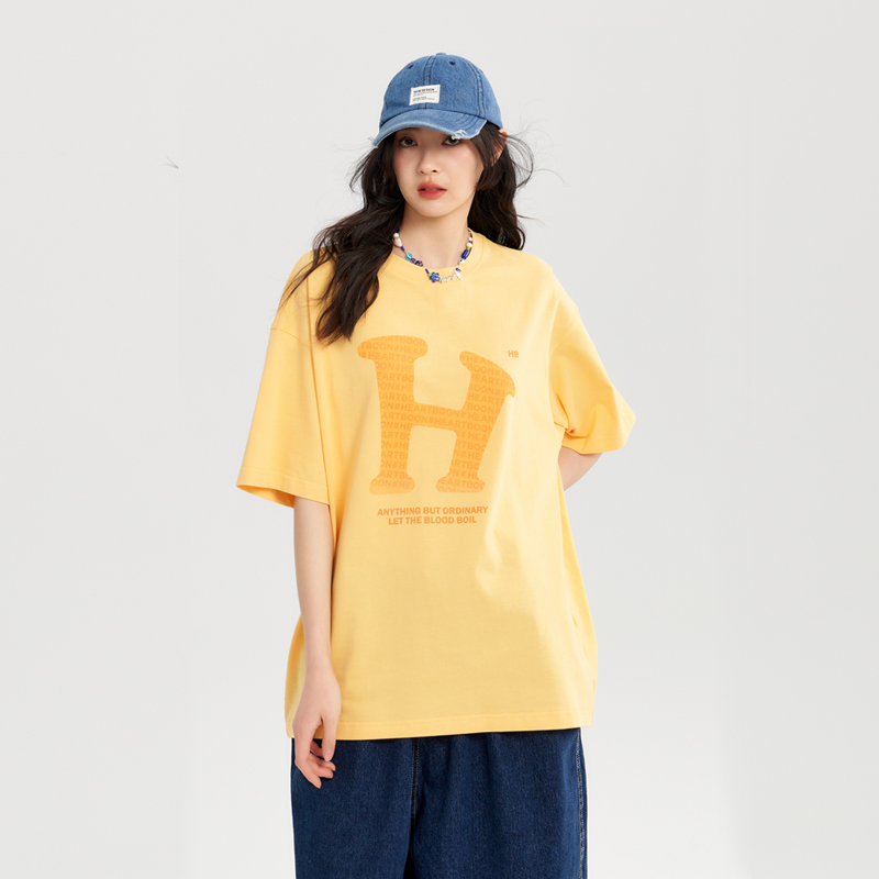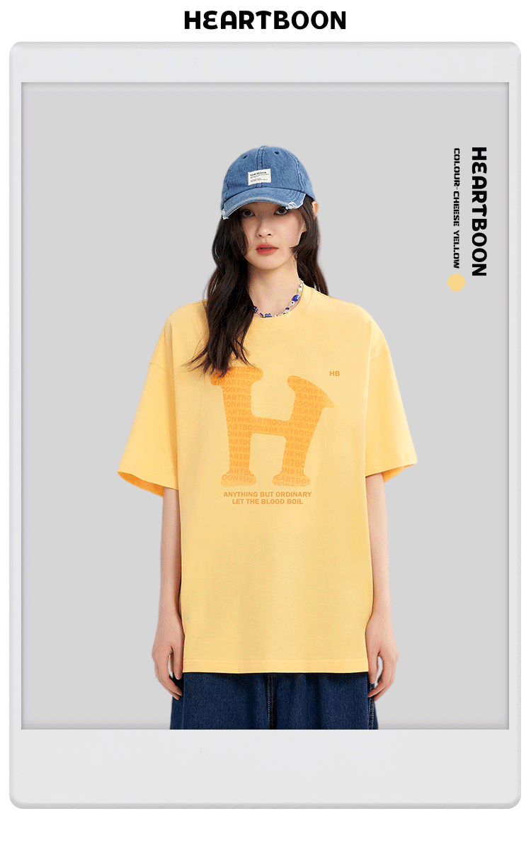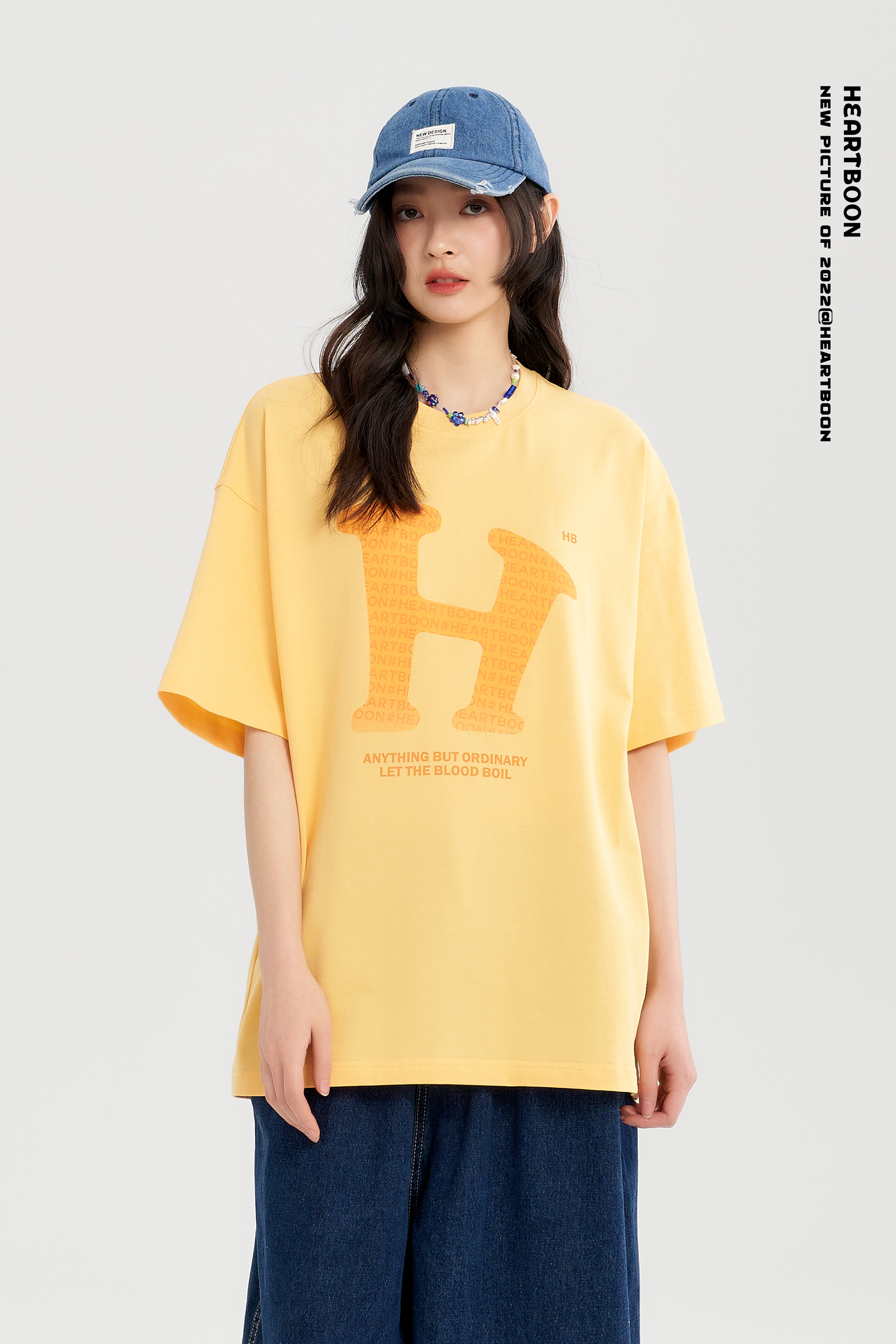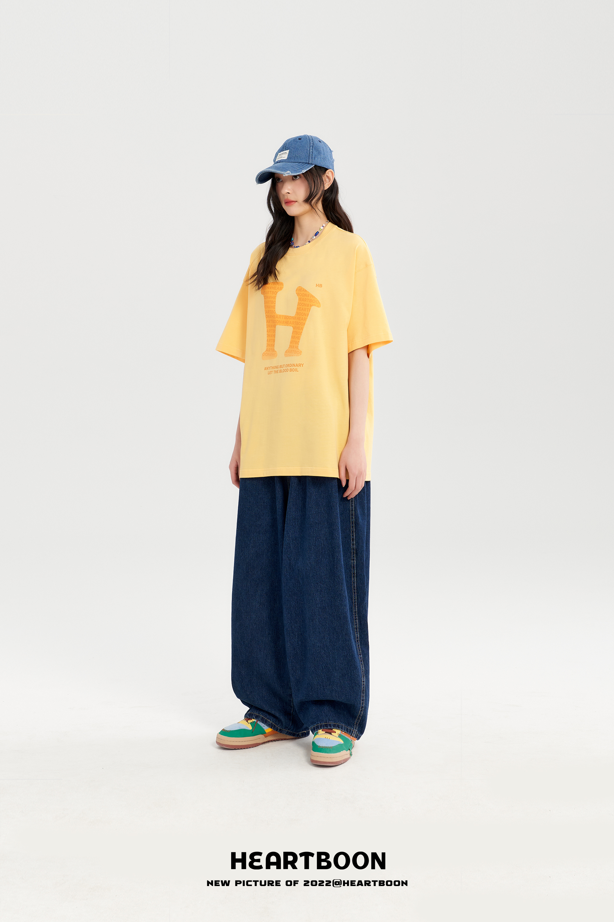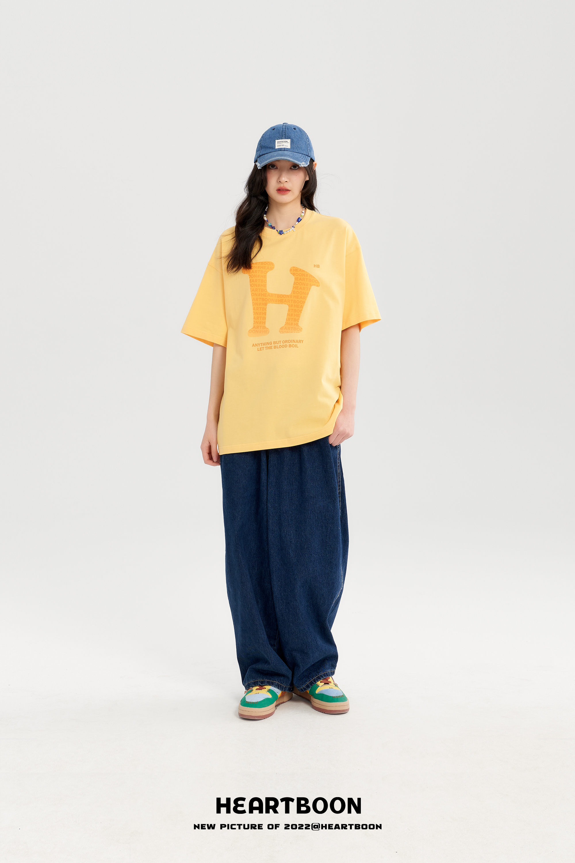 HeartBoon夏季潮流漸層色字母logo印花重磅黃色短袖休閒情侶T恤