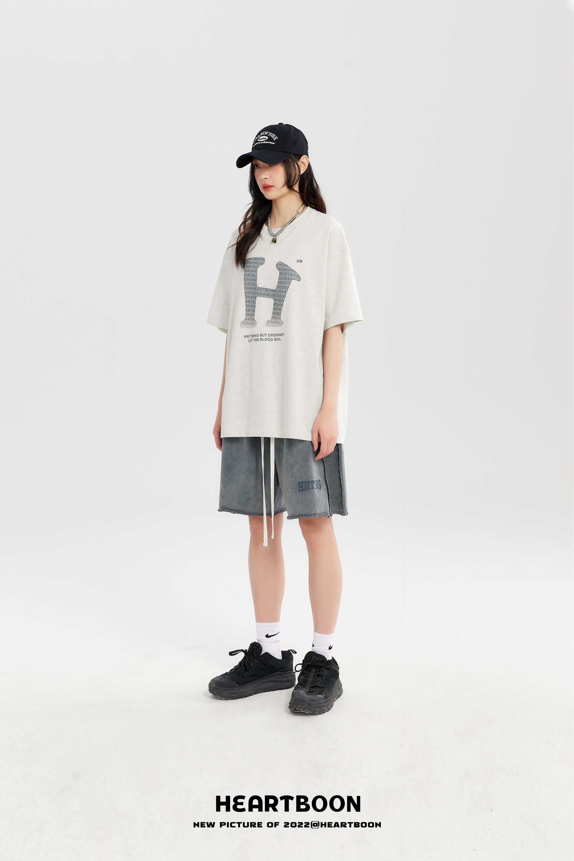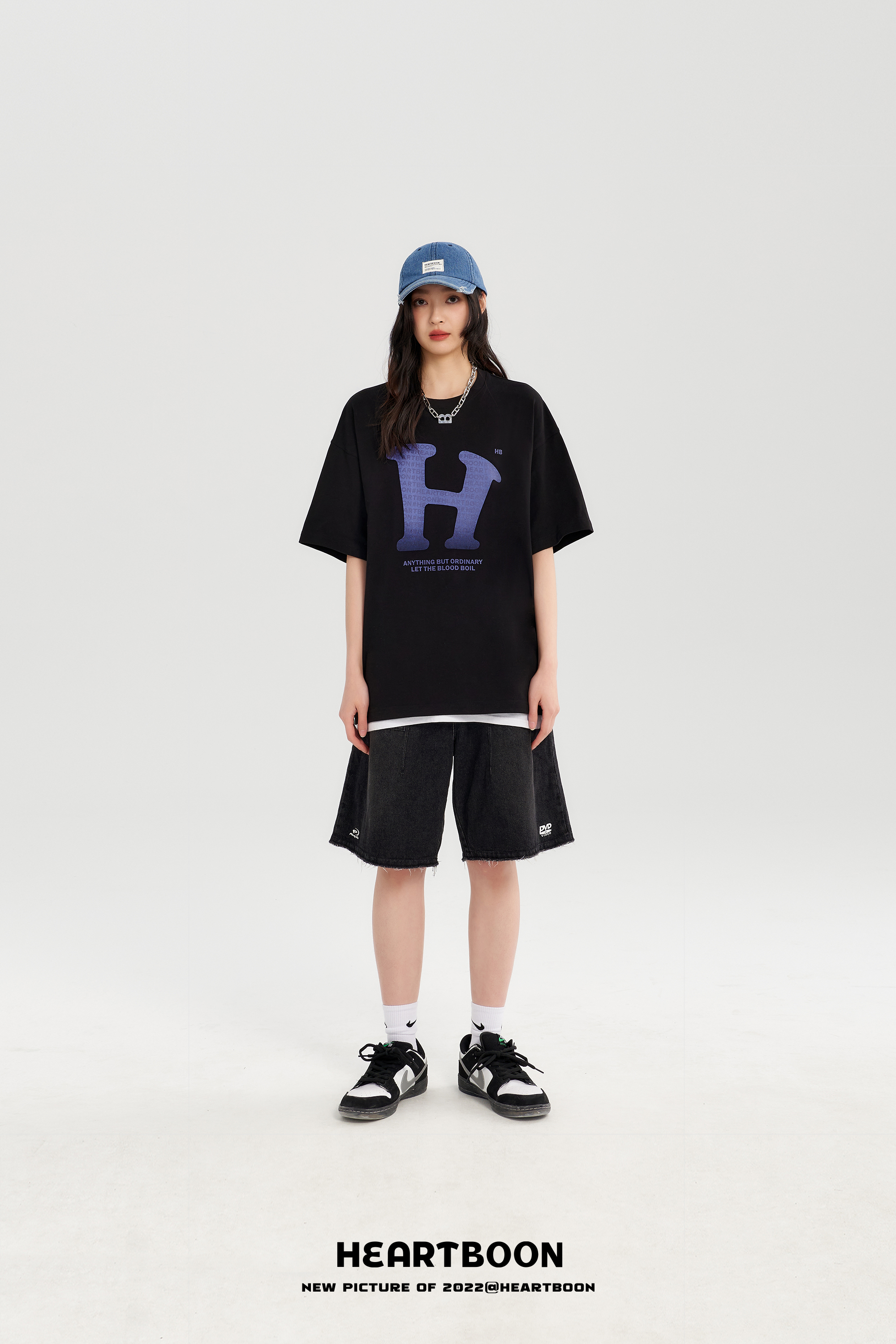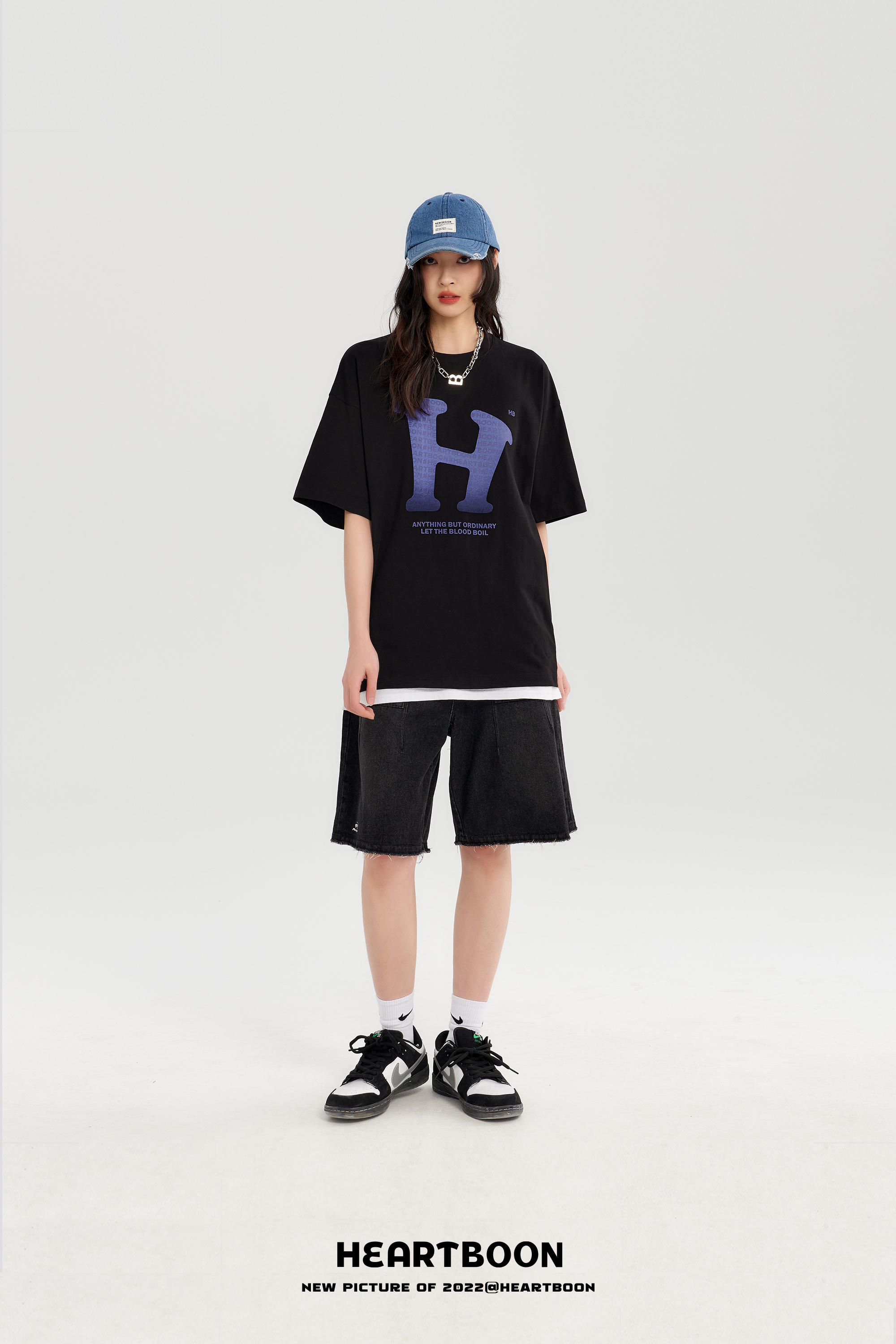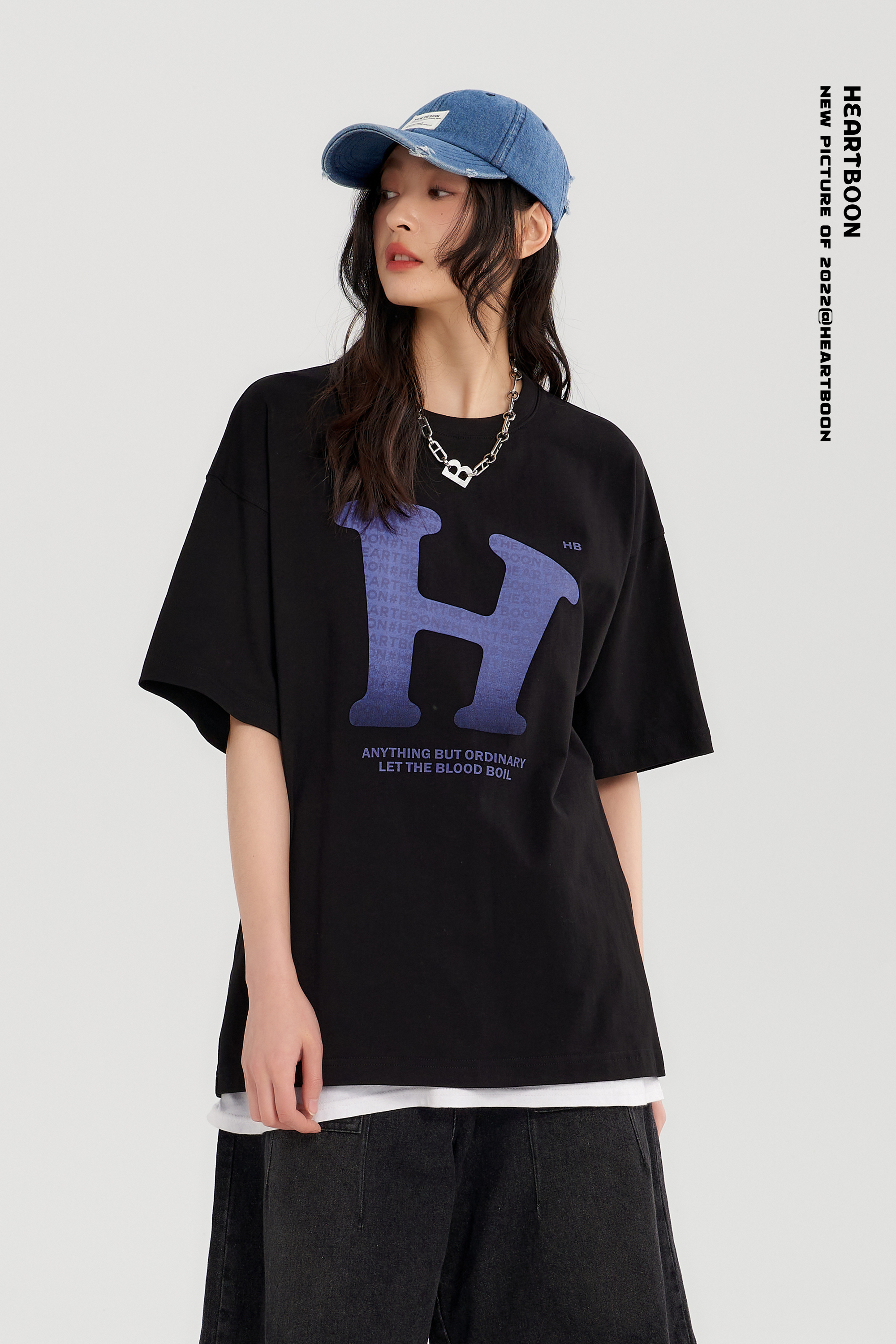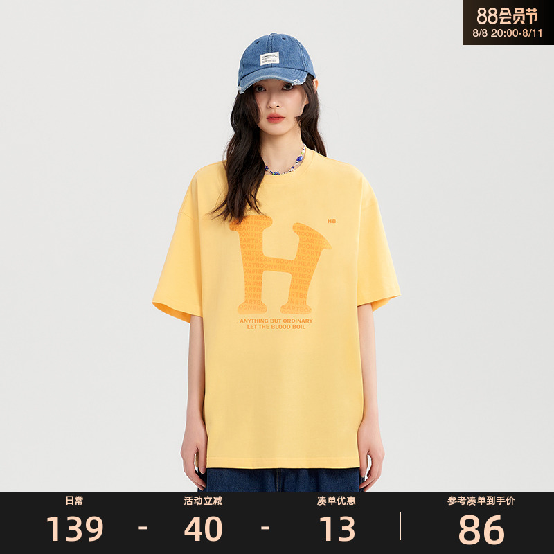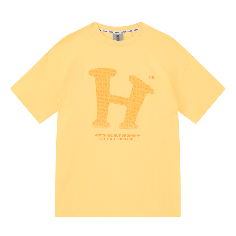 HeartBoon夏季潮流漸層色字母logo印花重磅黃色短袖休閒情侶T恤