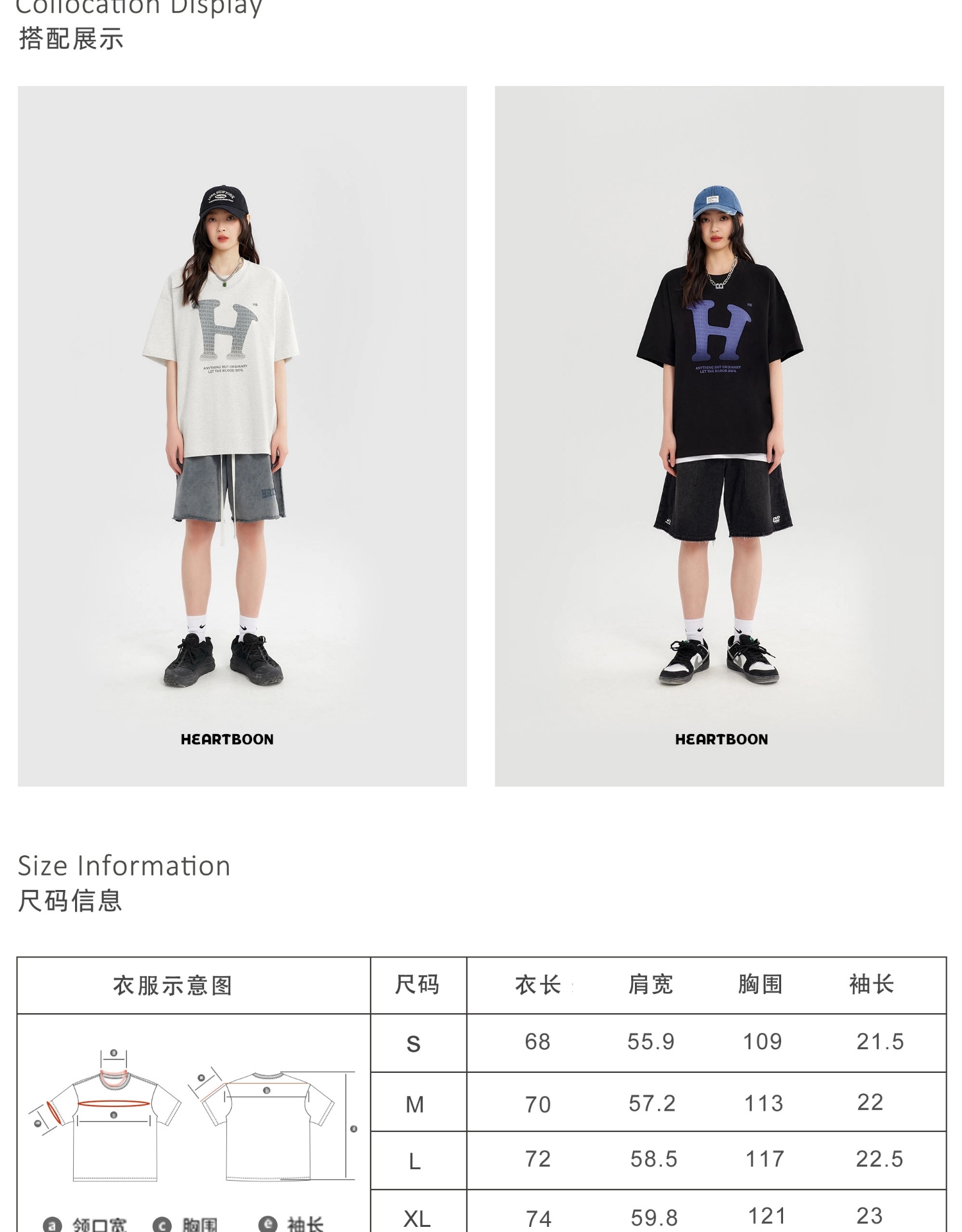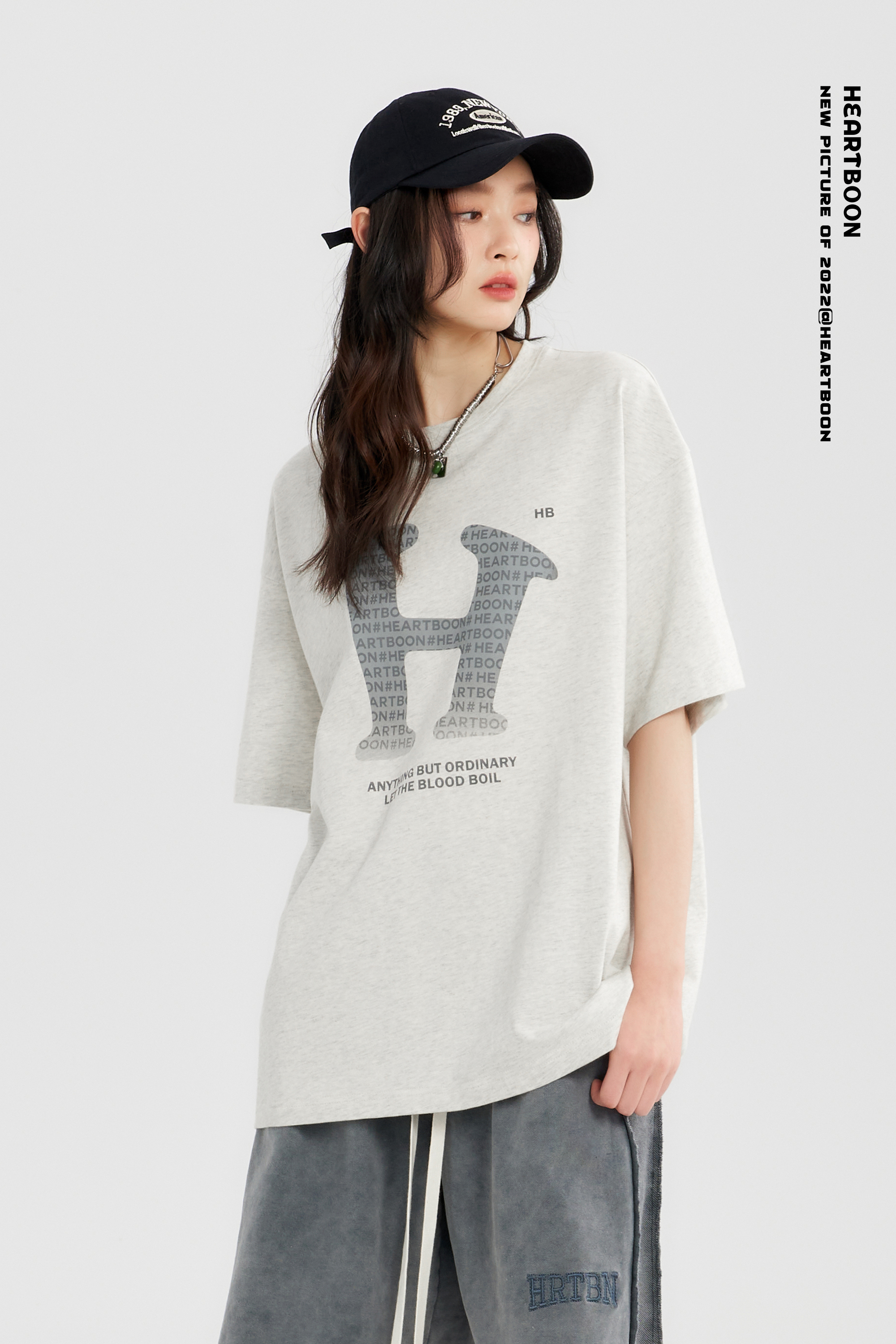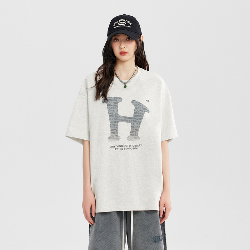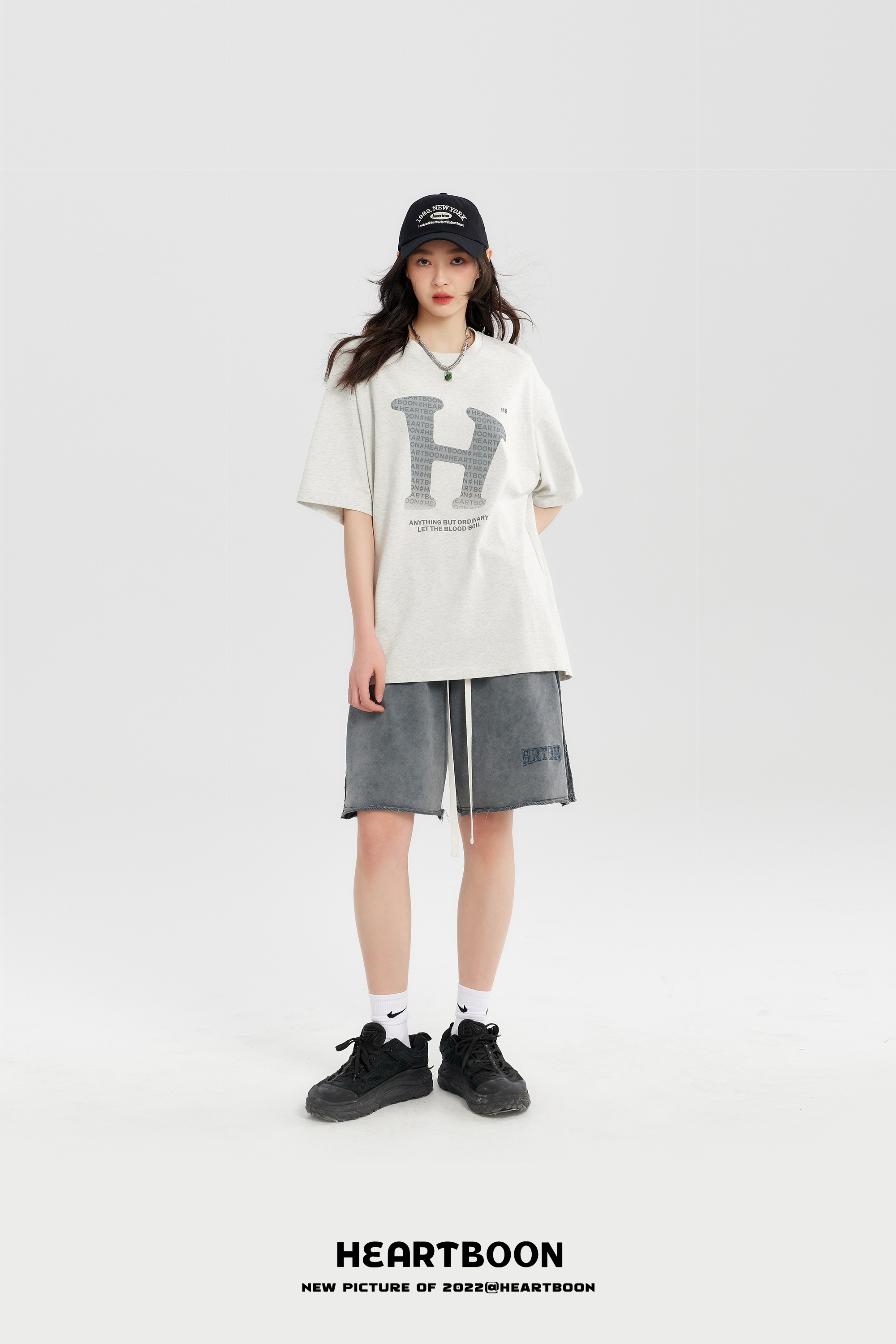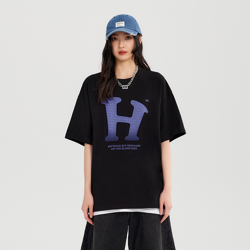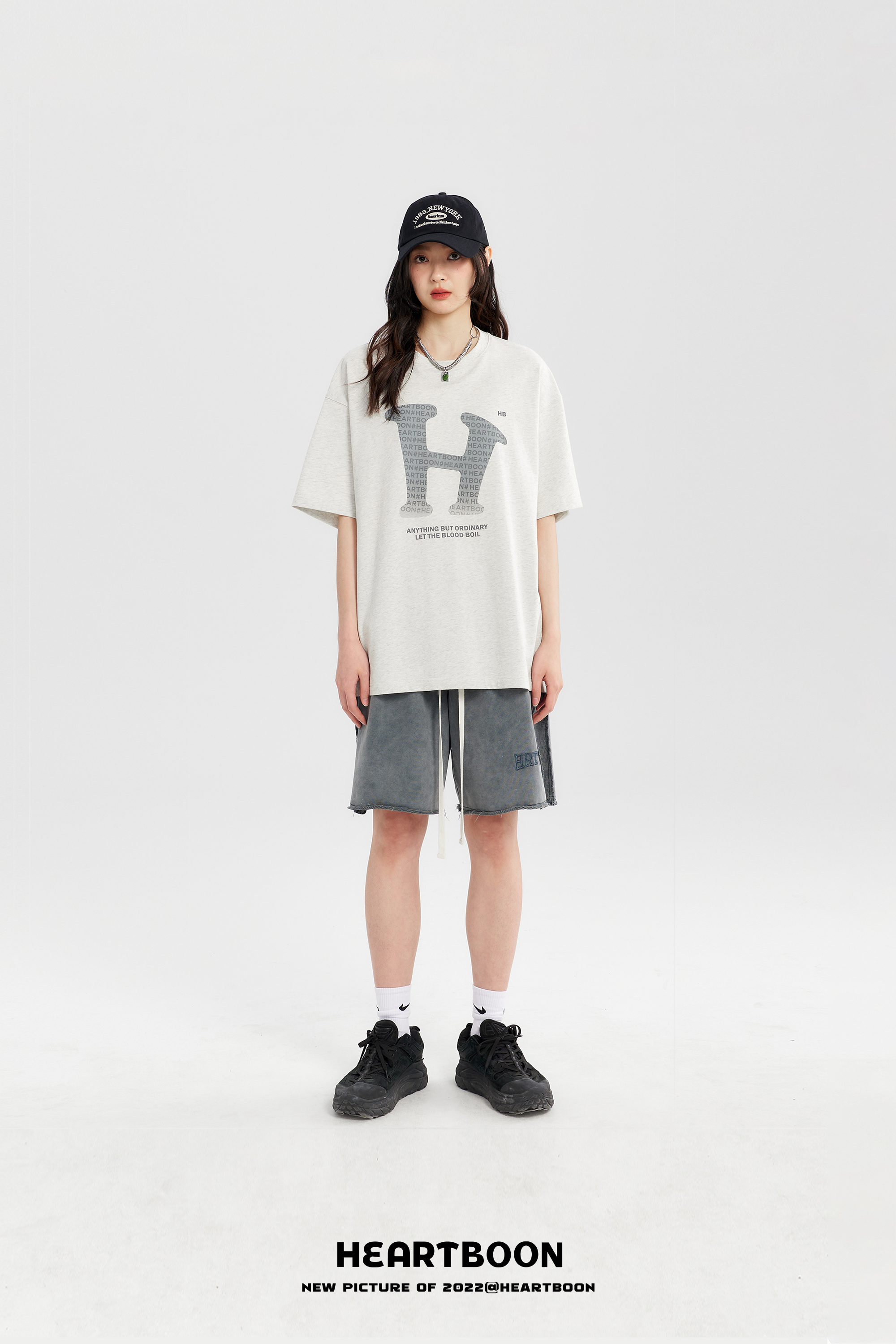 HeartBoon夏季潮流漸層色字母logo印花重磅黃色短袖休閒情侶T恤