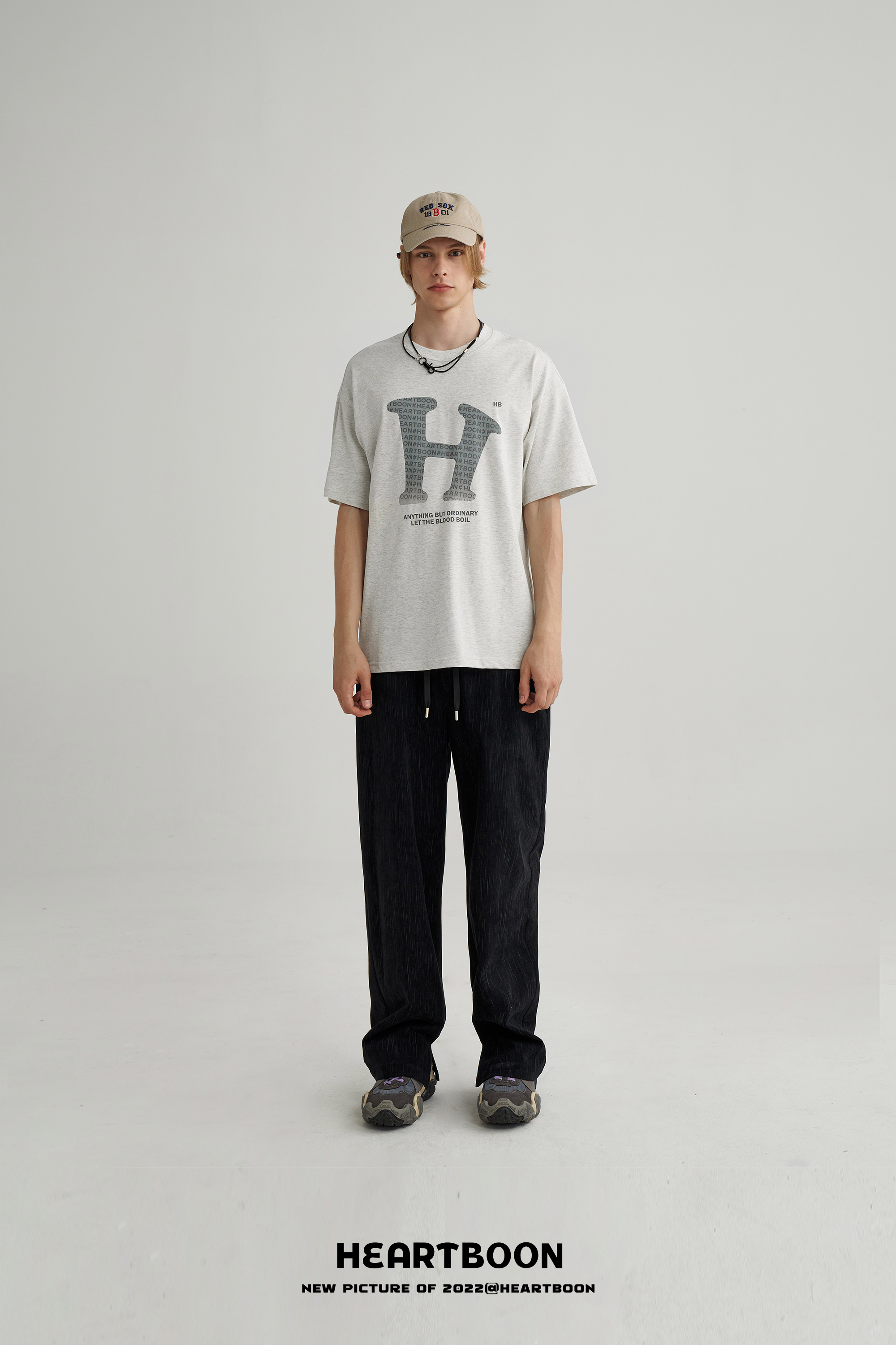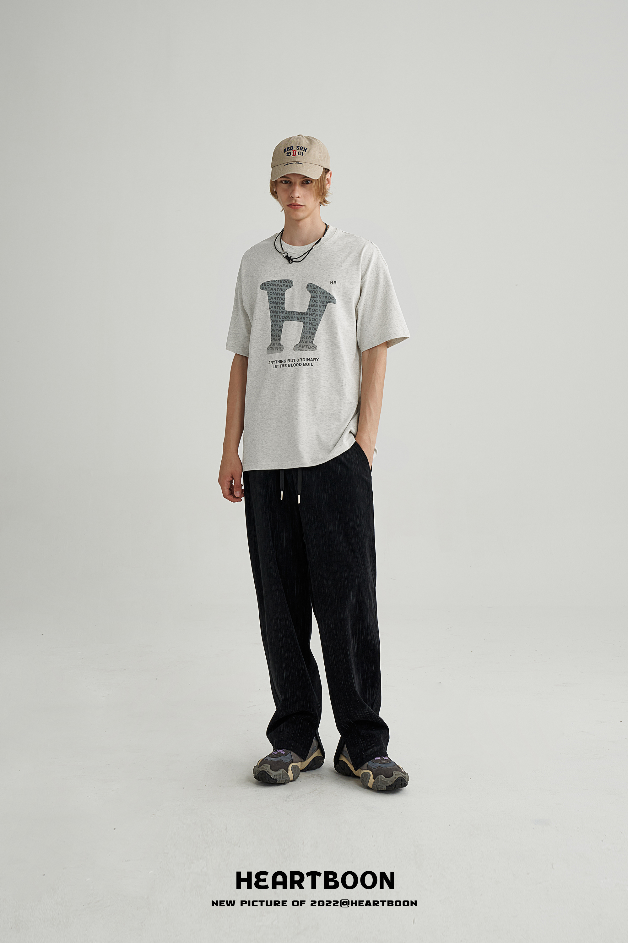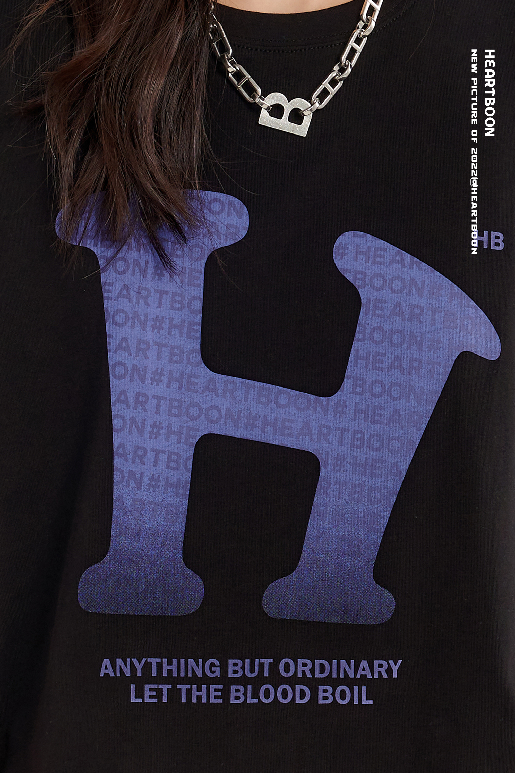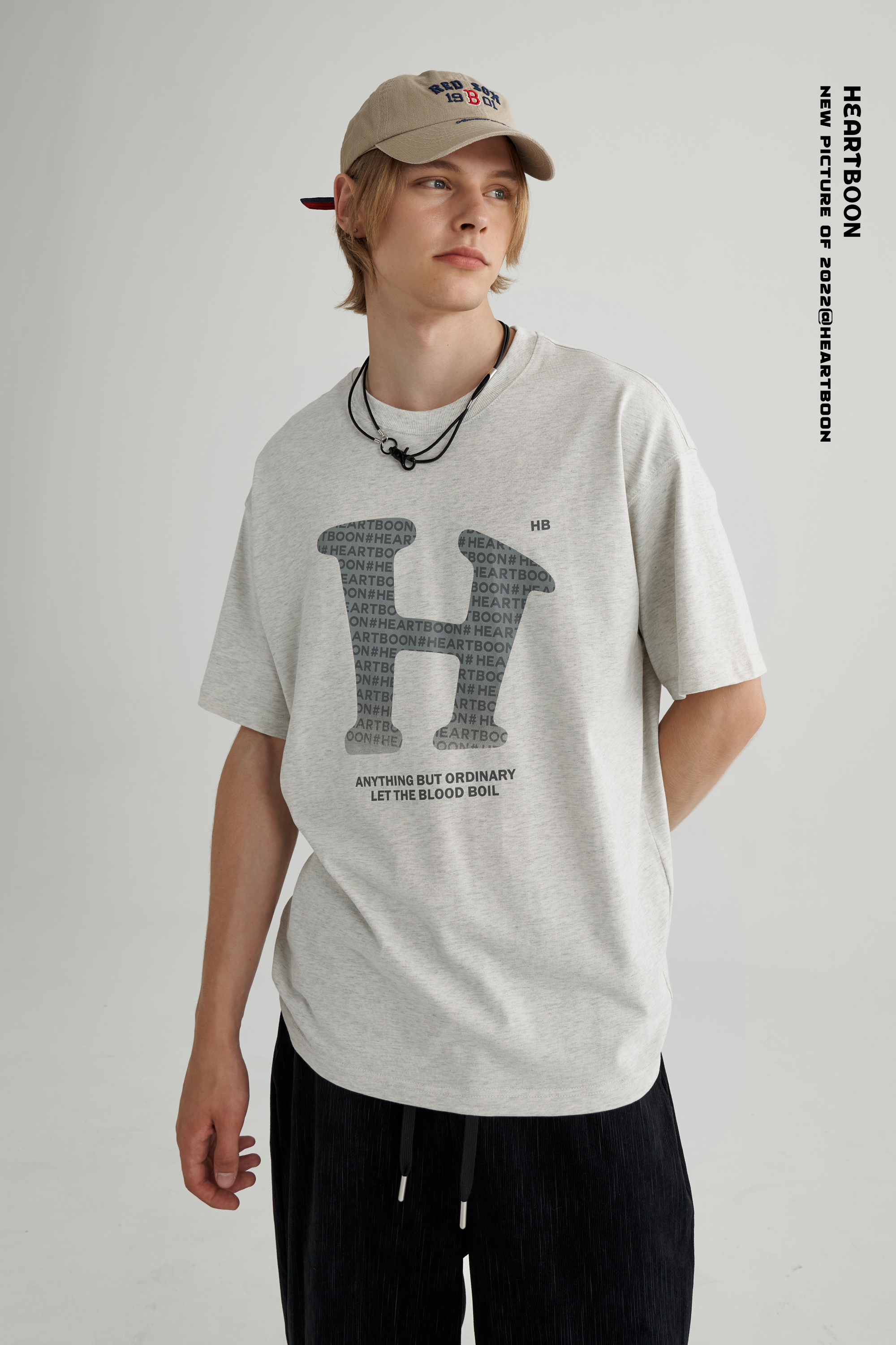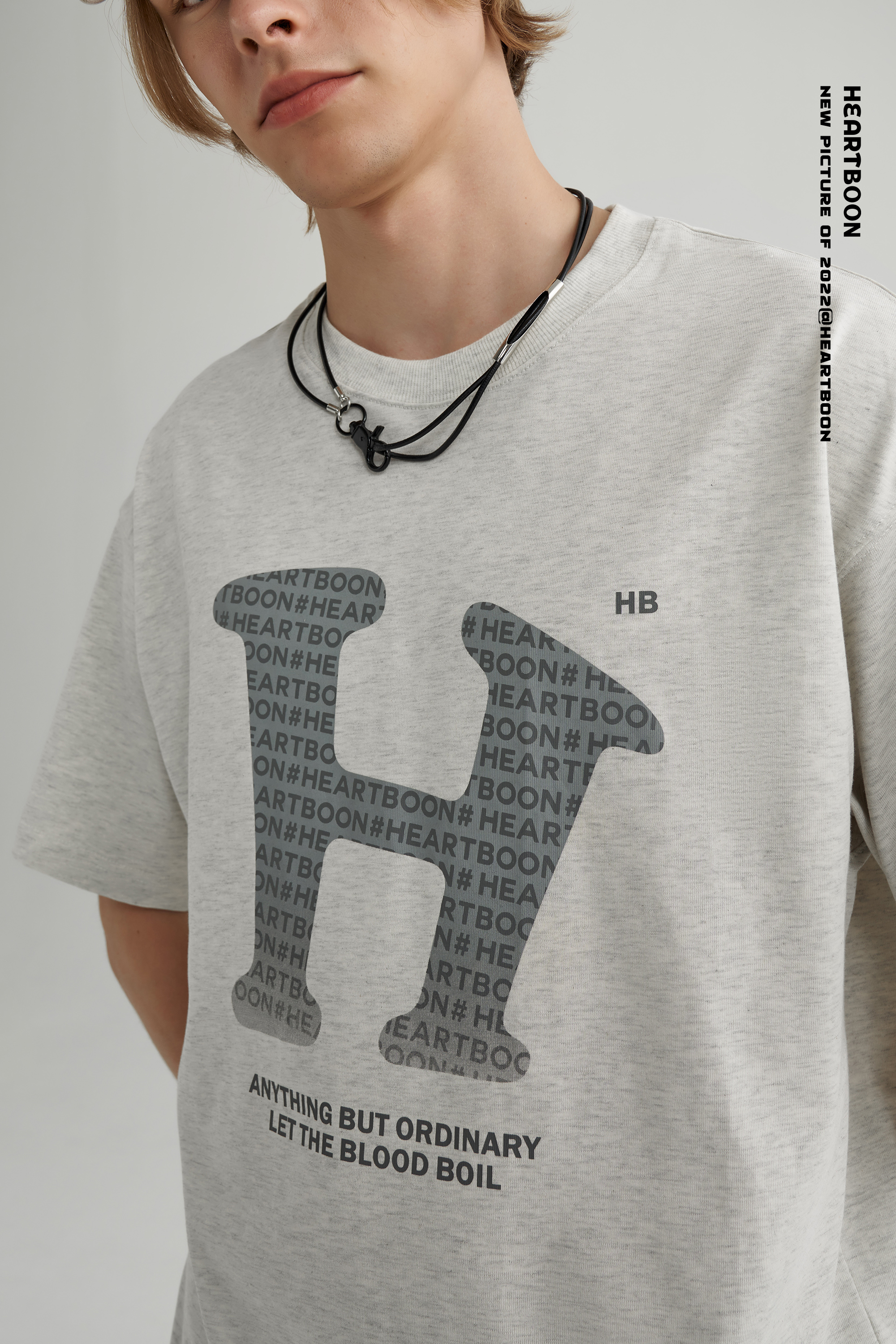 HeartBoon夏季潮流漸層色字母logo印花重磅黃色短袖休閒情侶T恤