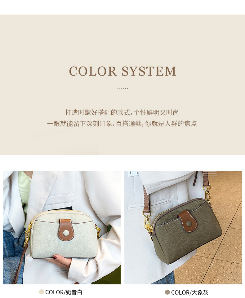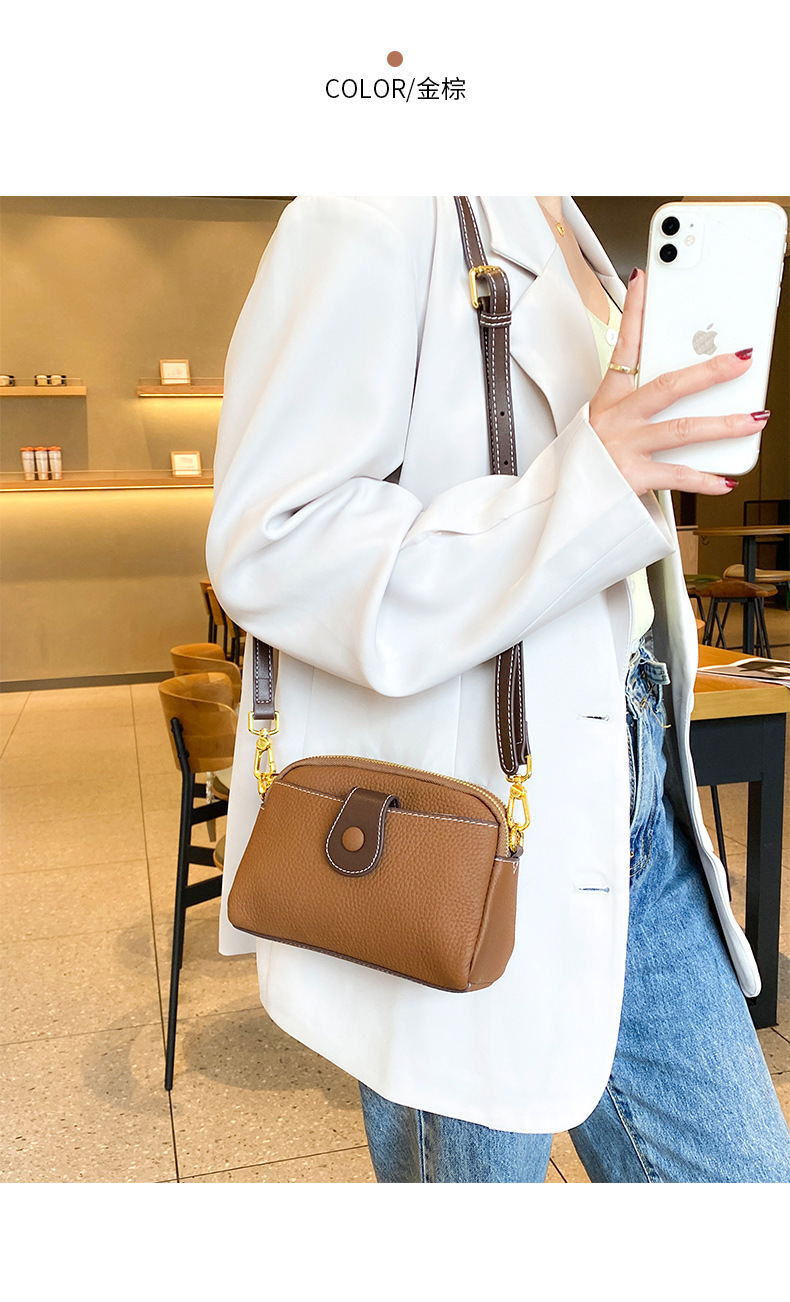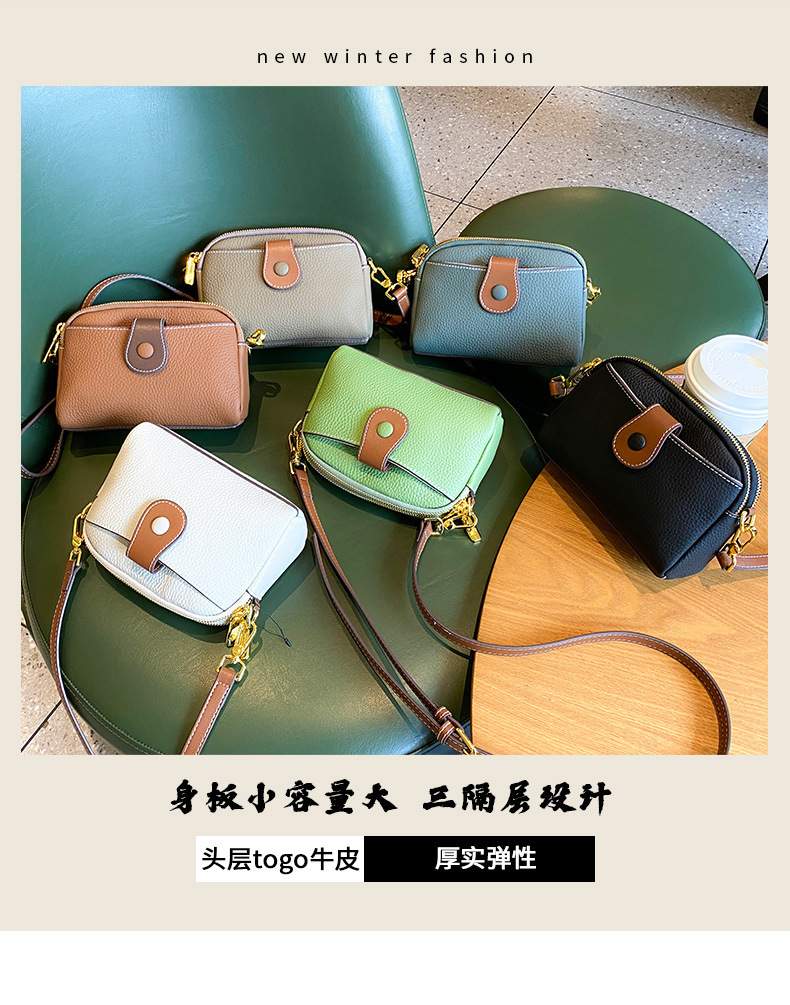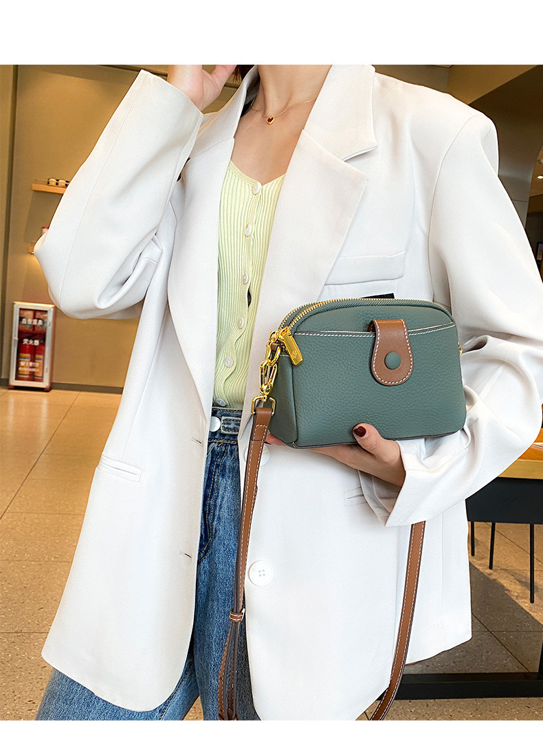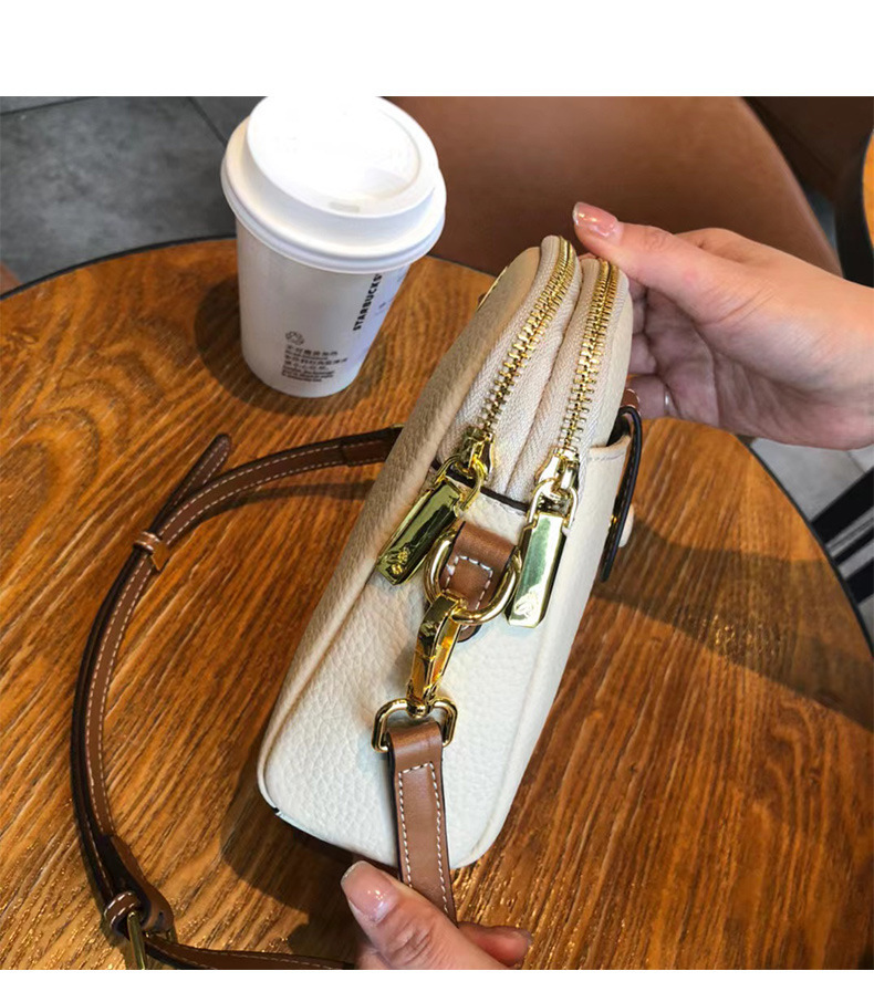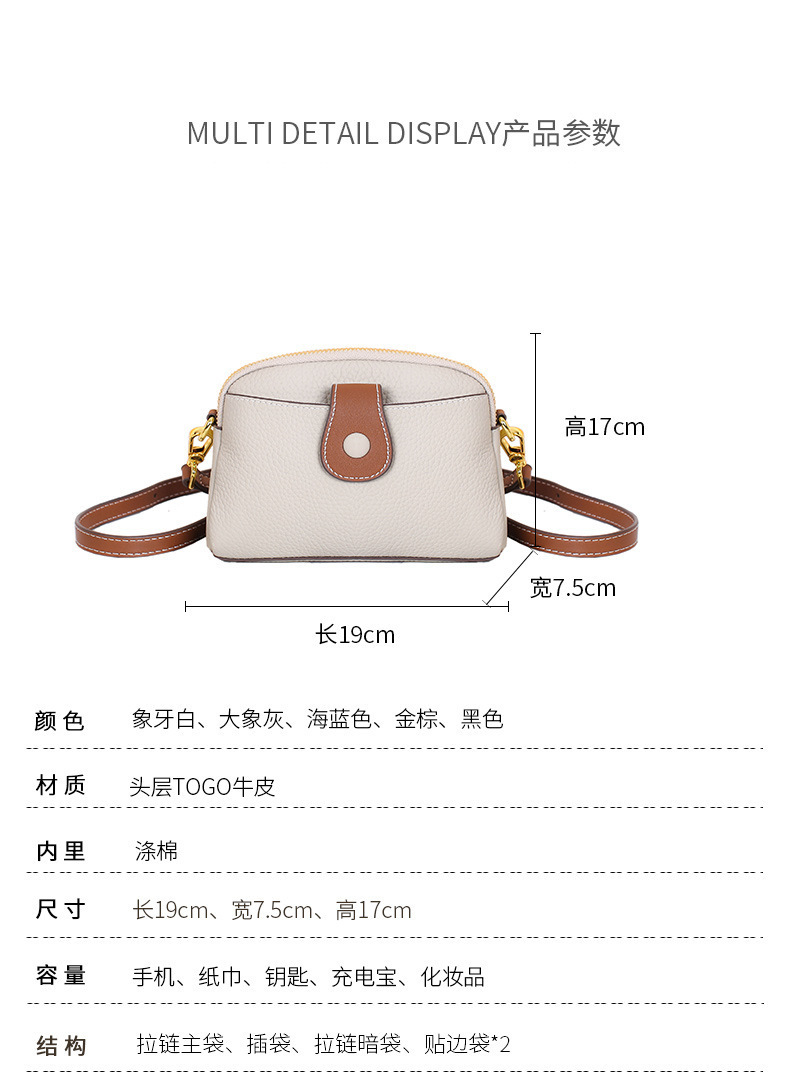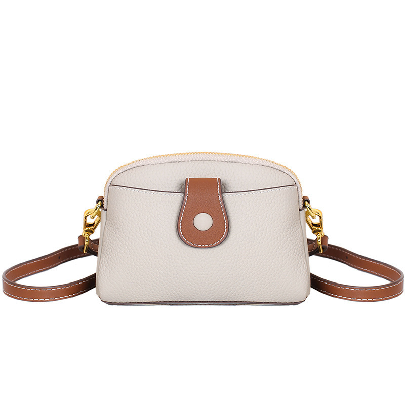 TOGO纹头层牛皮手机包 批发真皮单肩挎包女 双拉链简约休闲贝壳包