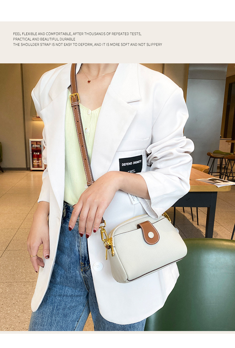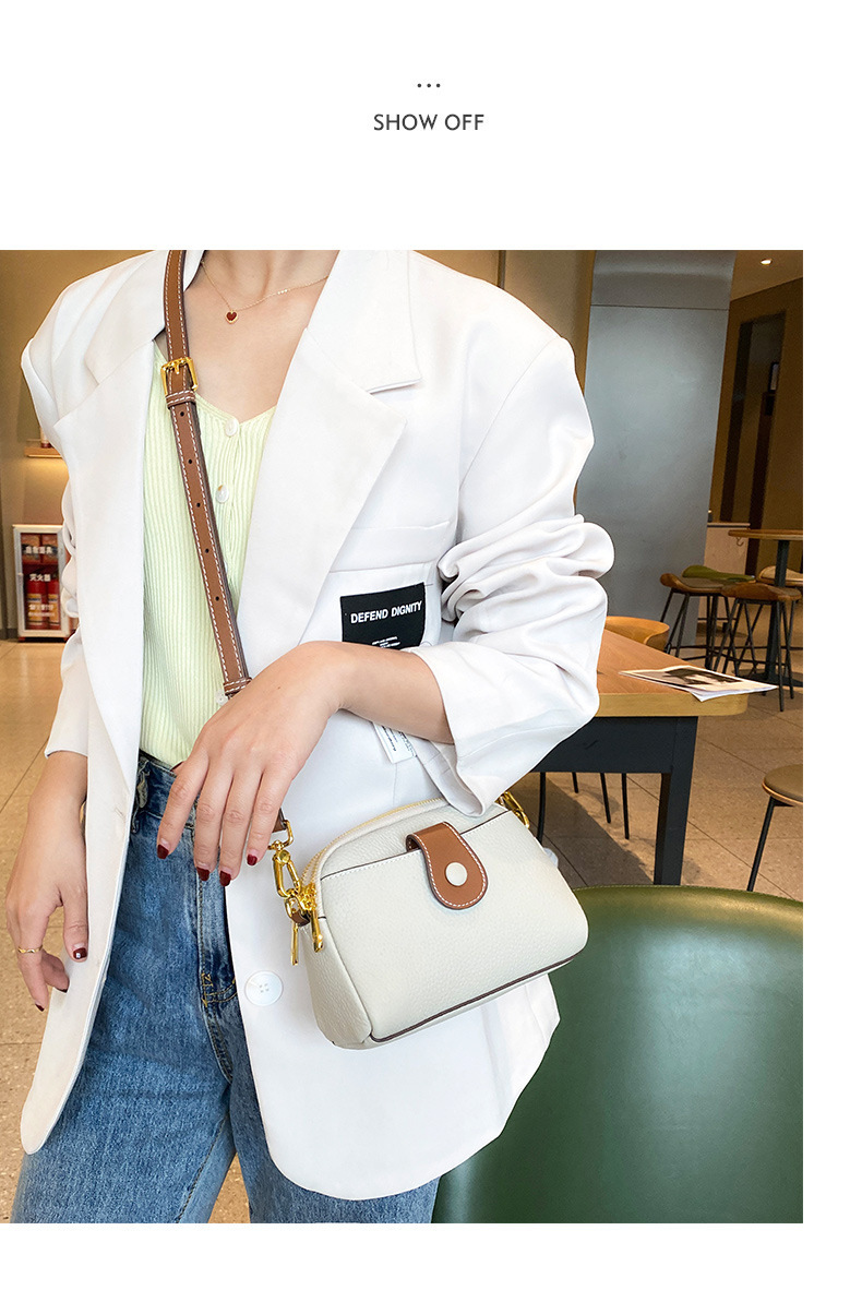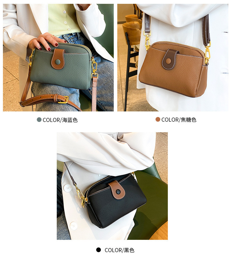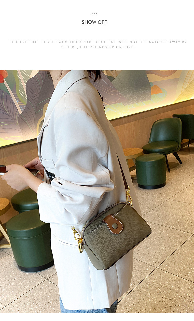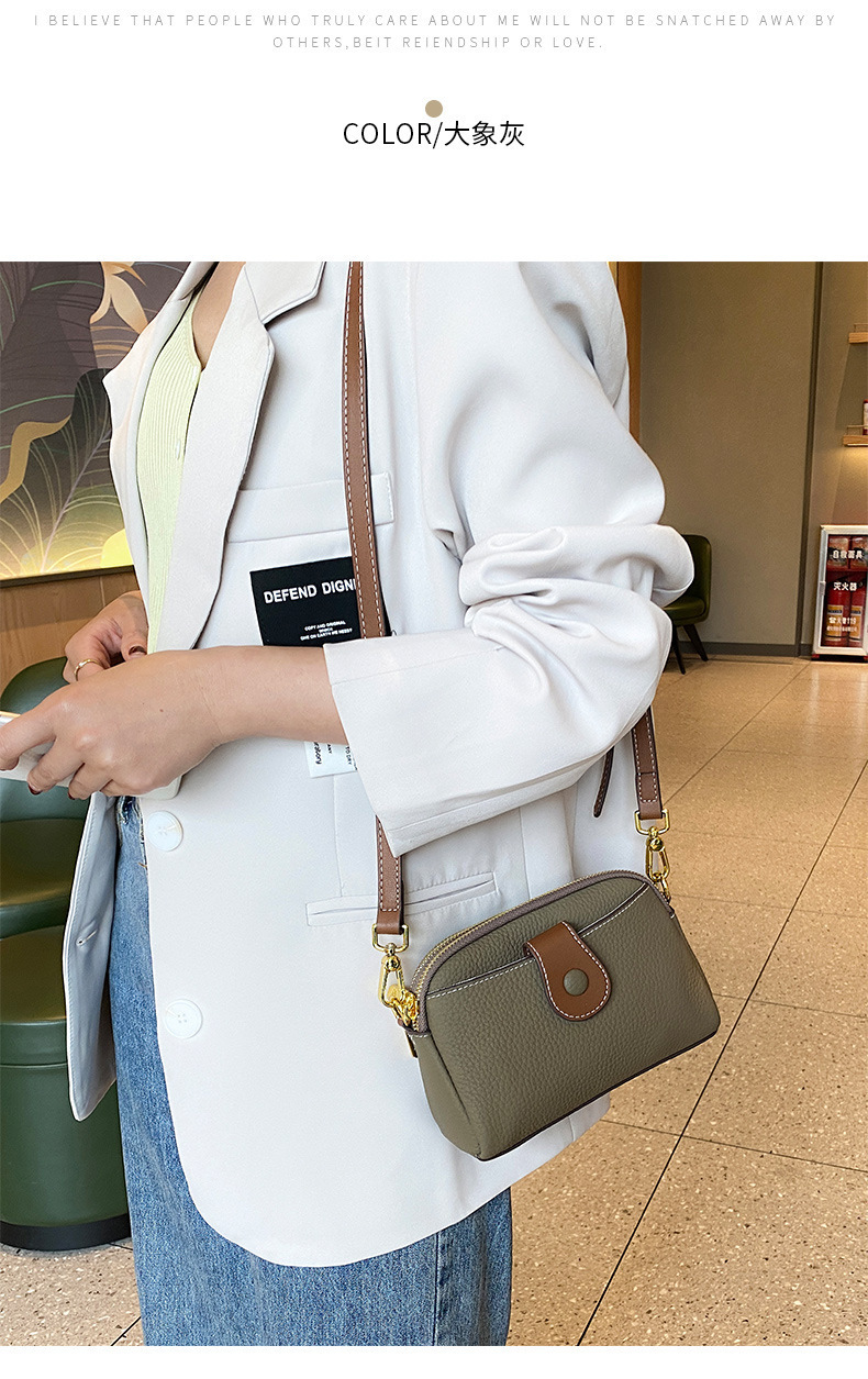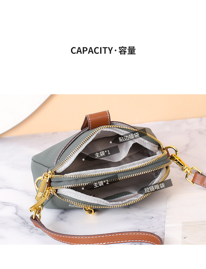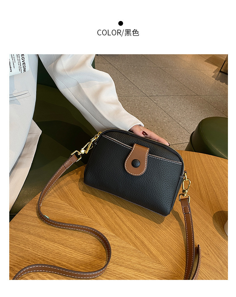 TOGO纹头层牛皮手机包 批发真皮单肩挎包女 双拉链简约休闲贝壳包