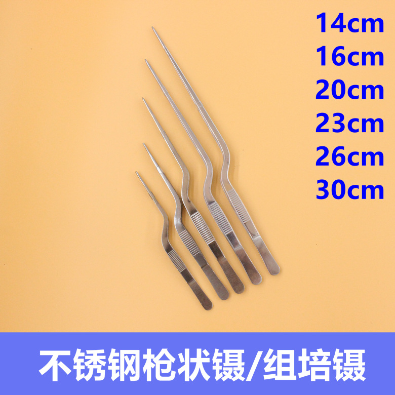不锈钢枪状镊子耳科14CM植物组培弯镊子20CM云夹采耳耵聍鼻喉