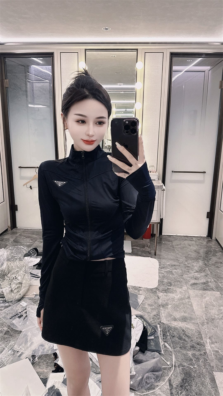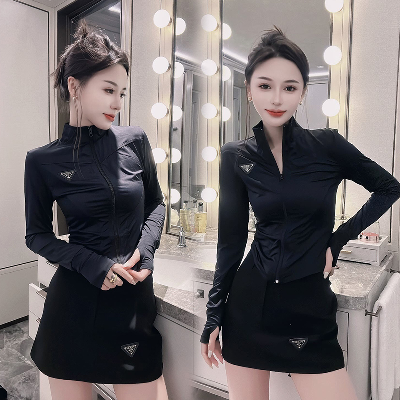 歐洲站2023夏季冰絲防曬瑜伽服女休閒運動修身氣質三角標拉鍊外套