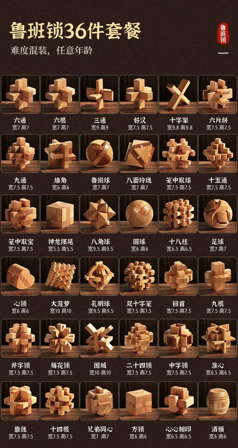 孔明锁鲁班锁全套开发智力解环套装儿童玩具男6-12岁生日礼物