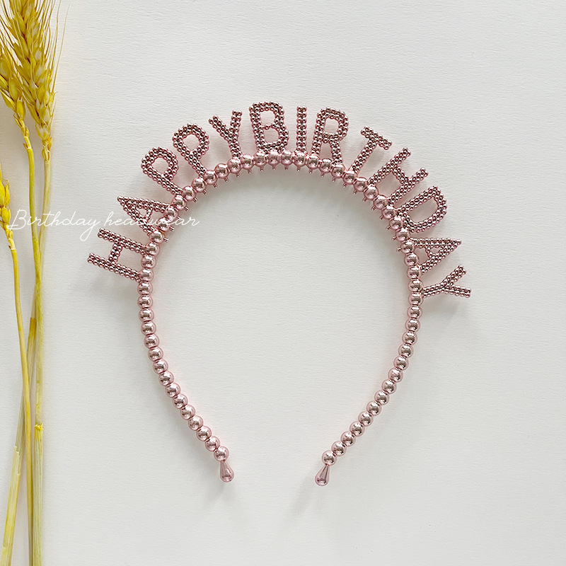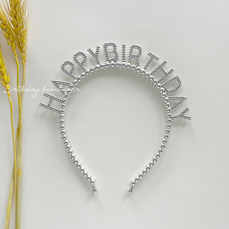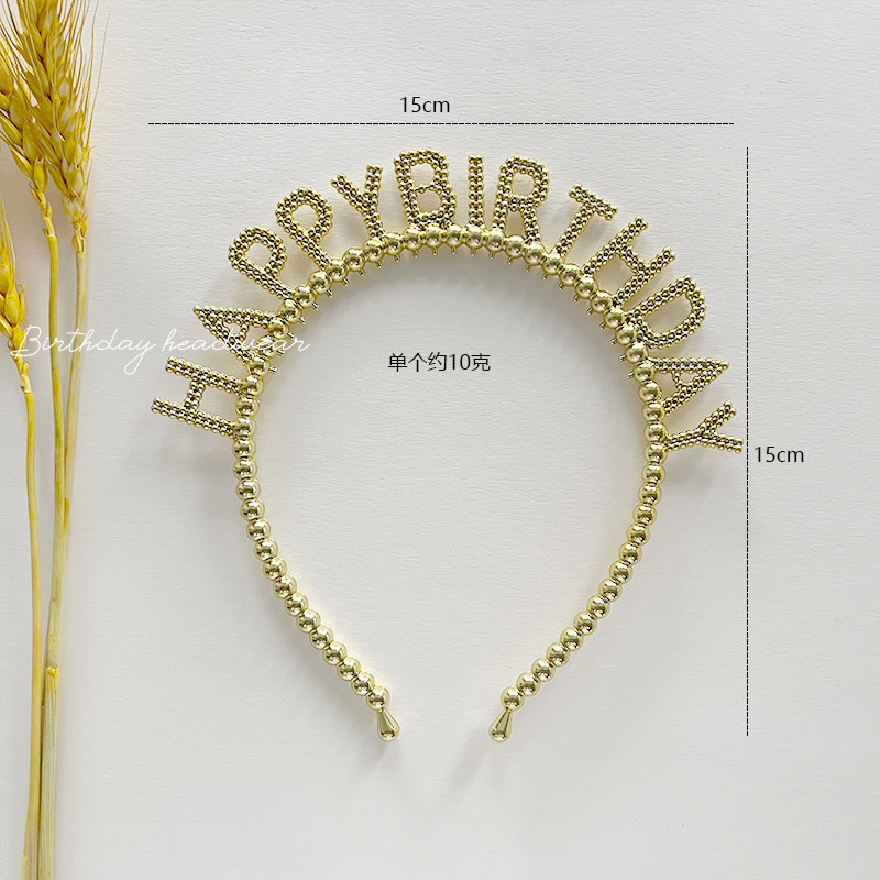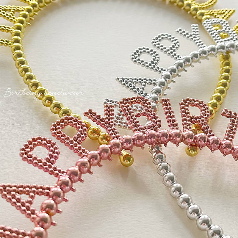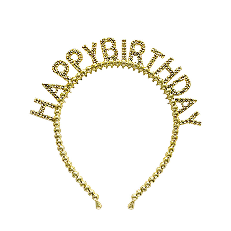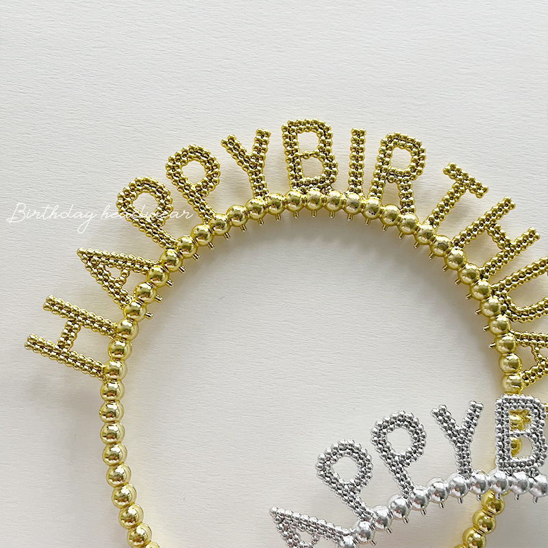 新款生日快乐字母珠珠金银塑料发箍儿童生日派对头饰发卡装扮用品