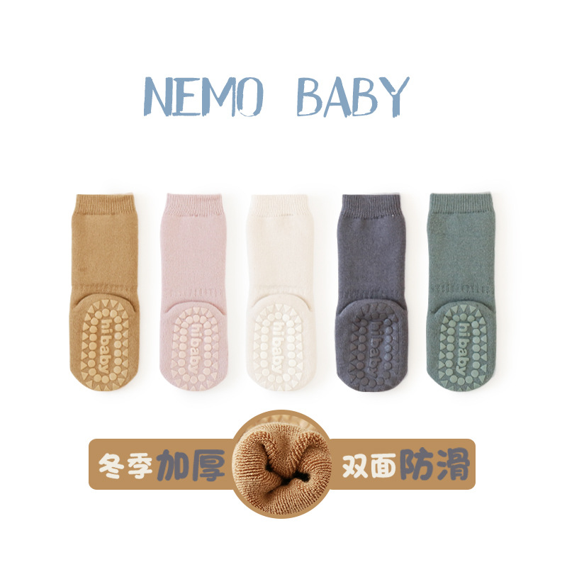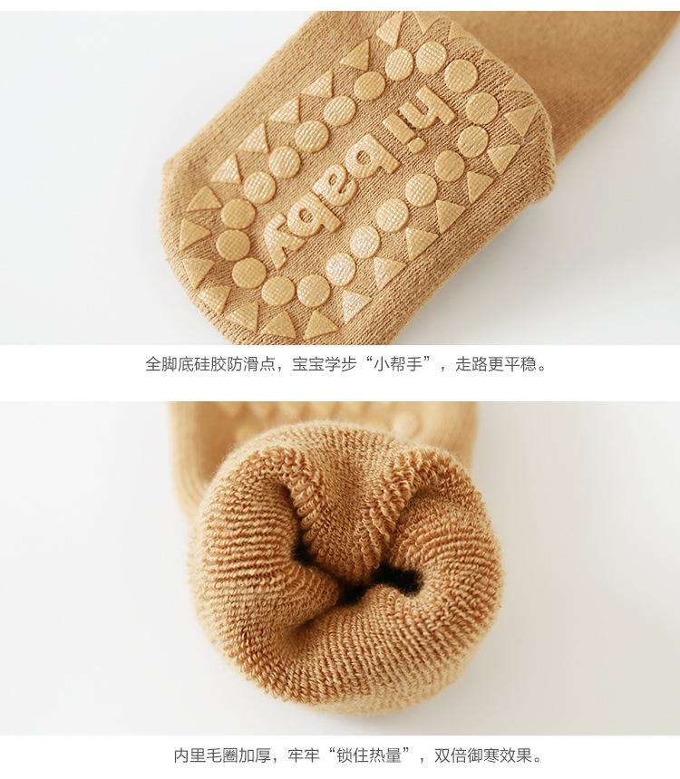 21年新款秋冬毛圈加厚宝宝袜子中筒防滑新生婴儿袜儿童学步地板袜