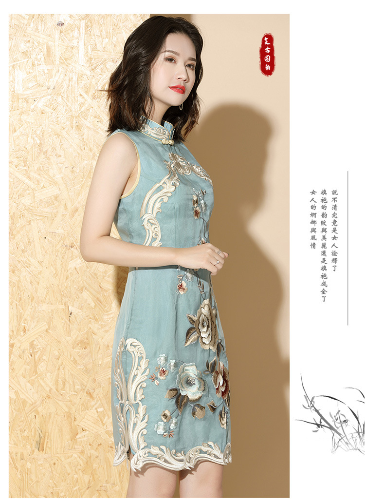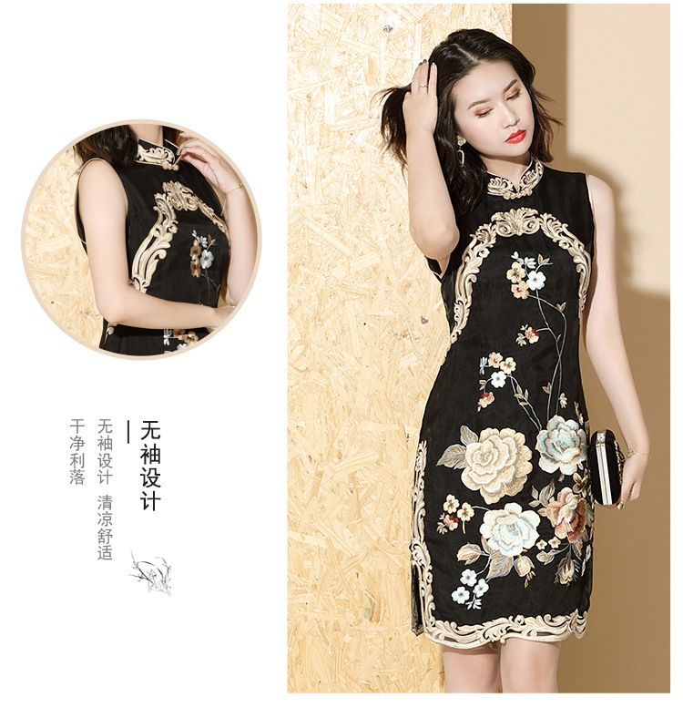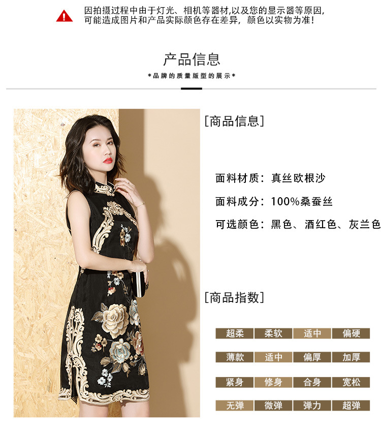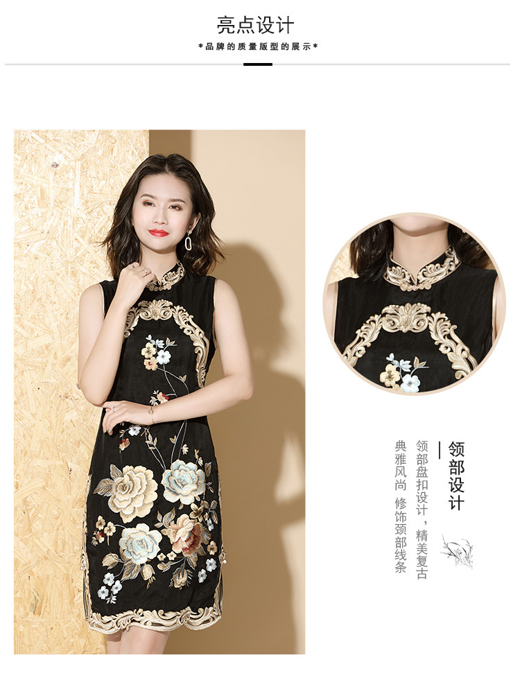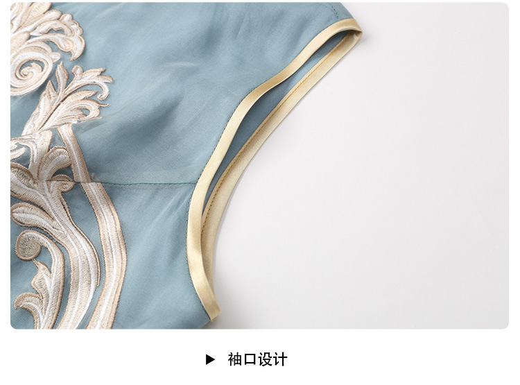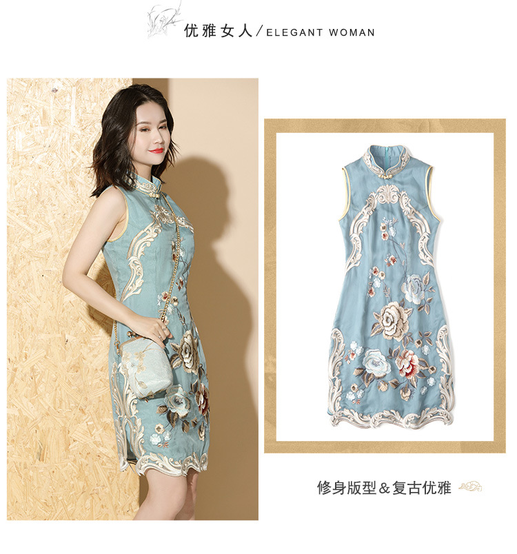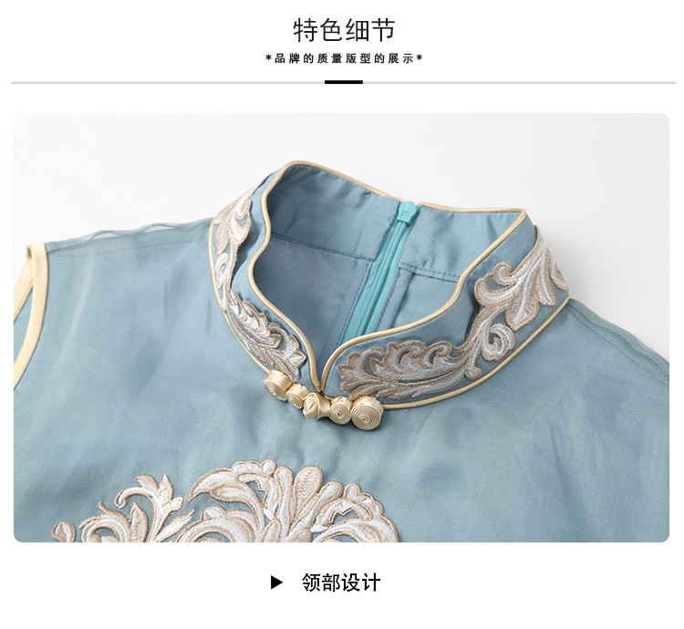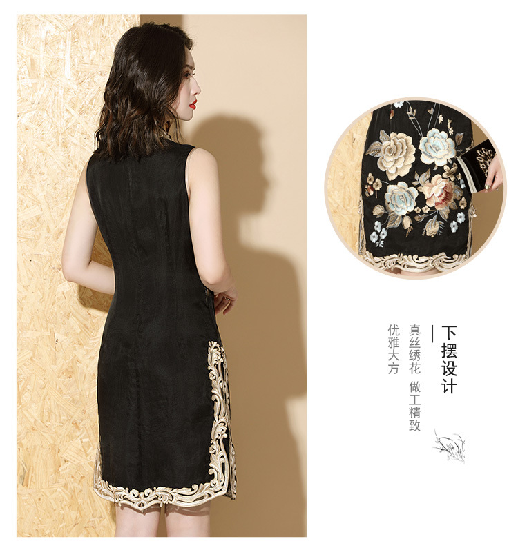 真丝欧根纱绣花旗袍裙改良无袖时尚修身连衣裙夏季新国风女装